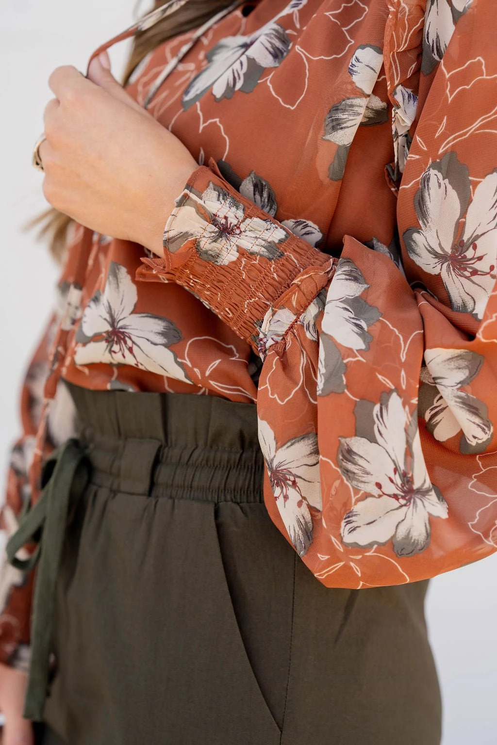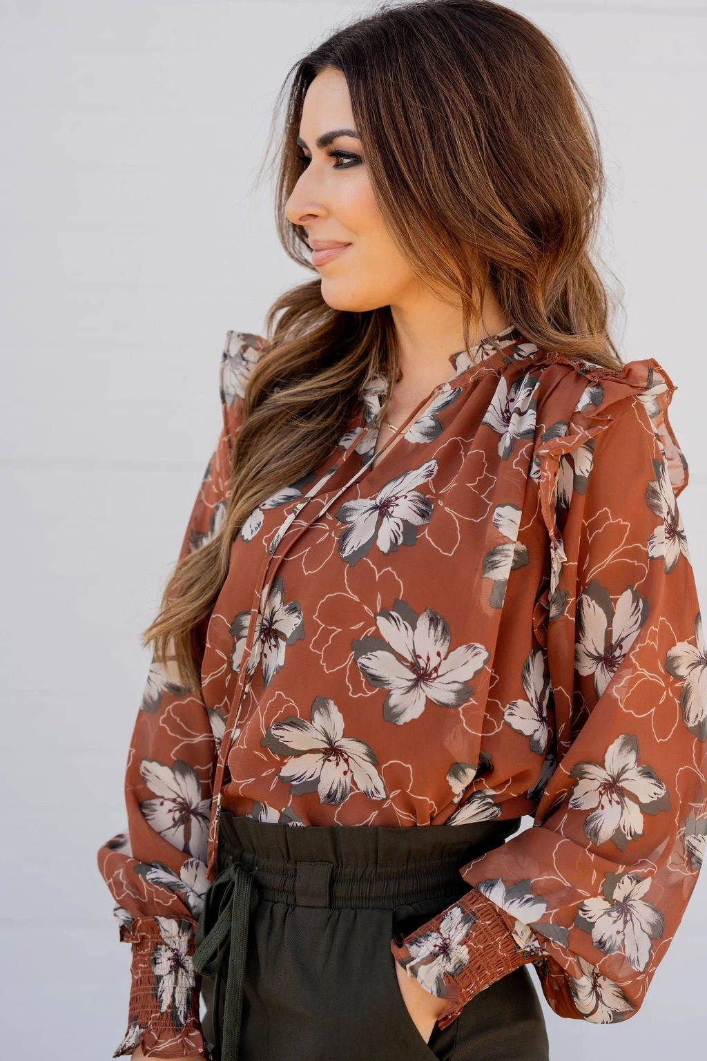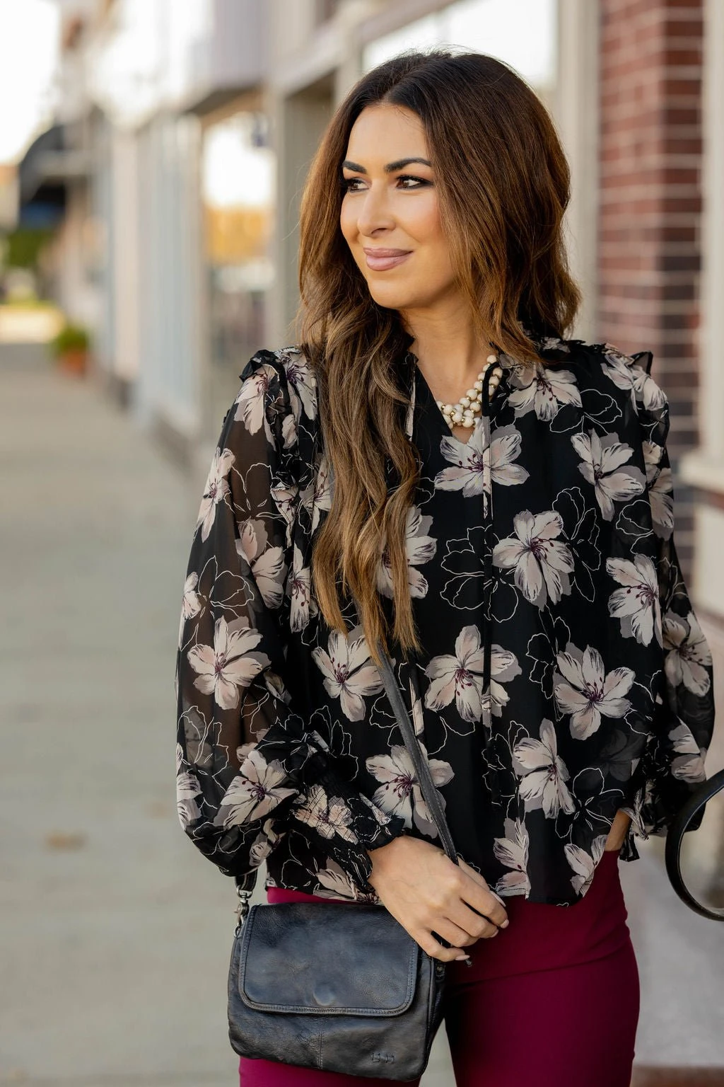 This floral blouse is unlike anything else in your wardrobe! The lightweight and breathable material makes this ideal for any season! Pair with your favorite denim, a bold colored pair of our Betsey’s Jeggings, or even just some leggings for a unique look!