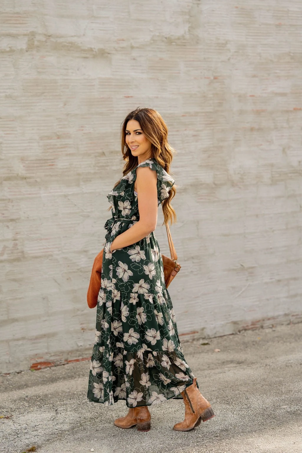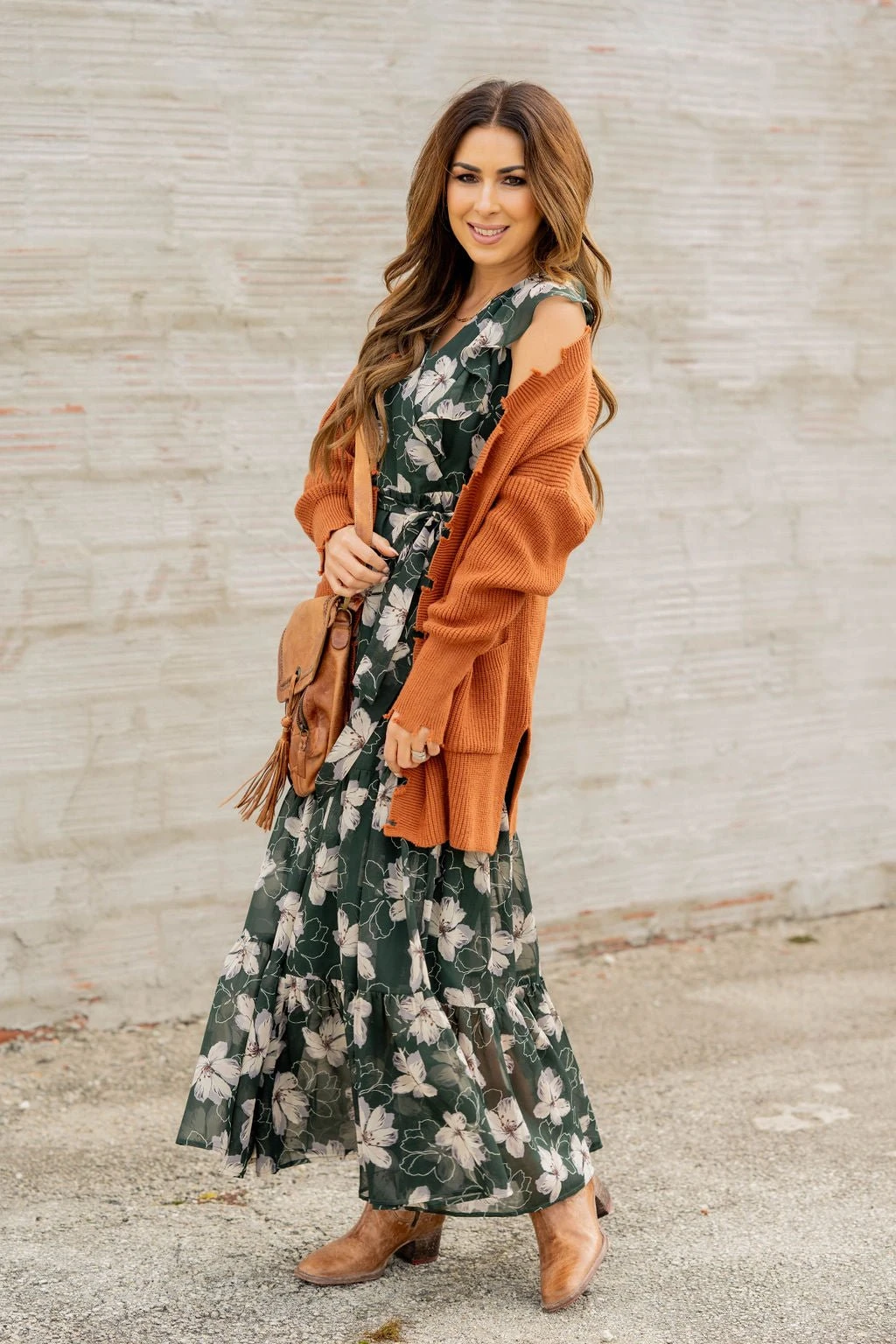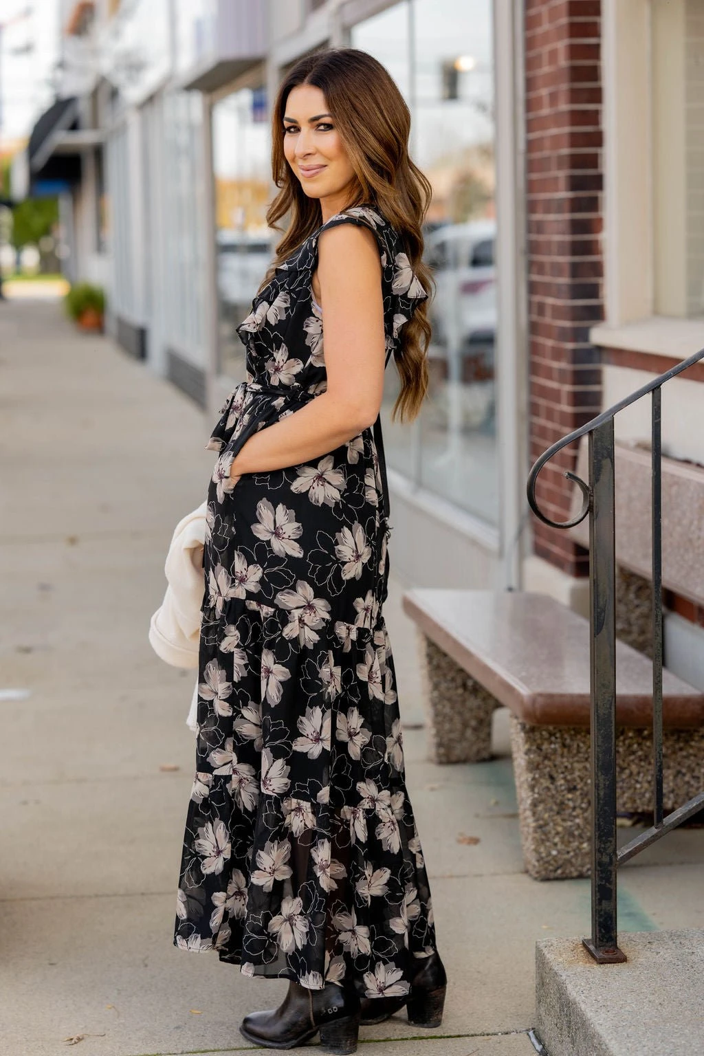 Maxi dresses are super comfy and trendy and perfect for any occasion! We’re loving the floral print, ruffle accents, and the slimming tie waist, setting it apart from the rest! Wear alone with a fun pair of earrings or a statement necklace for the warmer months, or pair with a denim jacket or cardigan for the cooler ones!Â