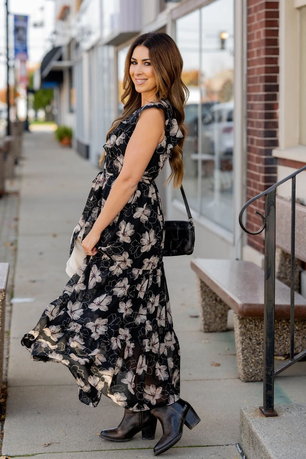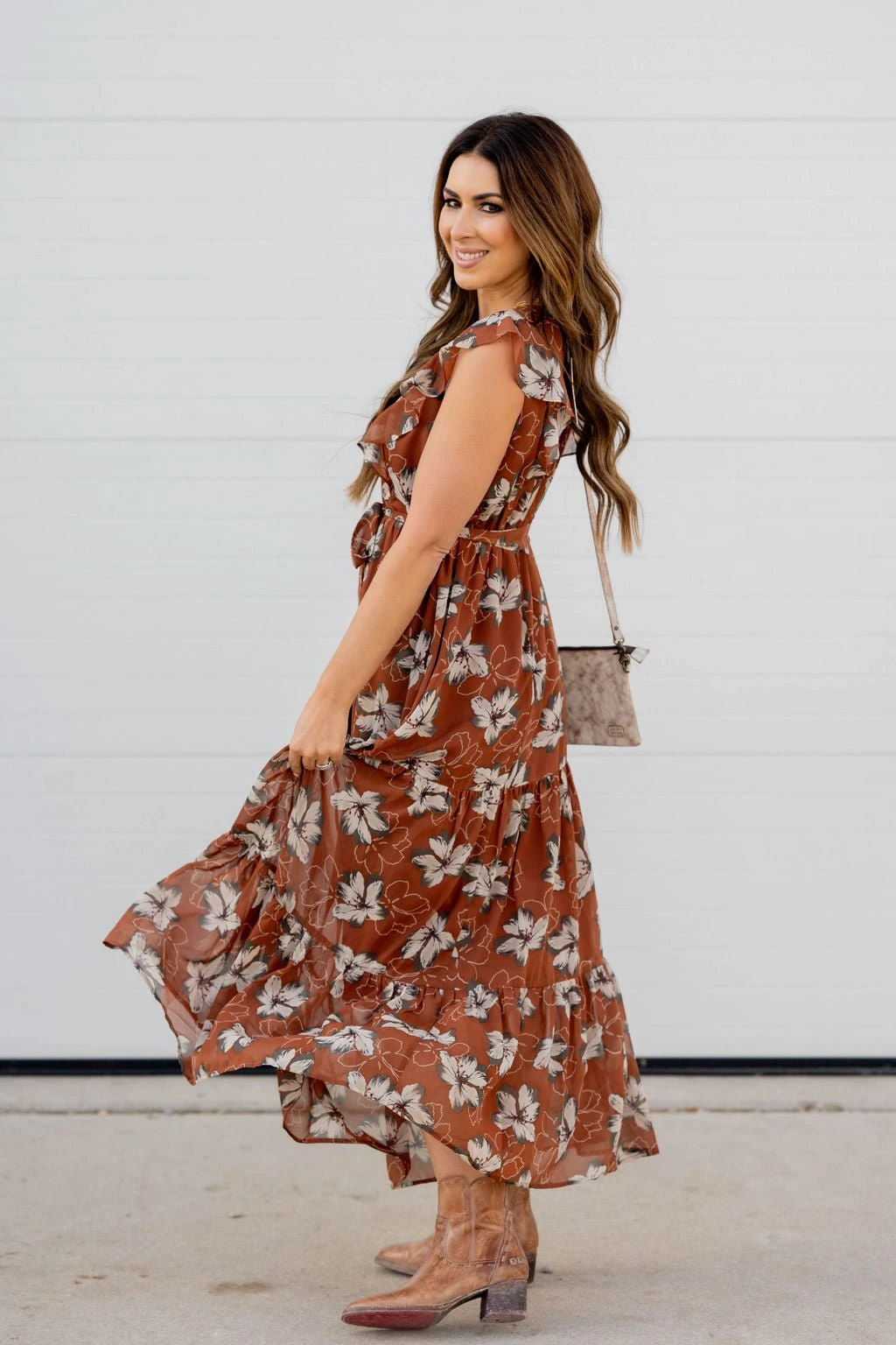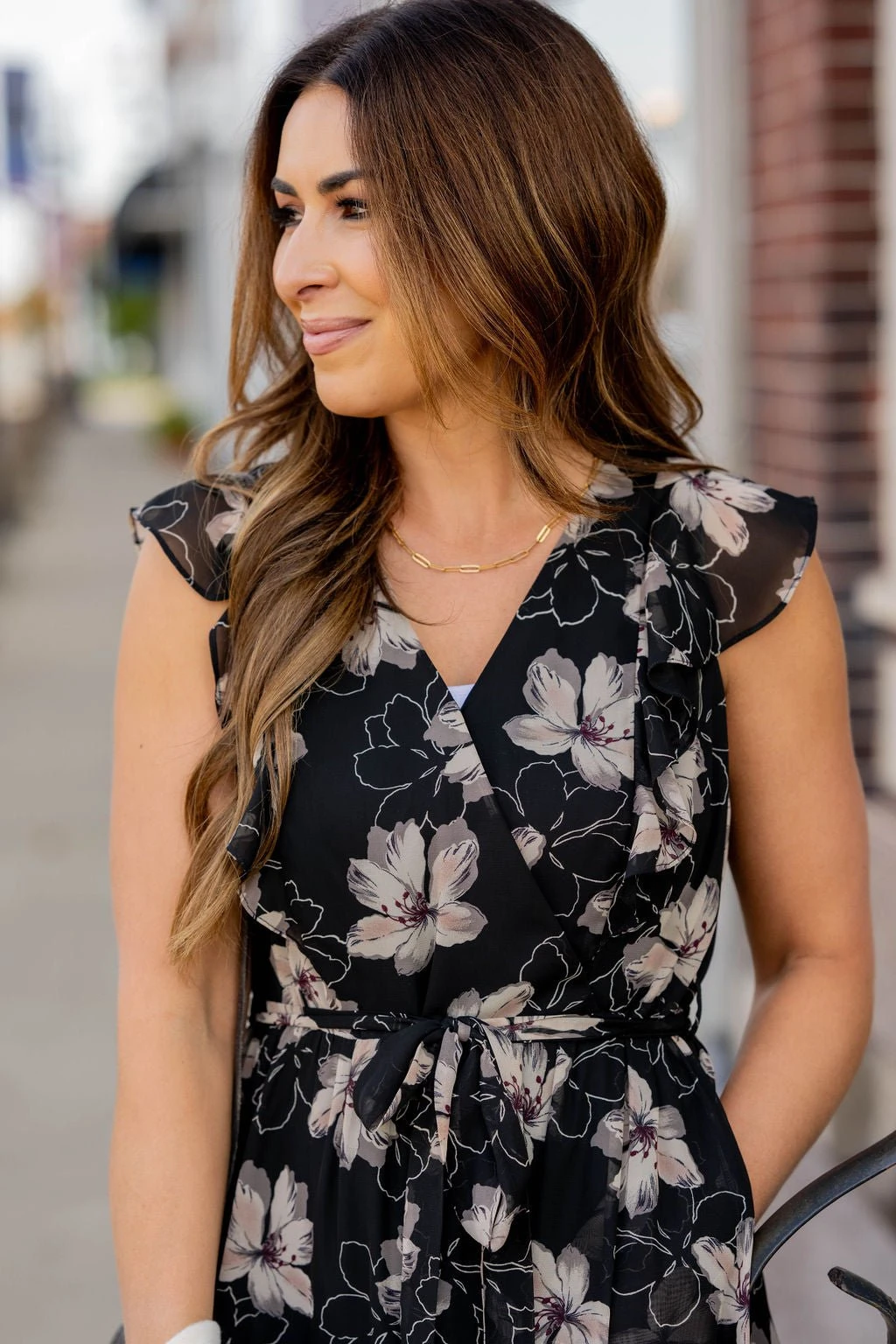 Maxi dresses are super comfy and trendy and perfect for any occasion! We’re loving the floral print, ruffle accents, and the slimming tie waist, setting it apart from the rest! Wear alone with a fun pair of earrings or a statement necklace for the warmer months, or pair with a denim jacket or cardigan for the cooler ones!Â
