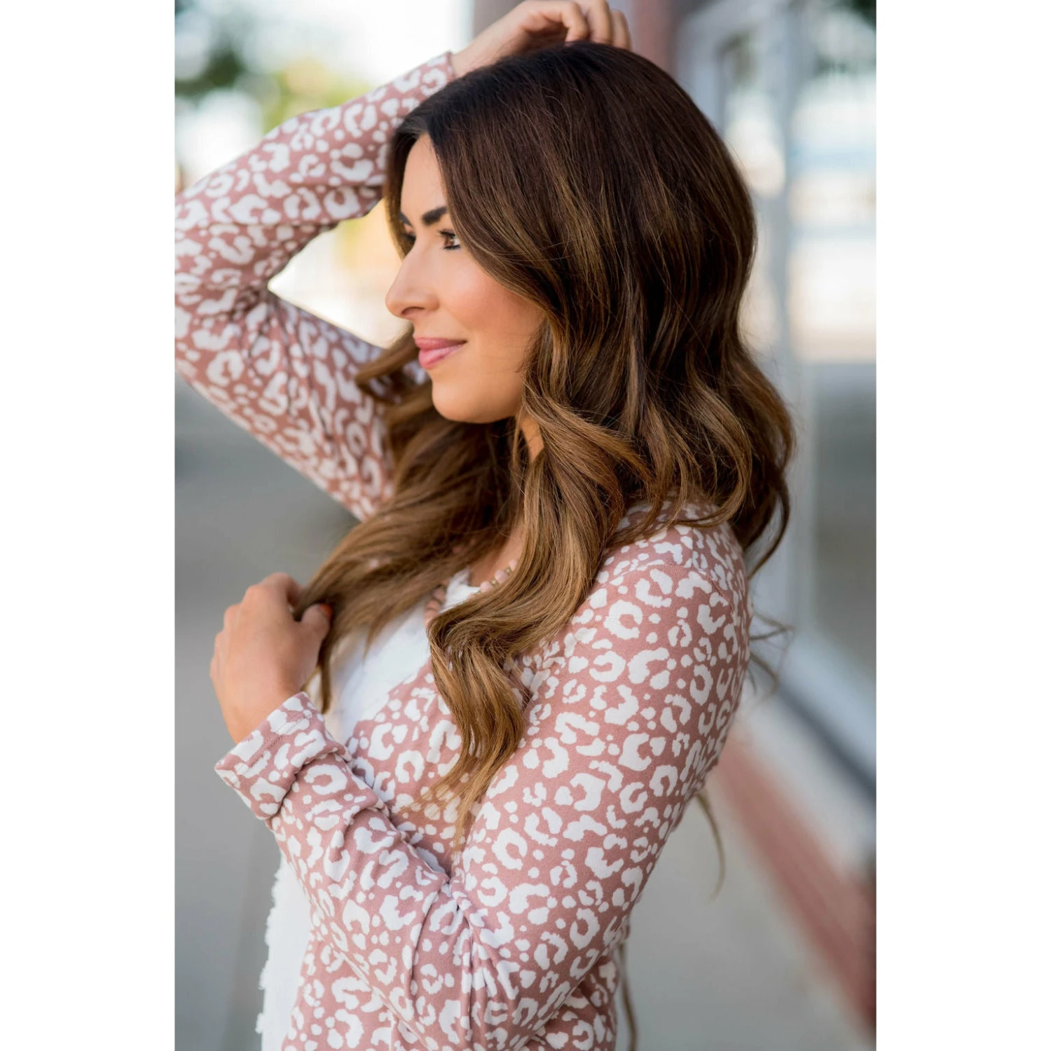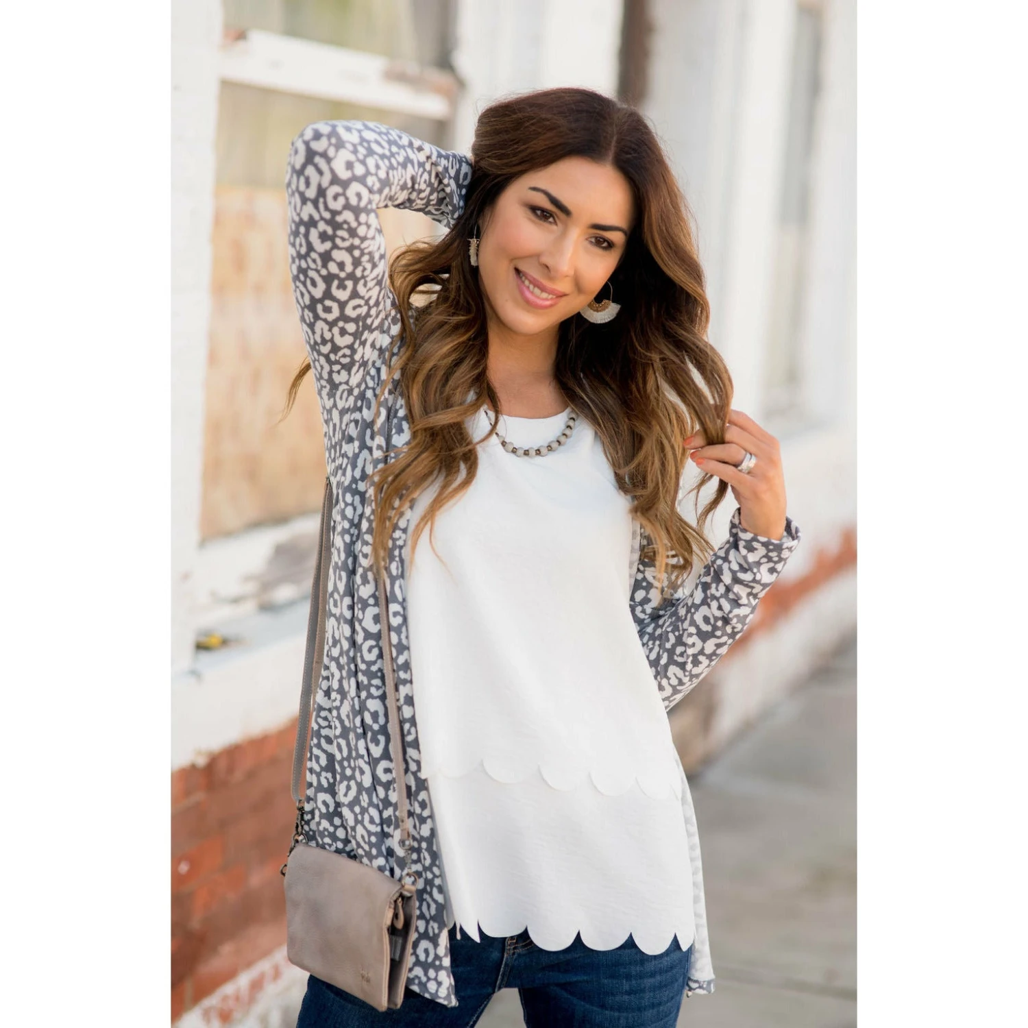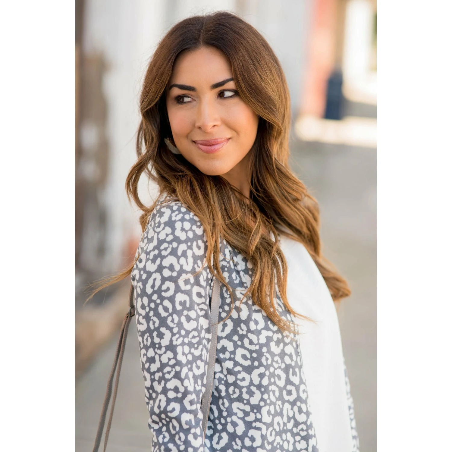 This short lightweight leopard cardigan is one you will! In grey and mocha, you will want both colors to be sure you always have something that matches with them! Wear it over a dress or jeggings and a blouse!