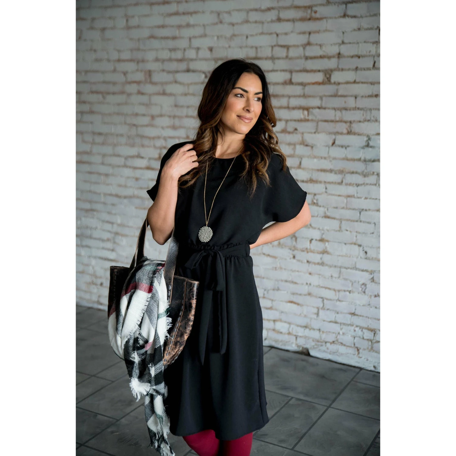 A dress that is perfect for all seasons!! Wear this piece by itself or add some leggings and a jacket or cardigan for warmth!!Â