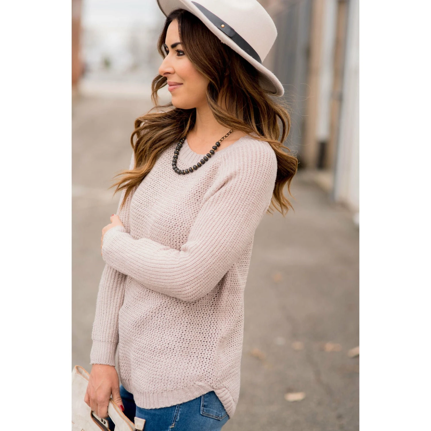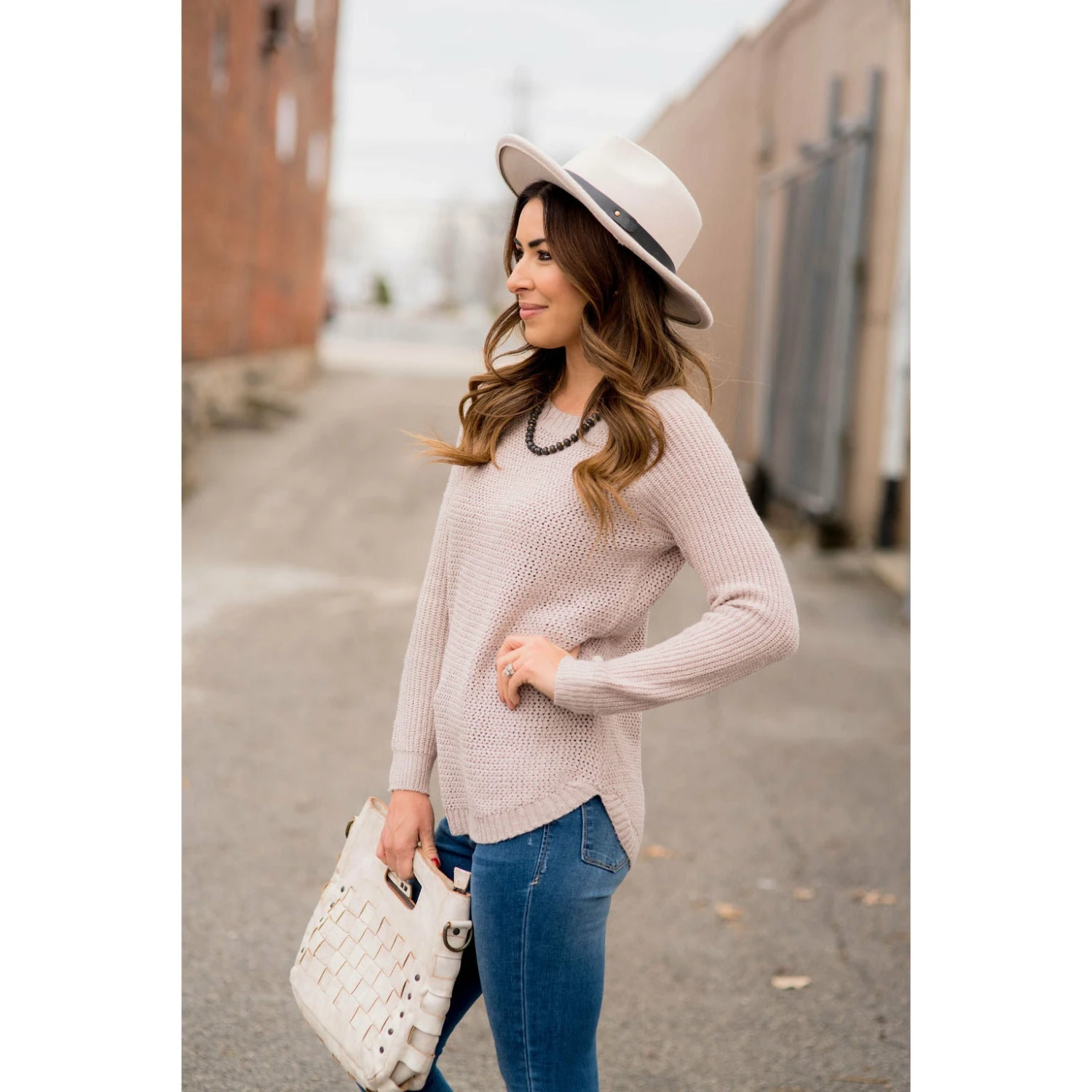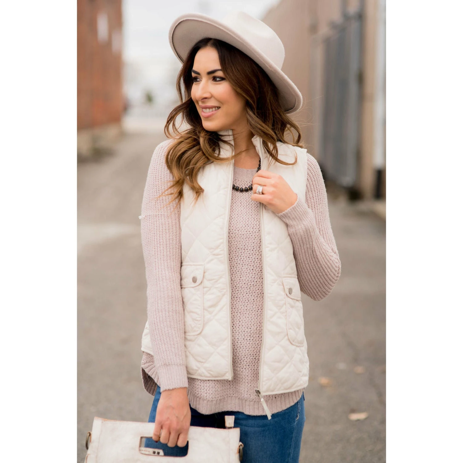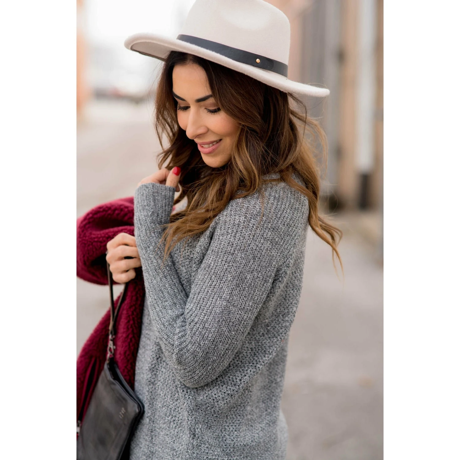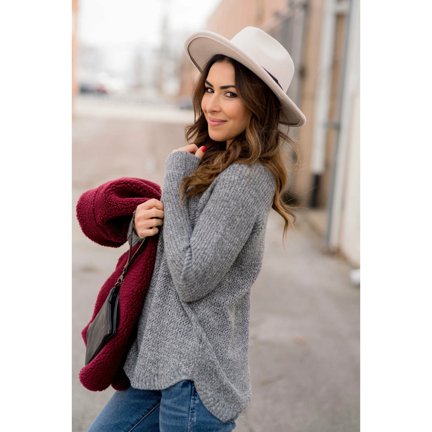 There is no such thing as having too many sweaters. This sweater is perfect for layering. We love the color and small side slit. Pair with our Matte Puffer Vest for a chic look.