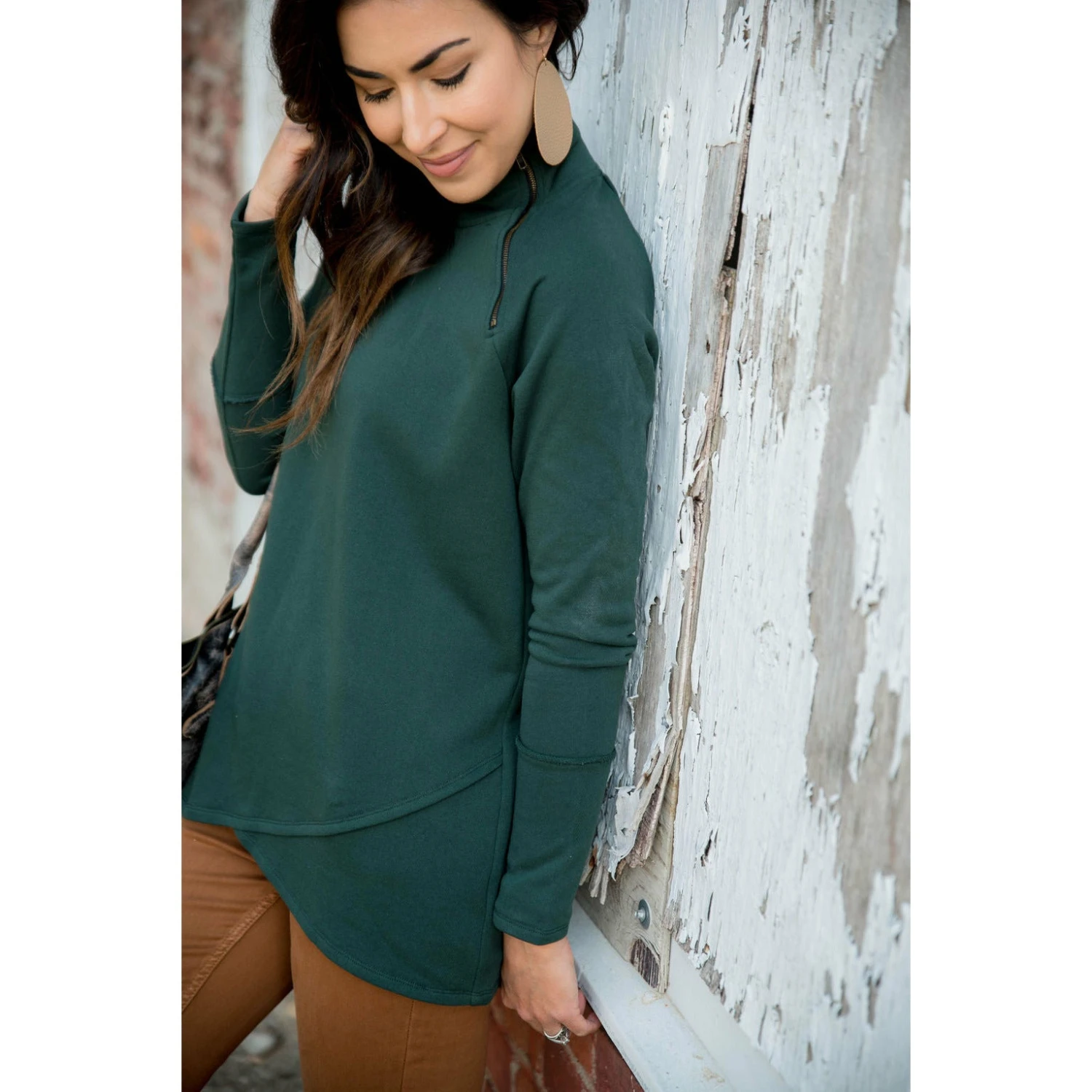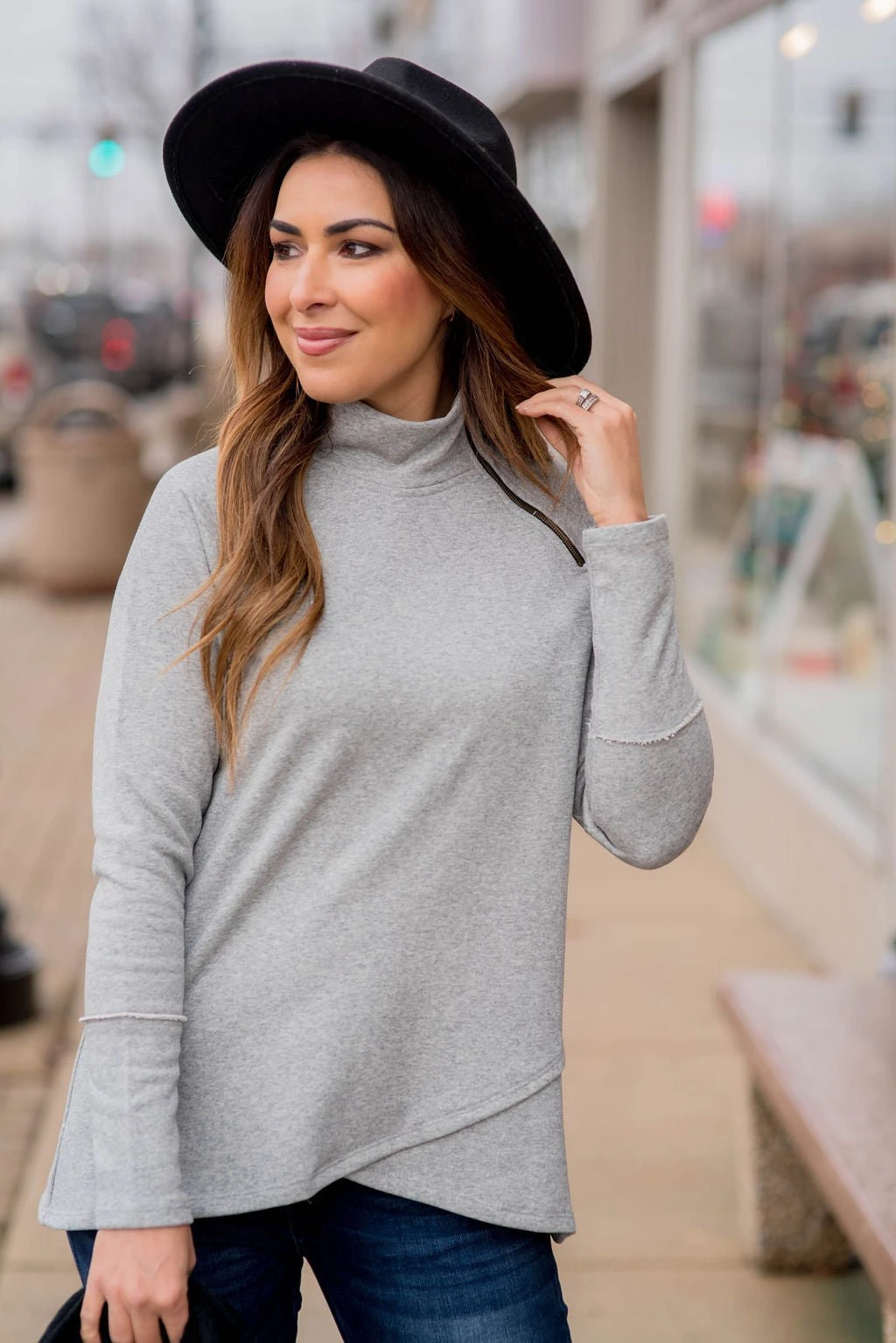Check out our Side Zip Wrap Pullover! With a zip on the left side of the neck, you have the ability to have it zipped all the way up to combat the chill, or relax a bit with it unzipped. You will stay warm with this pullover! Wear it with leggings and boots for a complete outfit!
