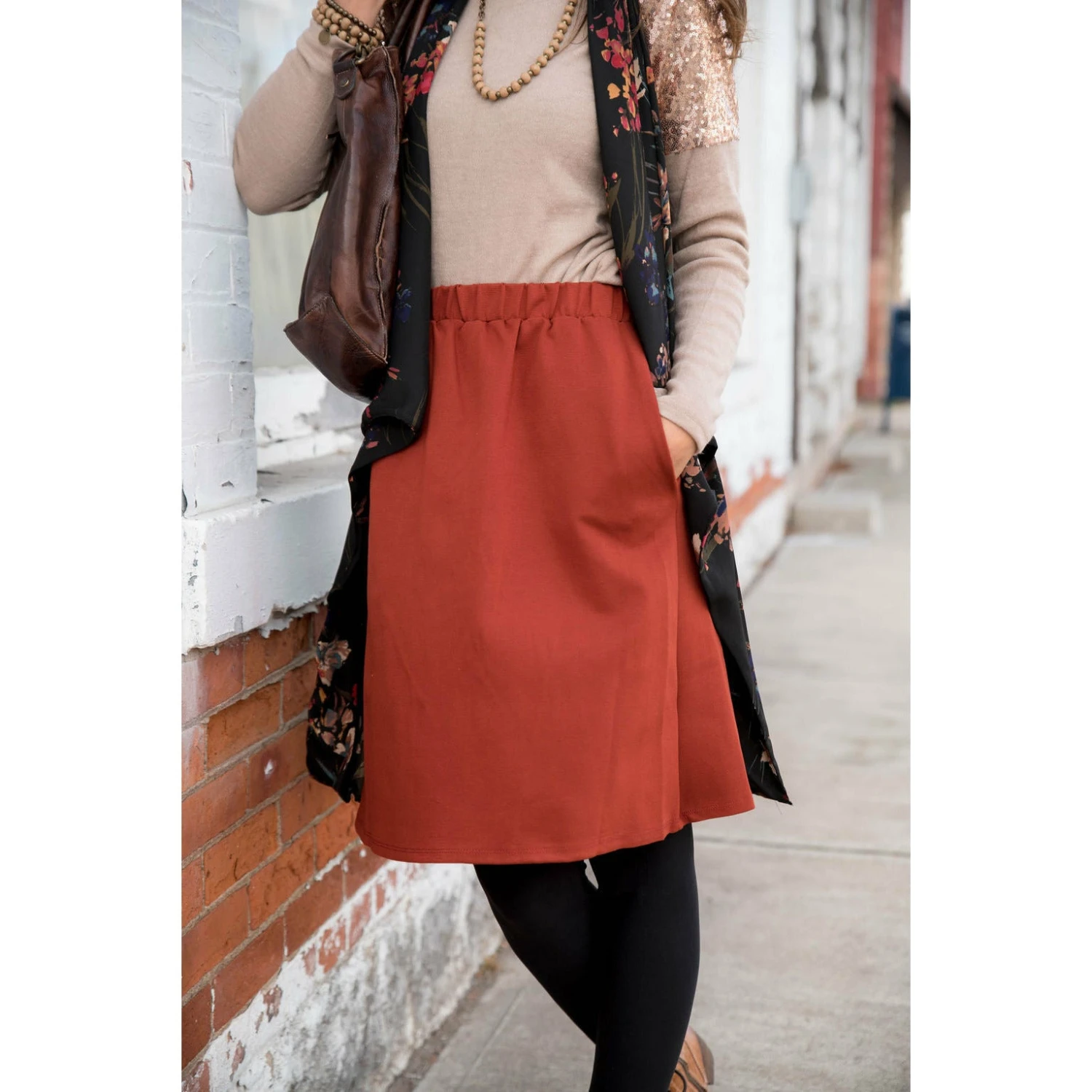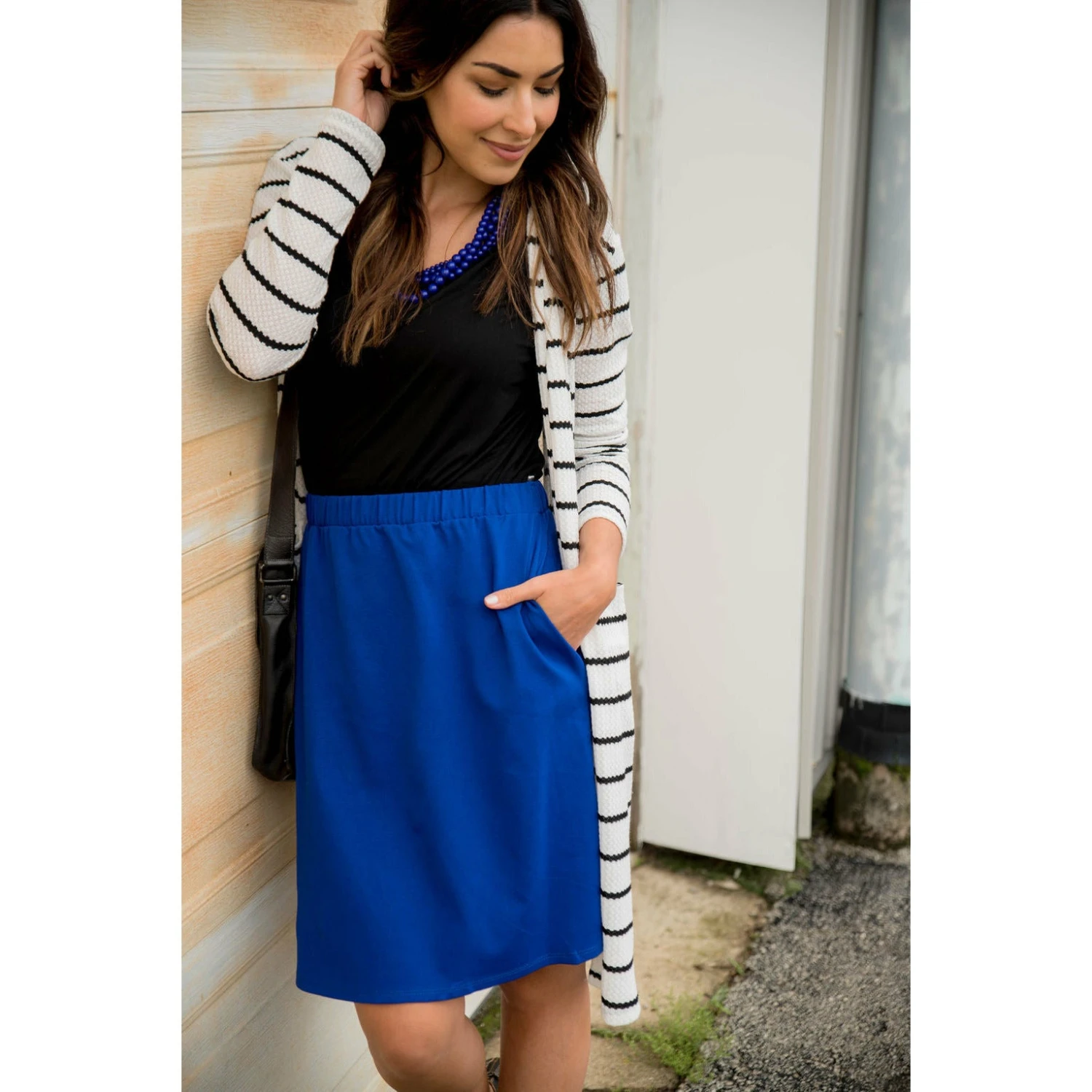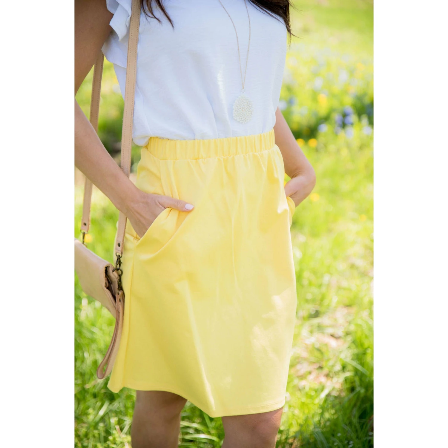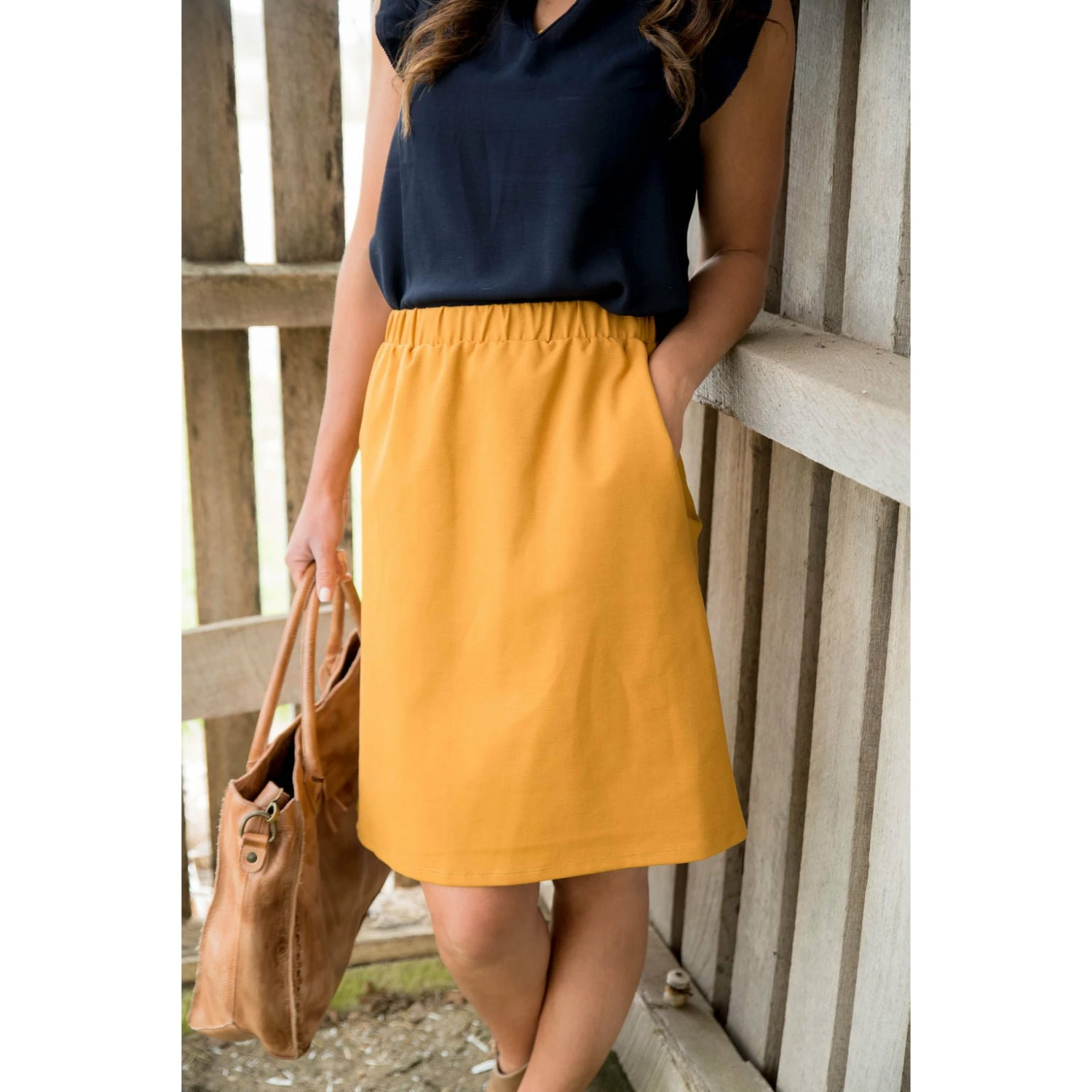Our simple skirt is perfect for those who love skirts. This one has pockets and it is very comfortably fitting which makes it great for any occasion.