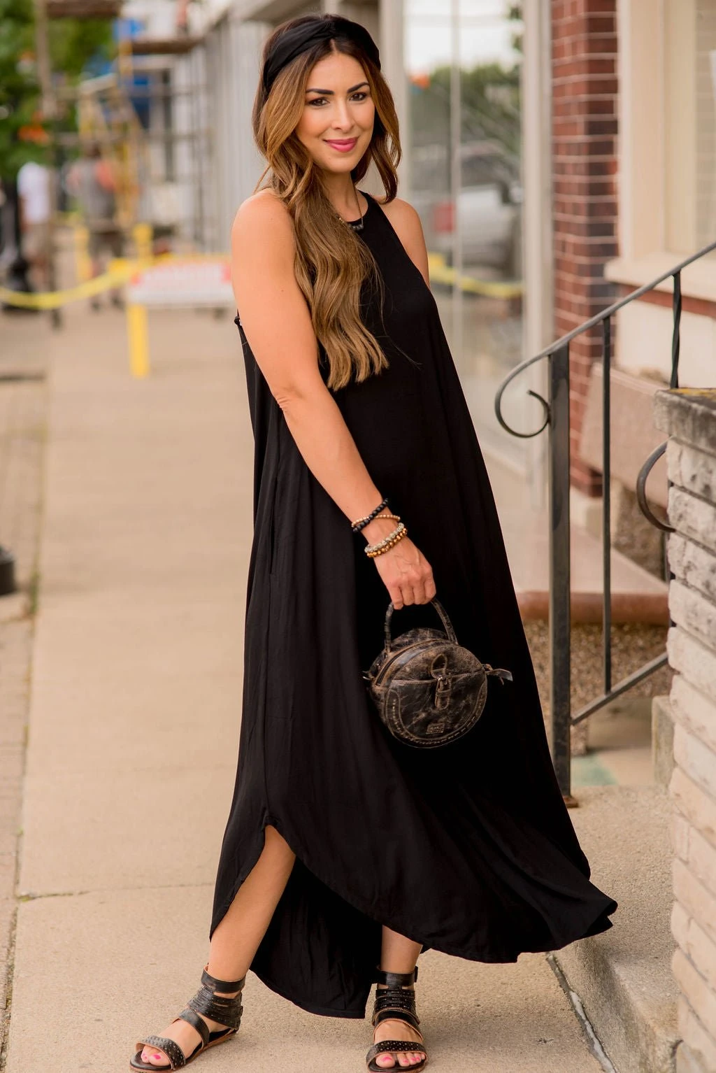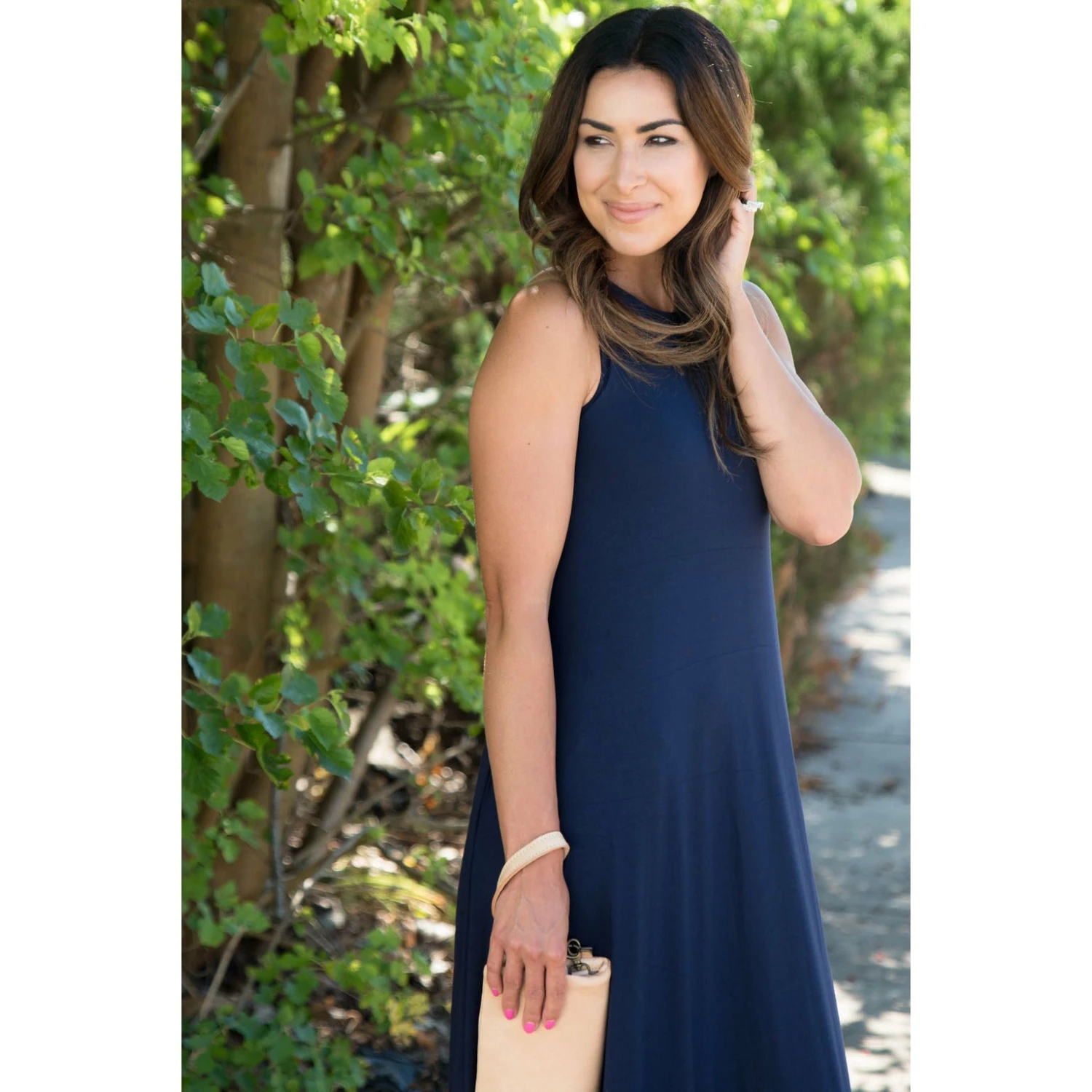 This navy sleeveless basic maxi has it all! The material has a little bit of stretch for a great fit and it is very comfortable! This is the perfect dress for any occasion!