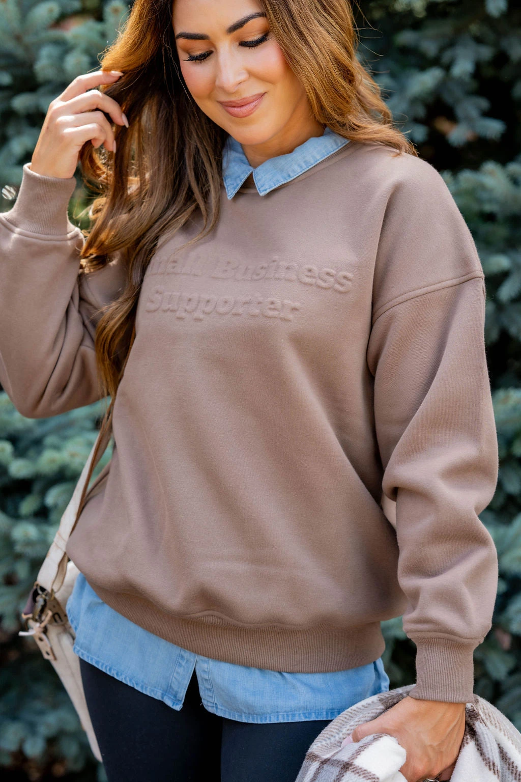 Crewnecks are a staple in every girls wardrobe! Easy to style and super comfy. This can be paired with shorts to transition you through warmer weather or with your favorite denim, joggers, or Betsey’s Jeggings for the cooler months! Chilly? Add a vest or jacket with ease! The embossed look makes this super unique.Â