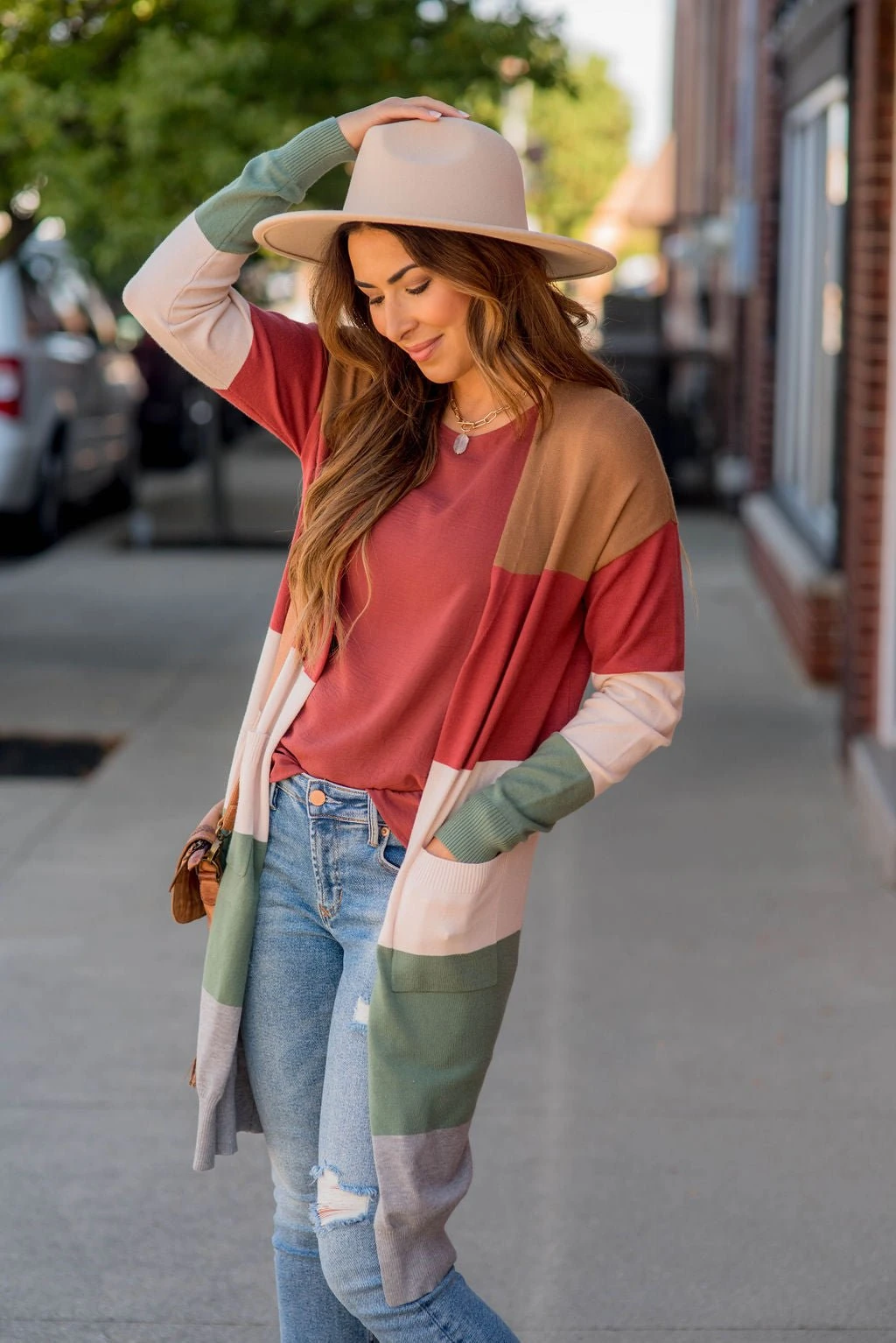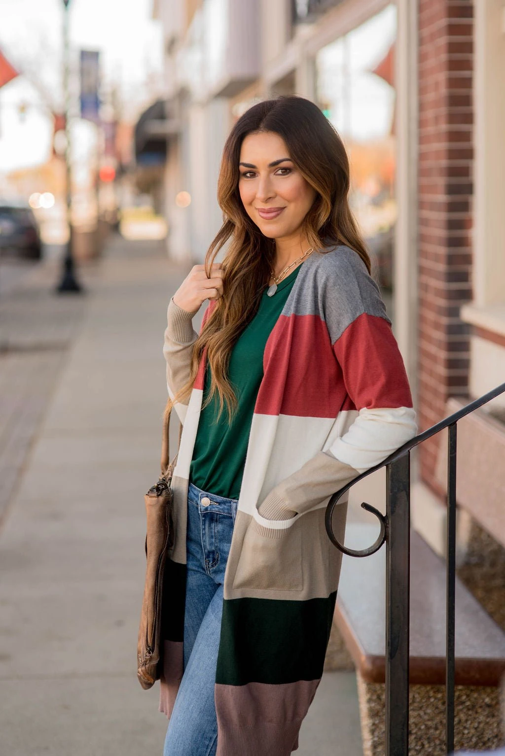 This cardigan is so adorable! The multiple color blocks give you opportunities for many different looks!