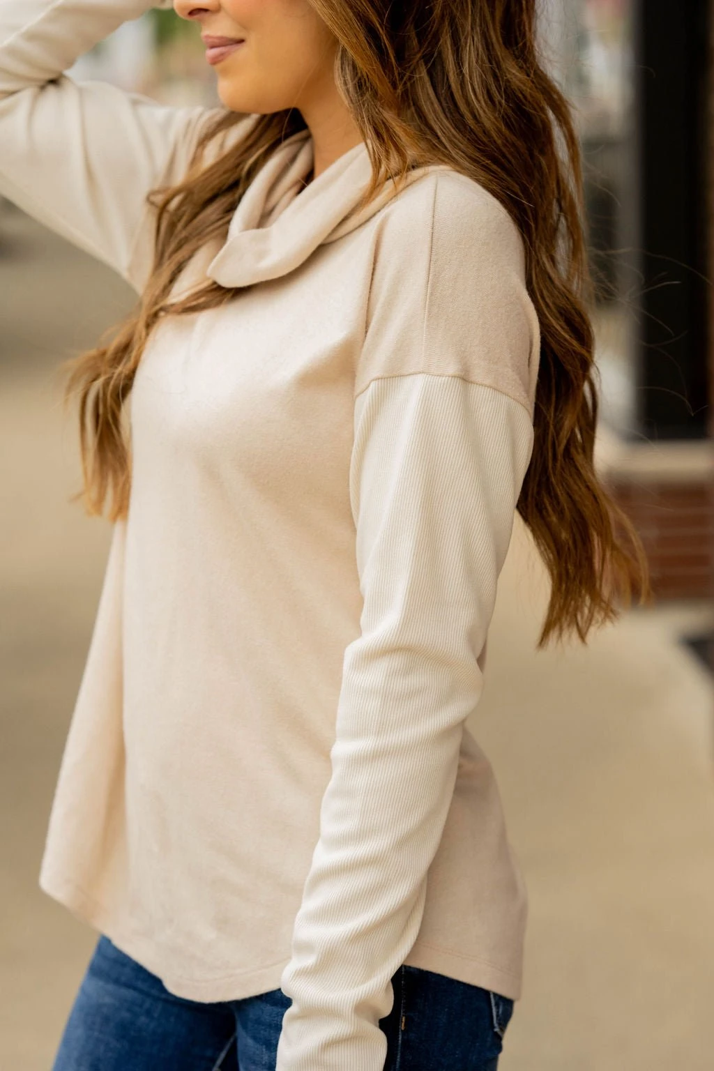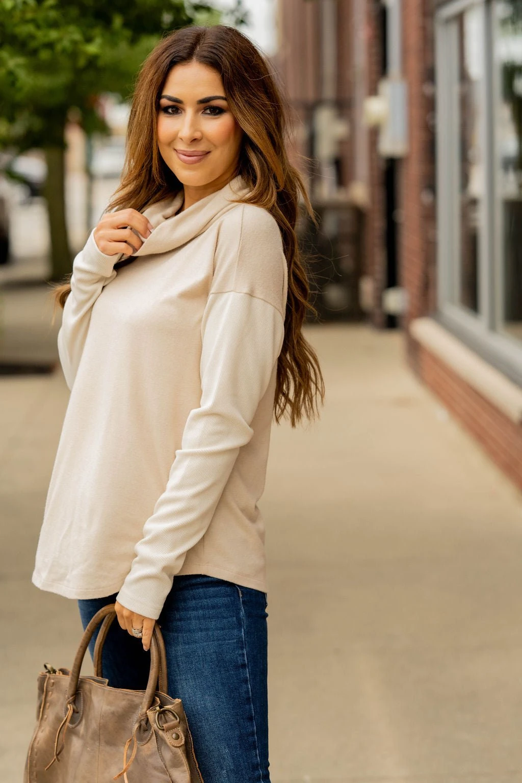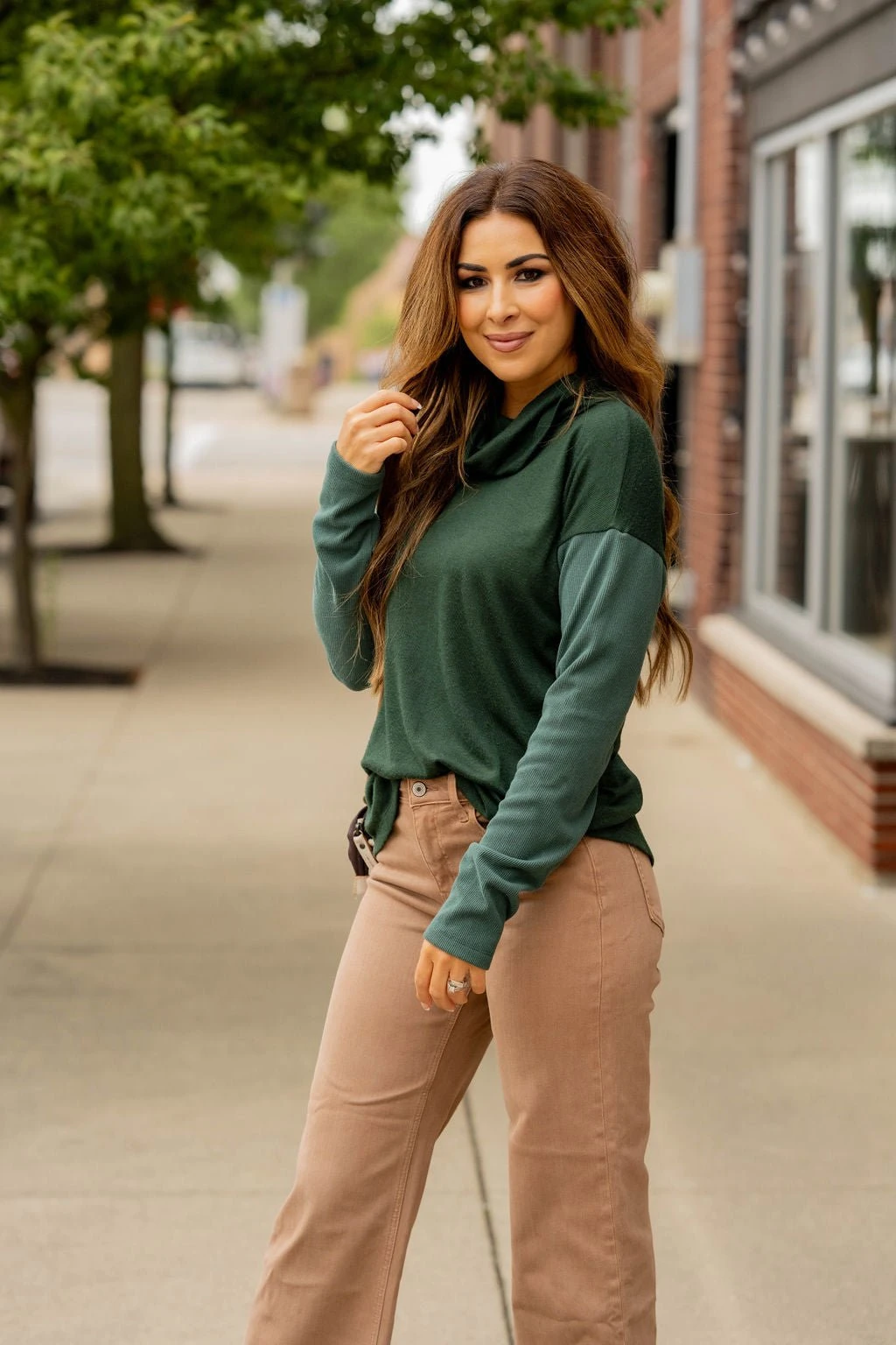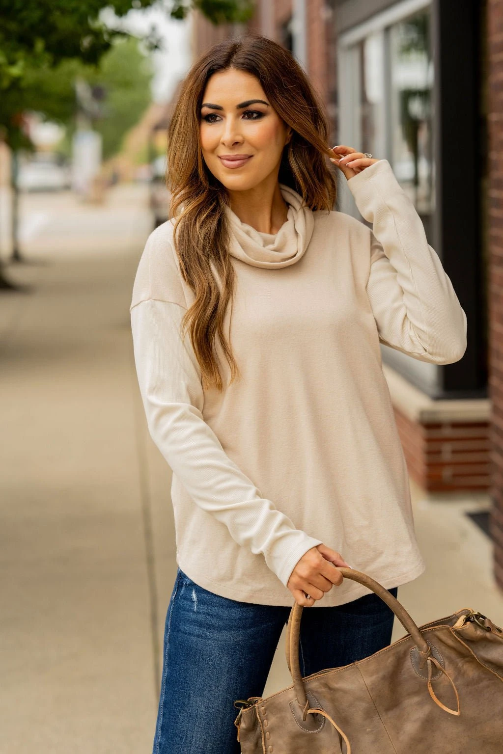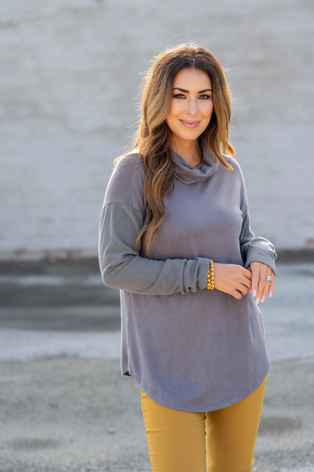 This super soft and lightweight cowl neck that can be dressed up or down for wherever the day takes you! Pair with leggings or joggers for a quick and easy on-the-go look or with your favorite denim or our Betsey’s Jeggings for a more elevated feel! We love how easy this is to layer with a vest or shacket for the cooler months too! The super soft body is the perfect contrast against the ribbed sleeves.