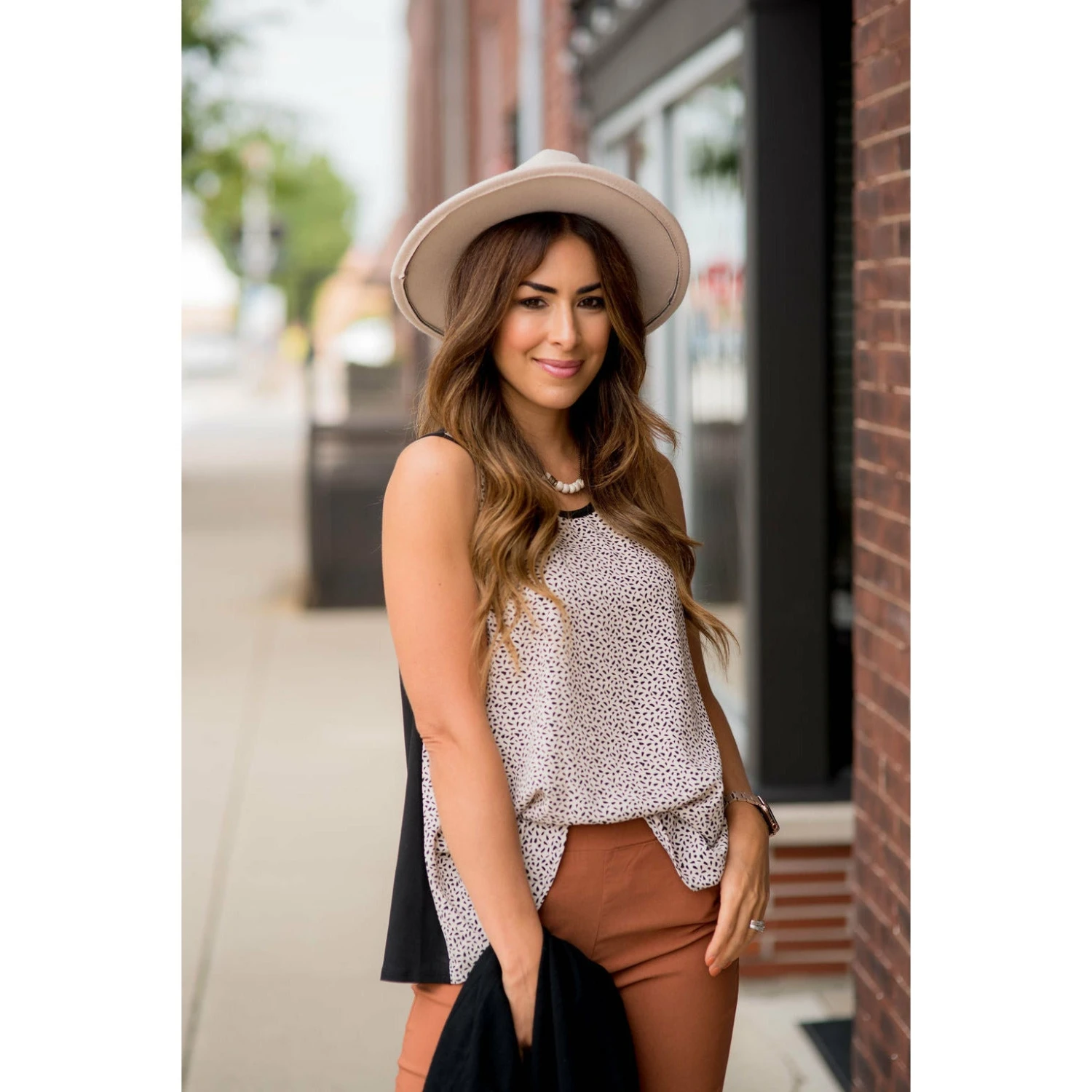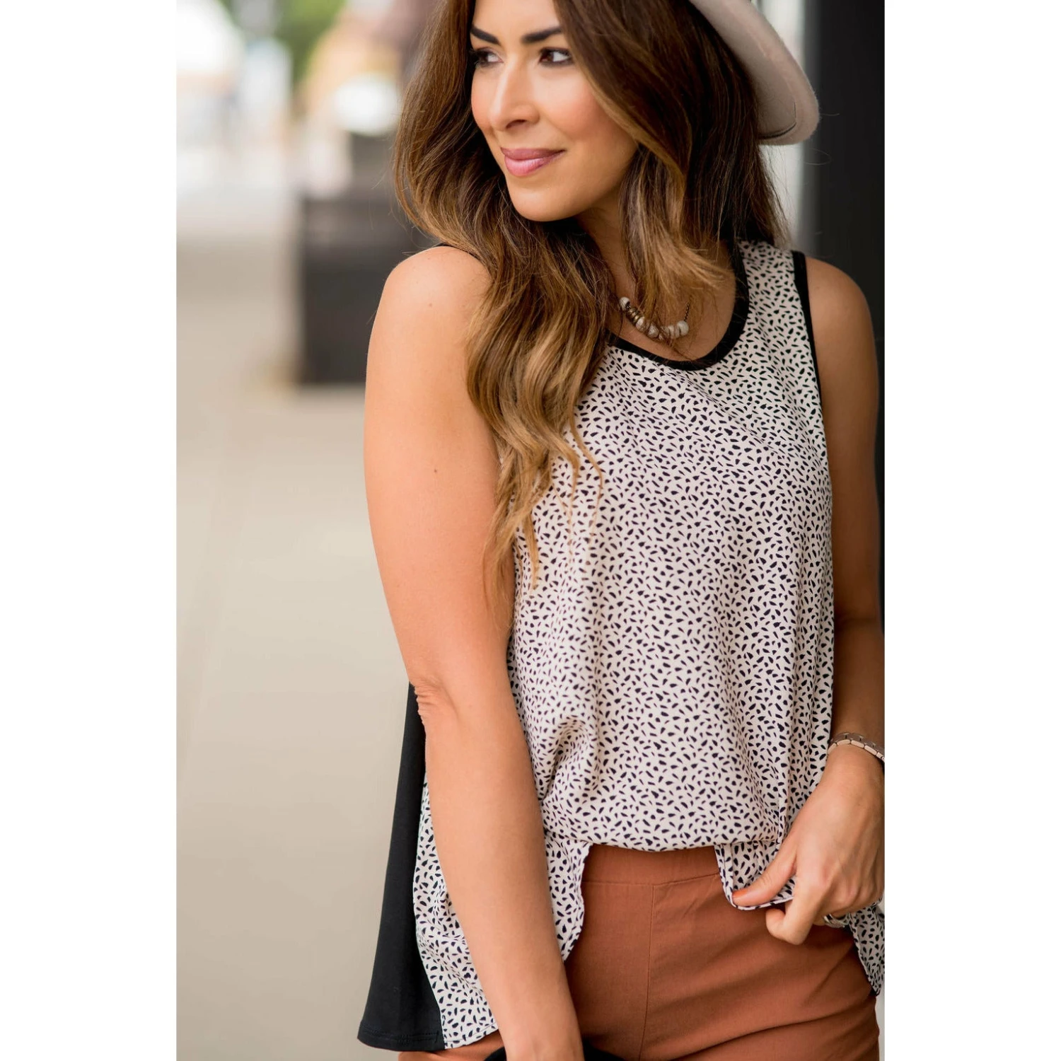 This tank is super cute with a patterned front and solid back. Not sure what to wear it with? The possibilities are endless! Throw on a cardigan for that extra layer and jeans, leggings, or jeggings to finish it off!