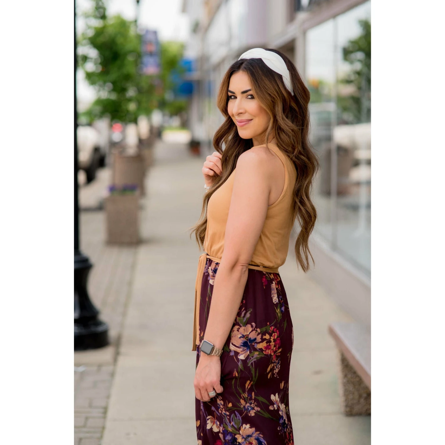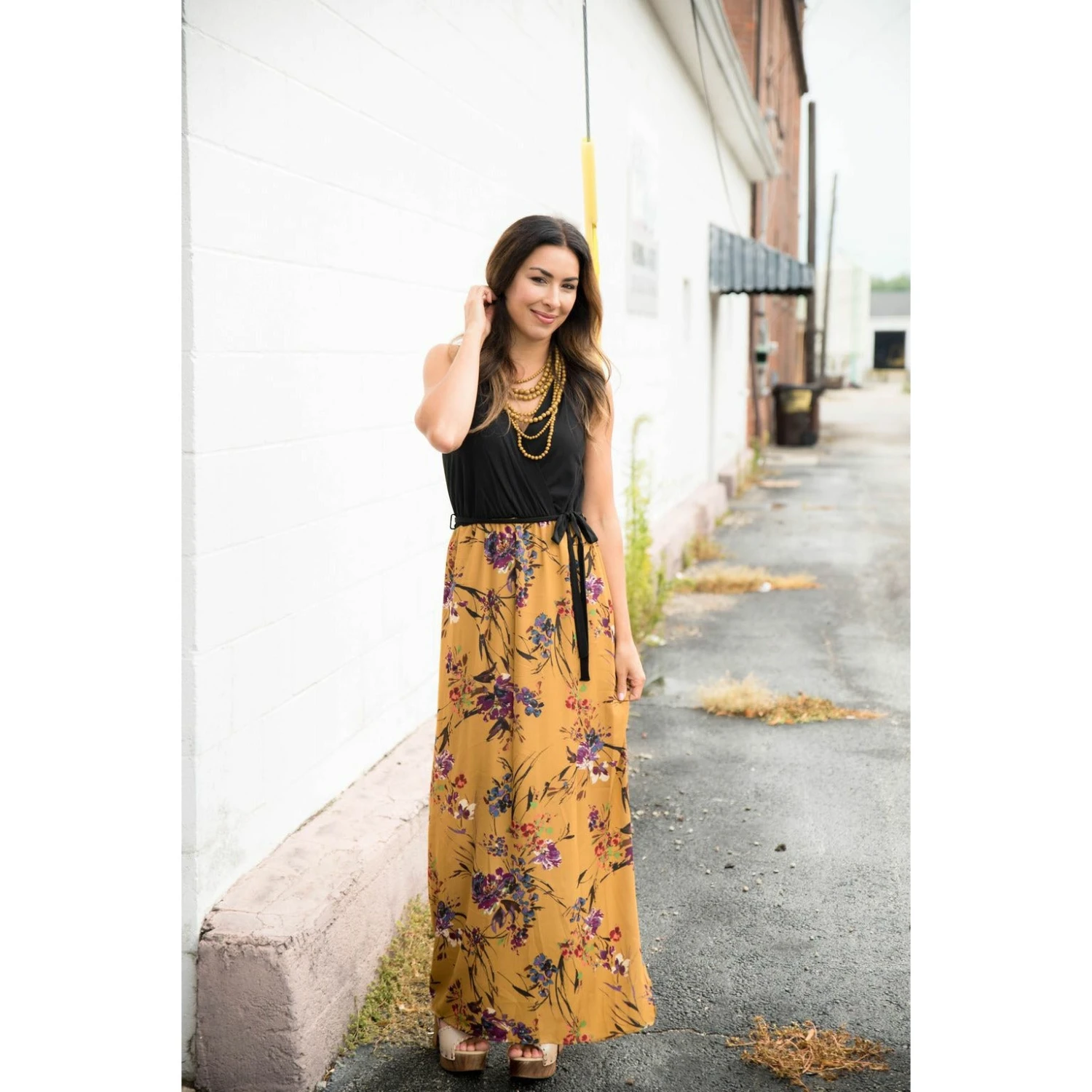 Maxi’s are so trendy and super comfortable! This maxi features a solid mustard tank style top with a tie at the waist, and a rich and bold floral print bottom. We love that this maxi can carry you through any season too! Pair with a fun pair of earrings and sandals for the warmer months, or a denim jacket and flats or booties for the cooler months! It is super soft and lightweight making it breathable and comfy, yet it looks dressy enough to wear for any occasion!