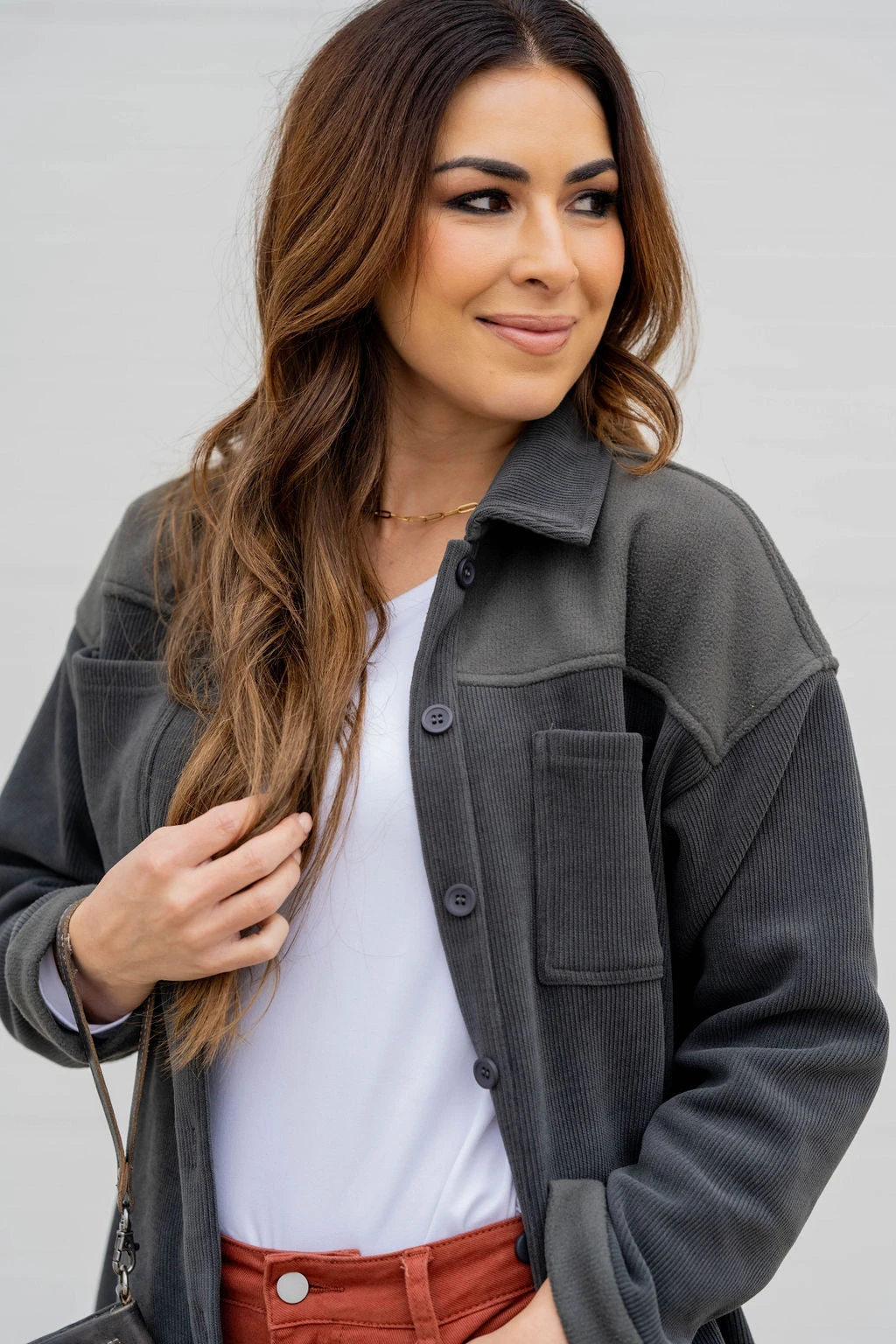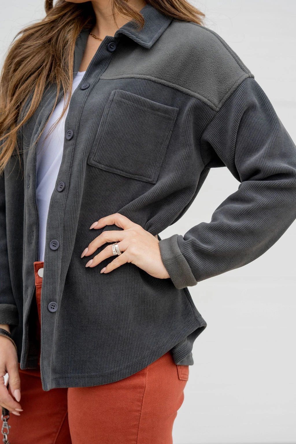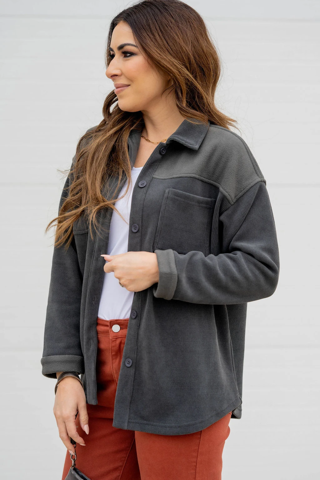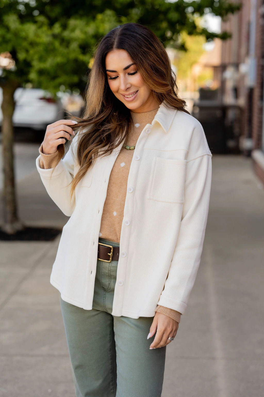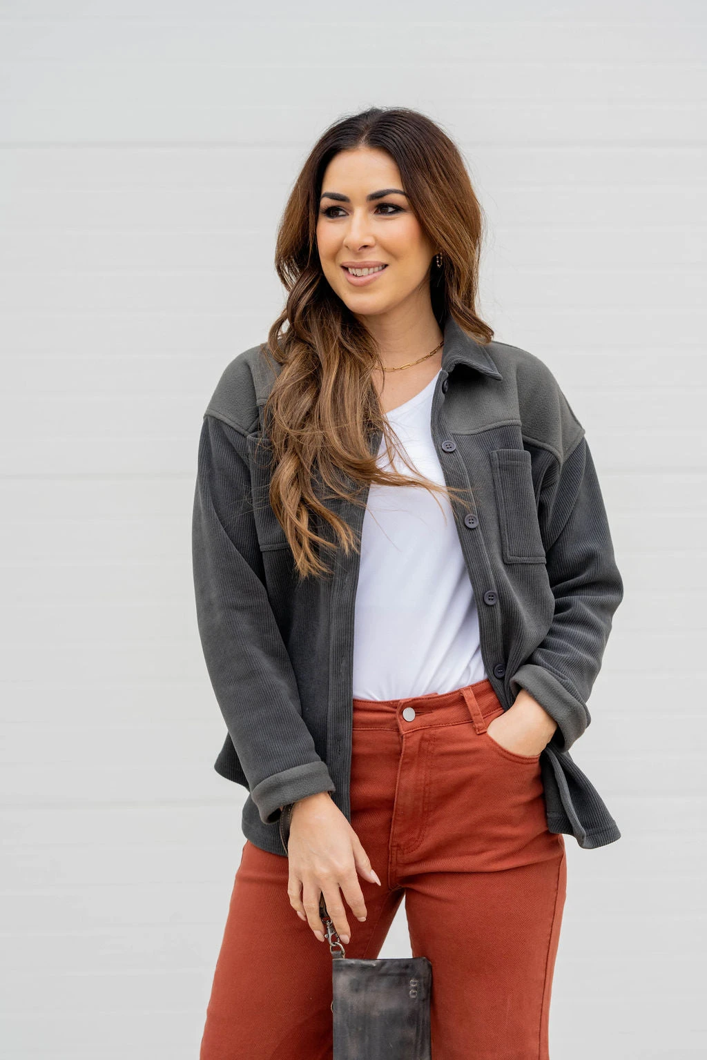 It’s all in the details with this simple shacket! Perfect for layering over a dress, a blouse, a sweatshirt, or your favorite graphic tee for an easy outfit! The lightweight material of this one makes it ideal to transition you through seasons too!