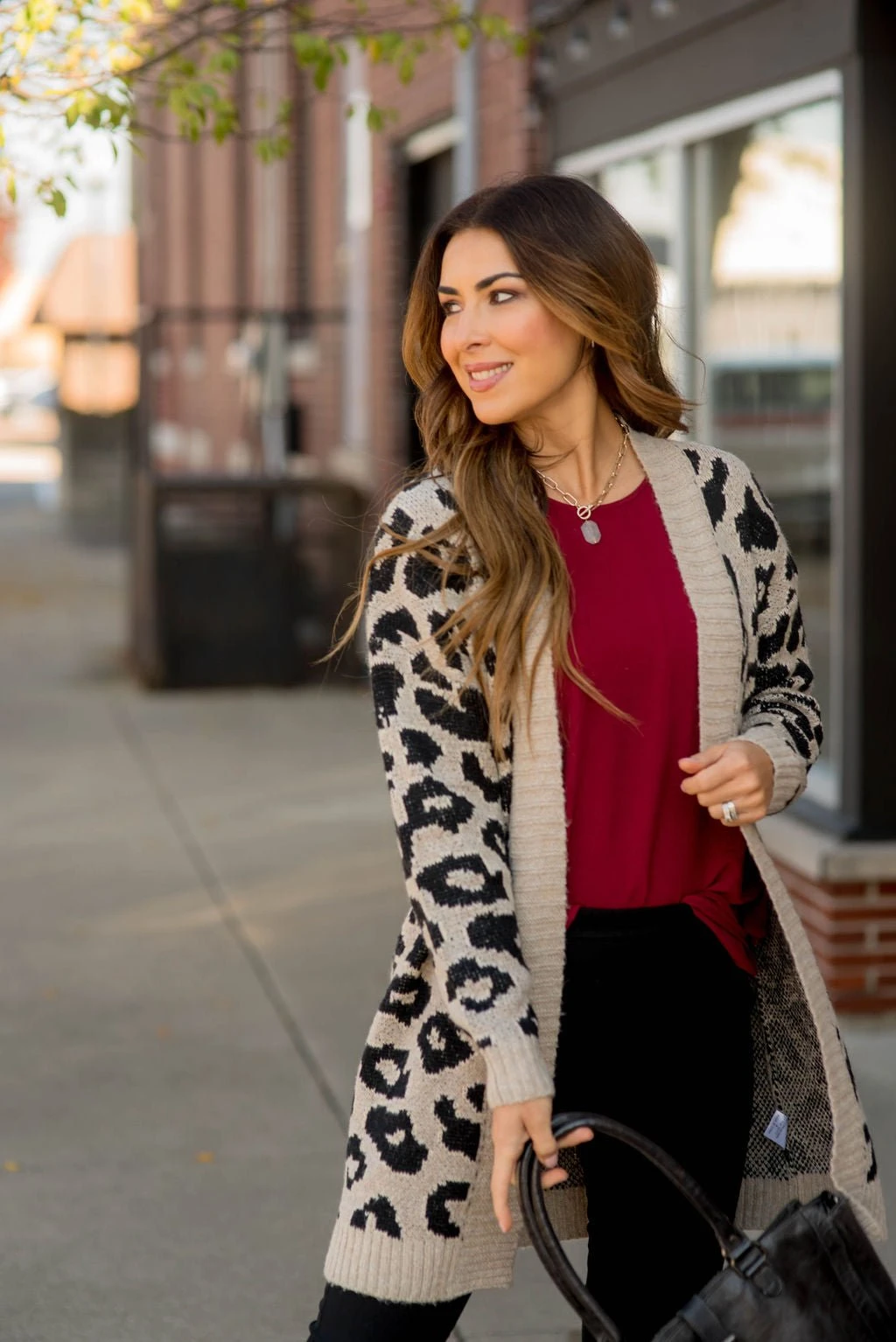 This leopard print, solid trimmed cardigan is super soft and you will love wearing it constantly! Wear it over a dress or one of Betsey’s Basic Tees and leggings! No matter how you want to wear it, it will be a go to!