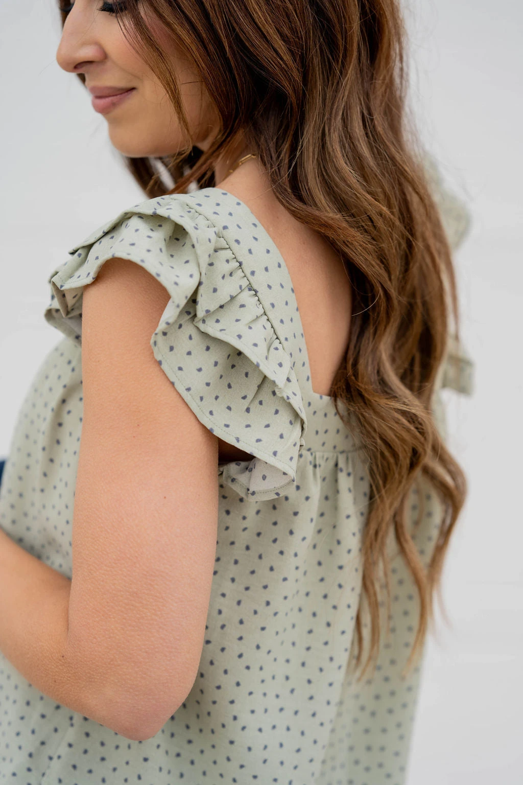 The lightweight material can easily be layered with a blazer, cardigan, or jacket for those cooler days! Tuck into a high-waisted skirt or with shorts in the warmer months or with denim or our Betsey’s Jeggings for the cooler ones! Dress this up or down for wherever the day takes you! The square cut neckline and dual flutter accents make this a must-have piece.