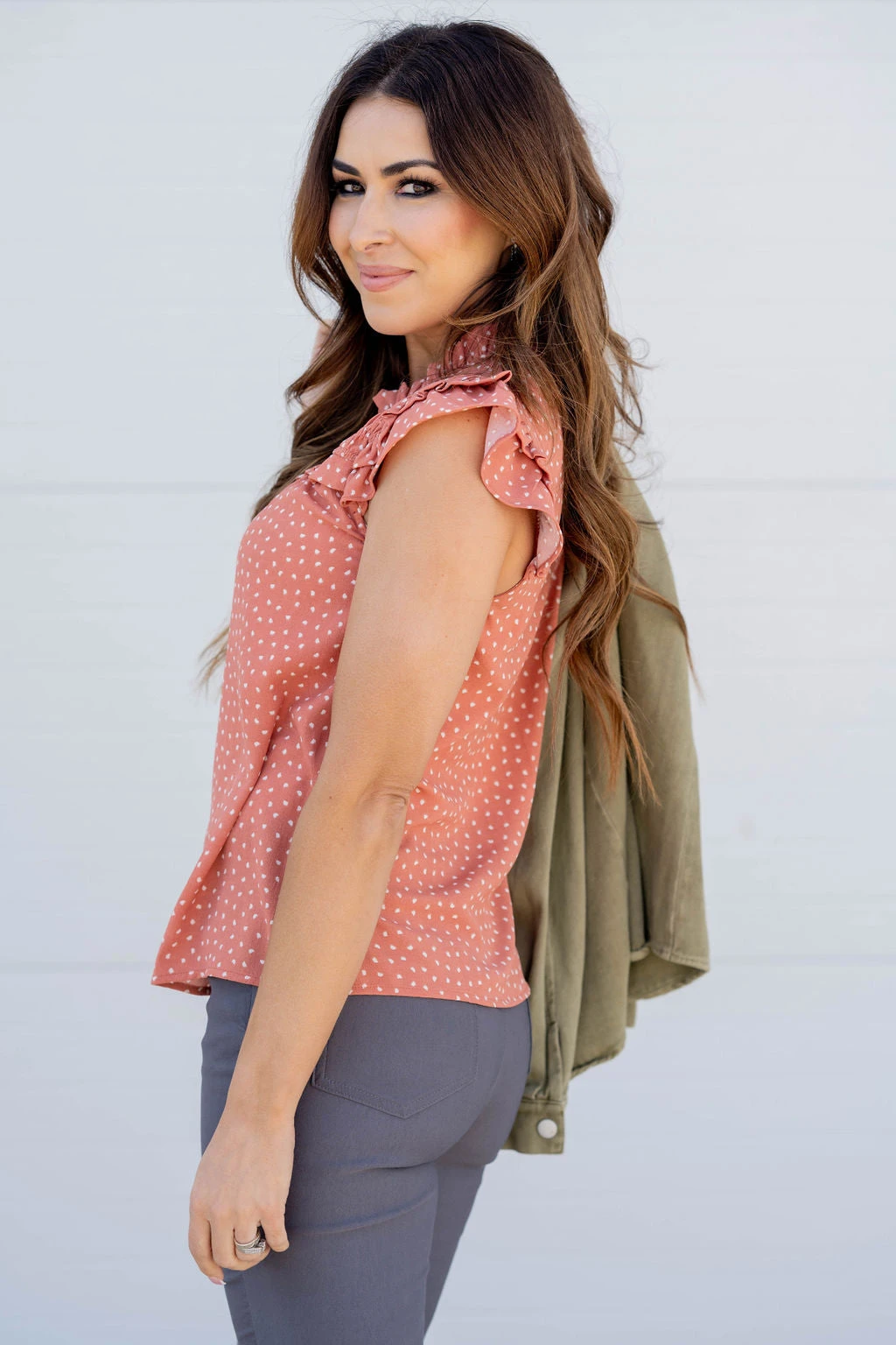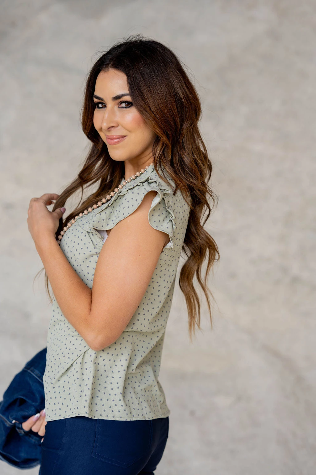 The lightweight material can easily be layered with a blazer, cardigan, or jacket for those cooler days! Tuck into a high-waisted skirt or with shorts in the warmer months or with denim or our Betsey’s Jeggings for the cooler ones! Dress this up or down for wherever the day takes you! The smocked top detailing and flutter accents make this a must-have piece.