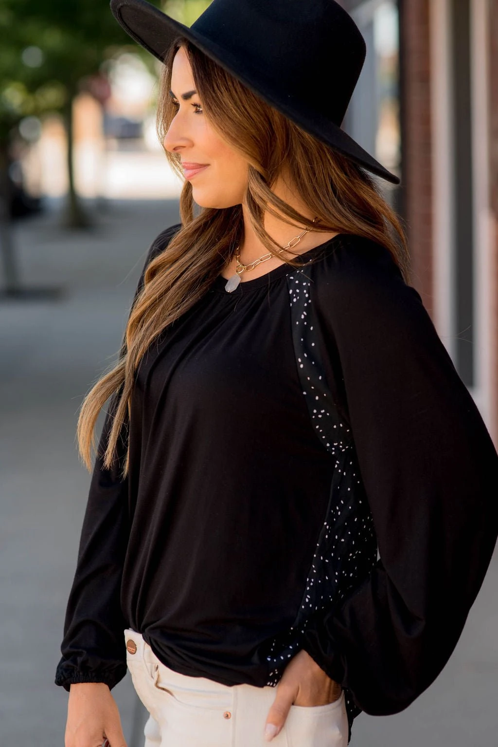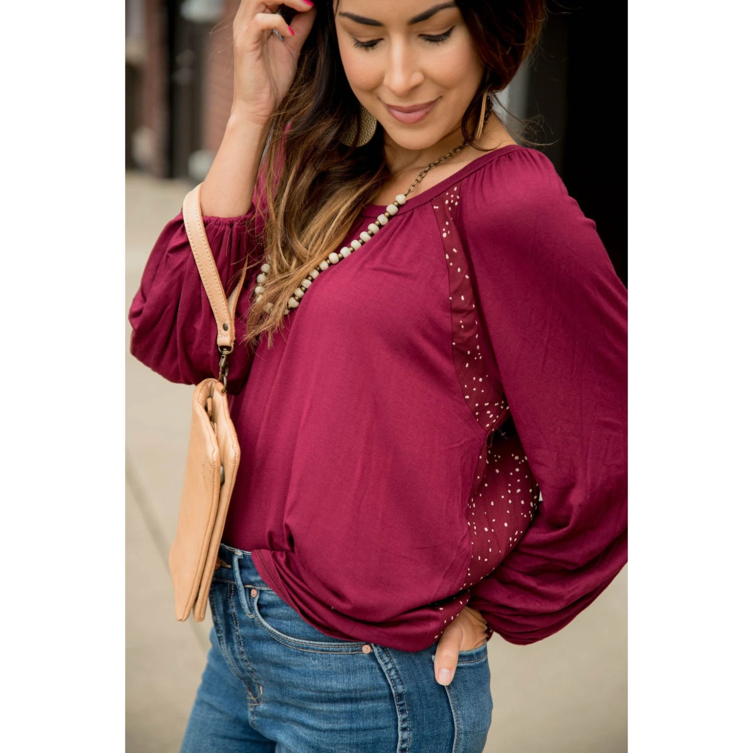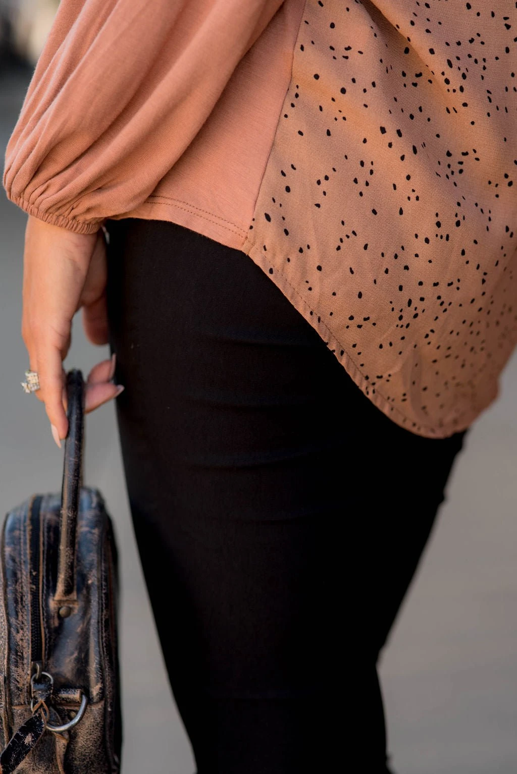 Soft and flowy, yet comfy and chic! The dot trim brings life to any outfit. Pair with your fave jeans or leggings, this tee has you ready for any occasion.