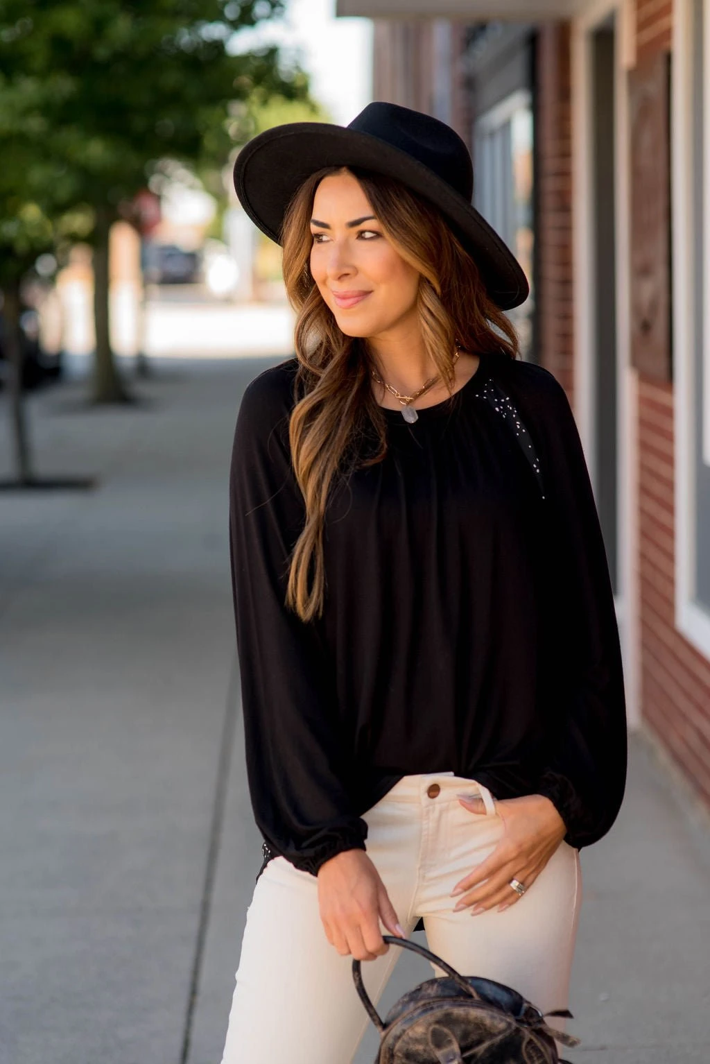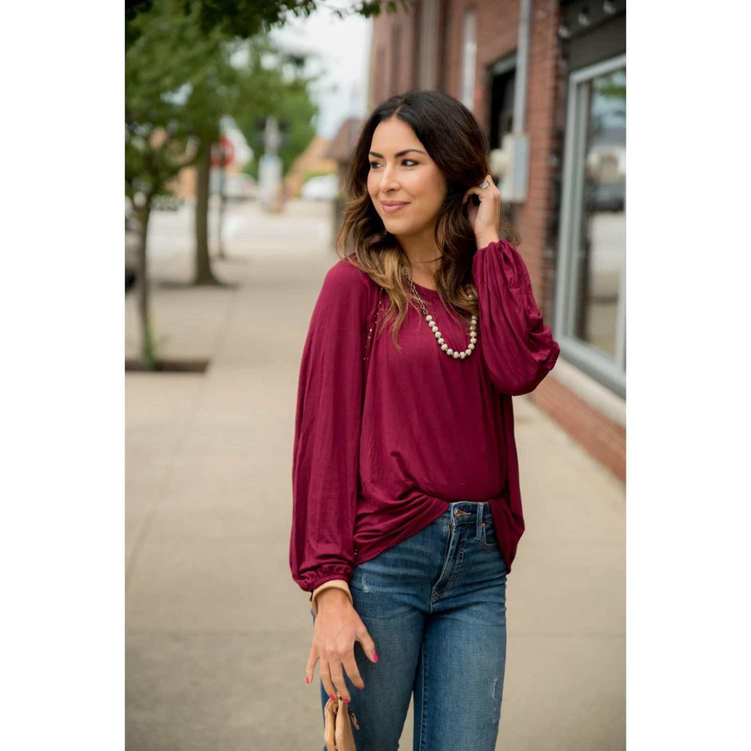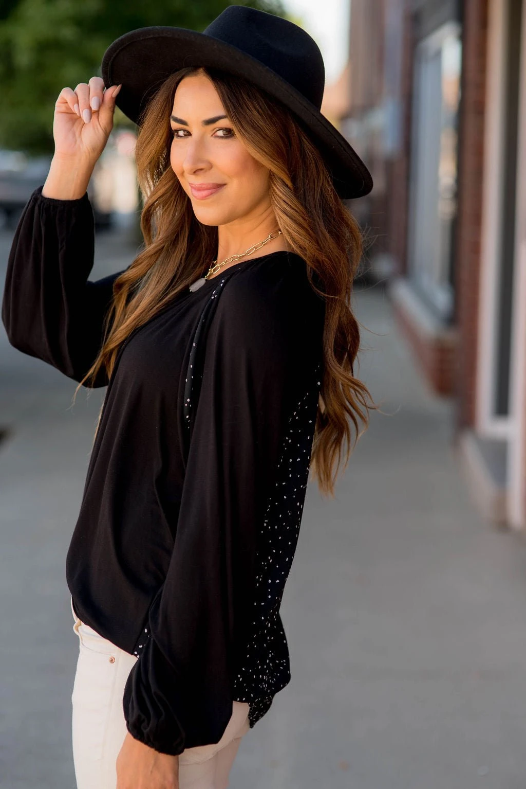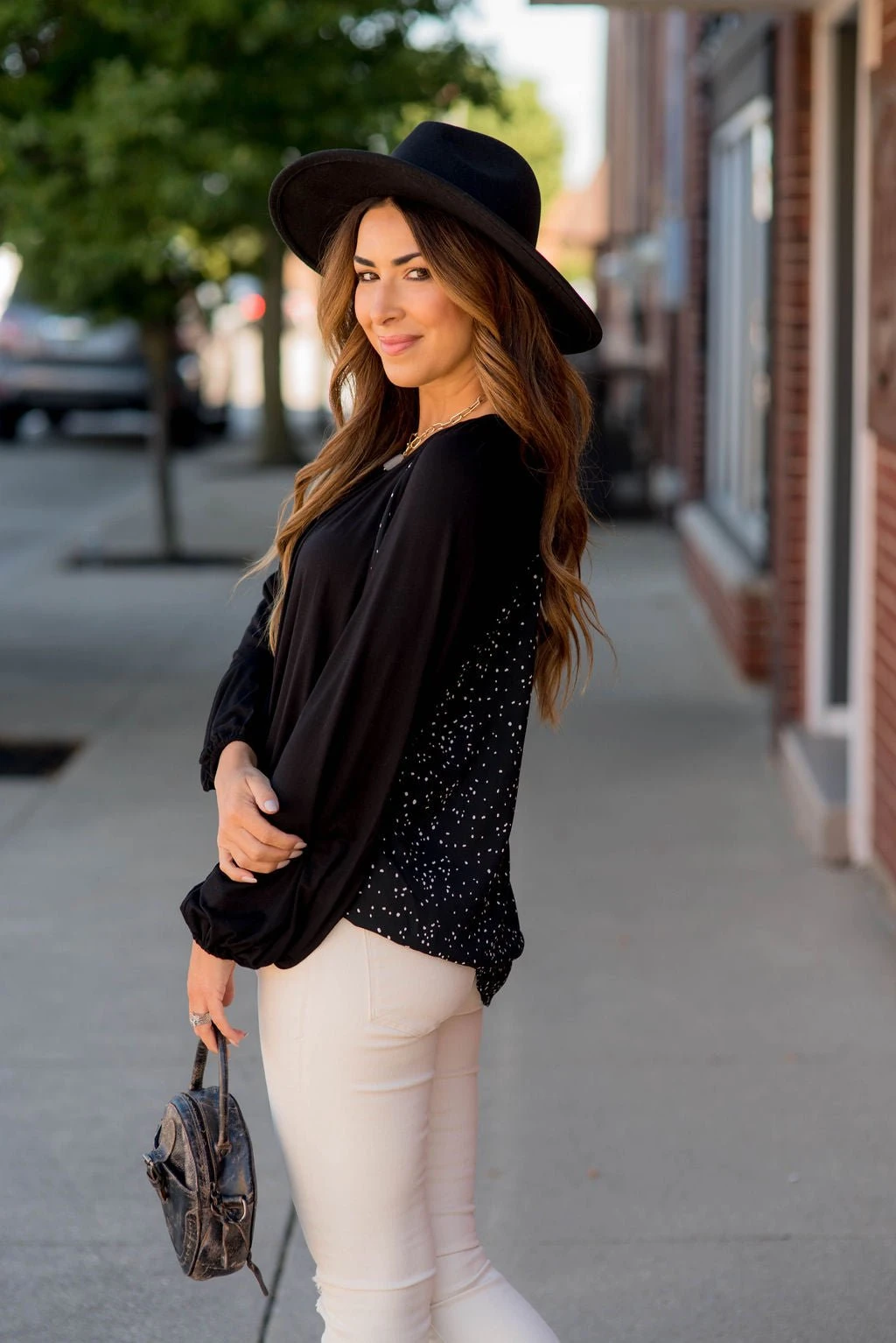 Soft and flowy, yet comfy and chic! The dot trim brings life to any outfit. Pair with your fave jeans or leggings, this tee has you ready for any occasion.