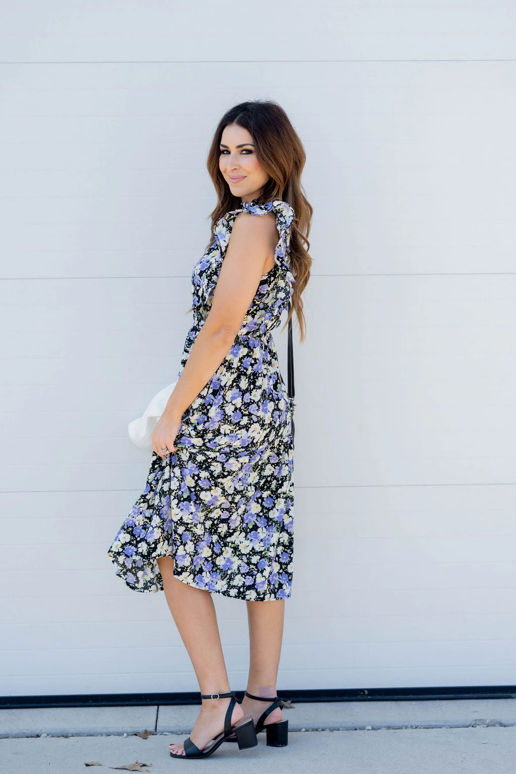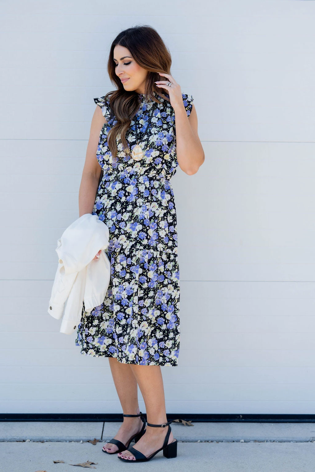 This is the perfect dress for any occasion. The midi length is appropriate for any event, and the lightweight material and flowy fit is great for any season. Wear on its own with the cute ruffle trim for the warmer months, or pair with a colored cardigan and a pair of booties for the cooler ones. We know how matter you wear this, you will make it fit your style!