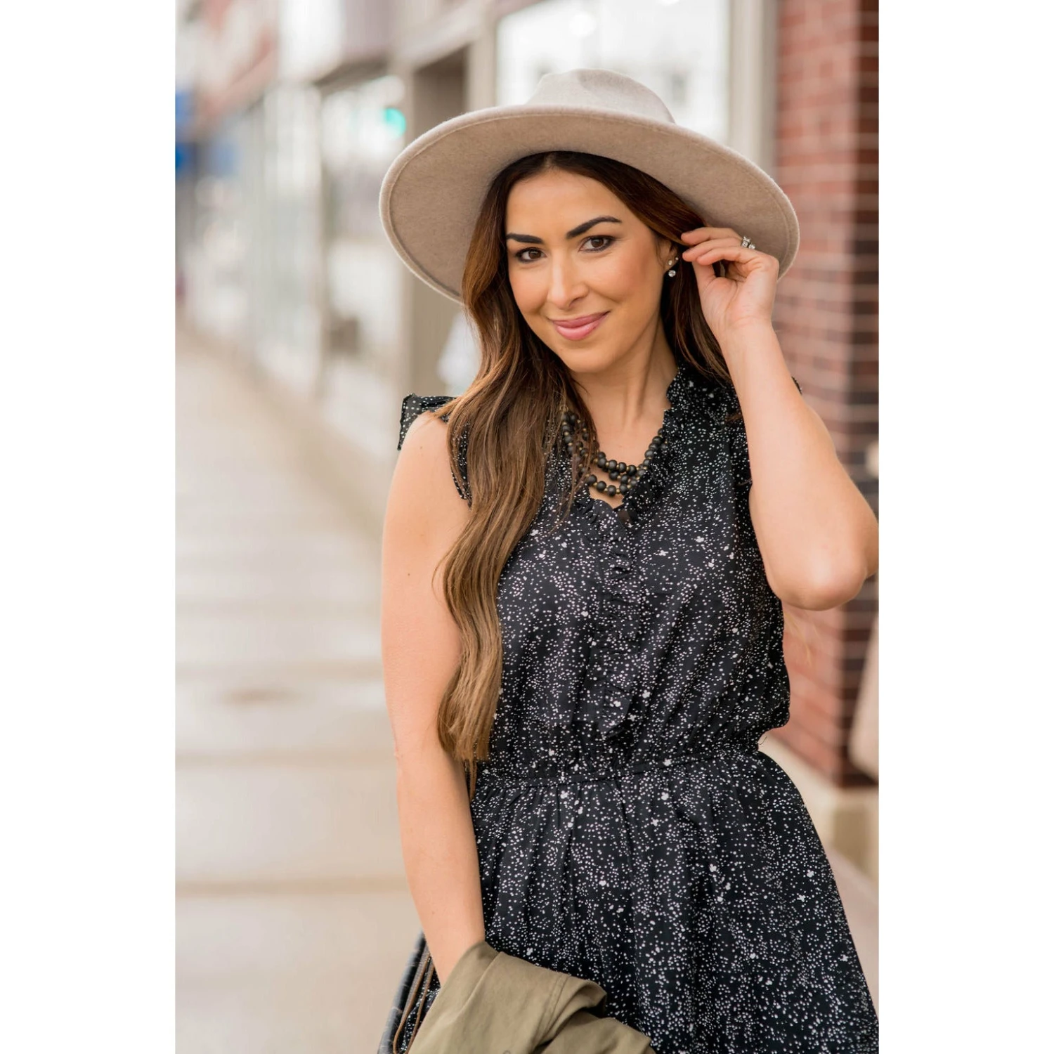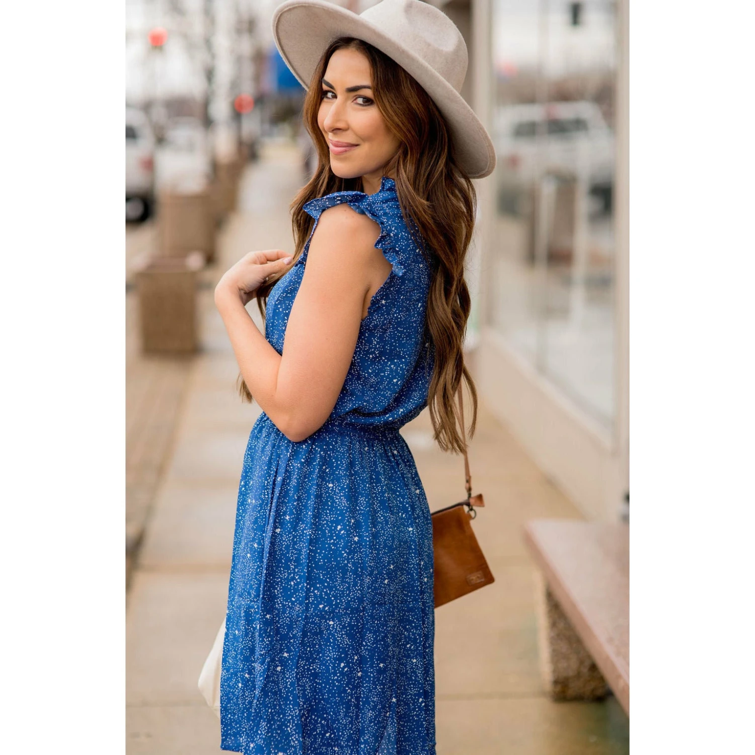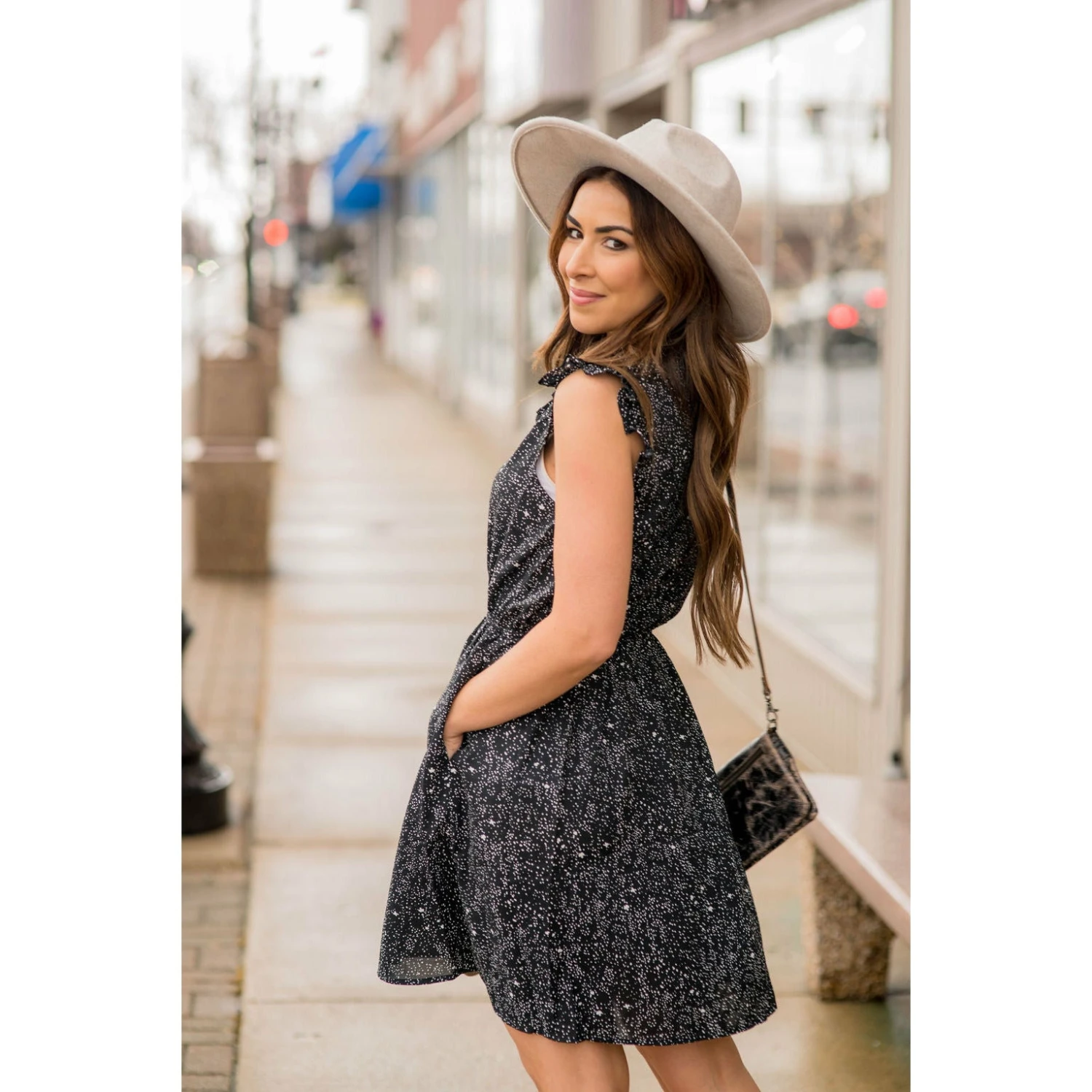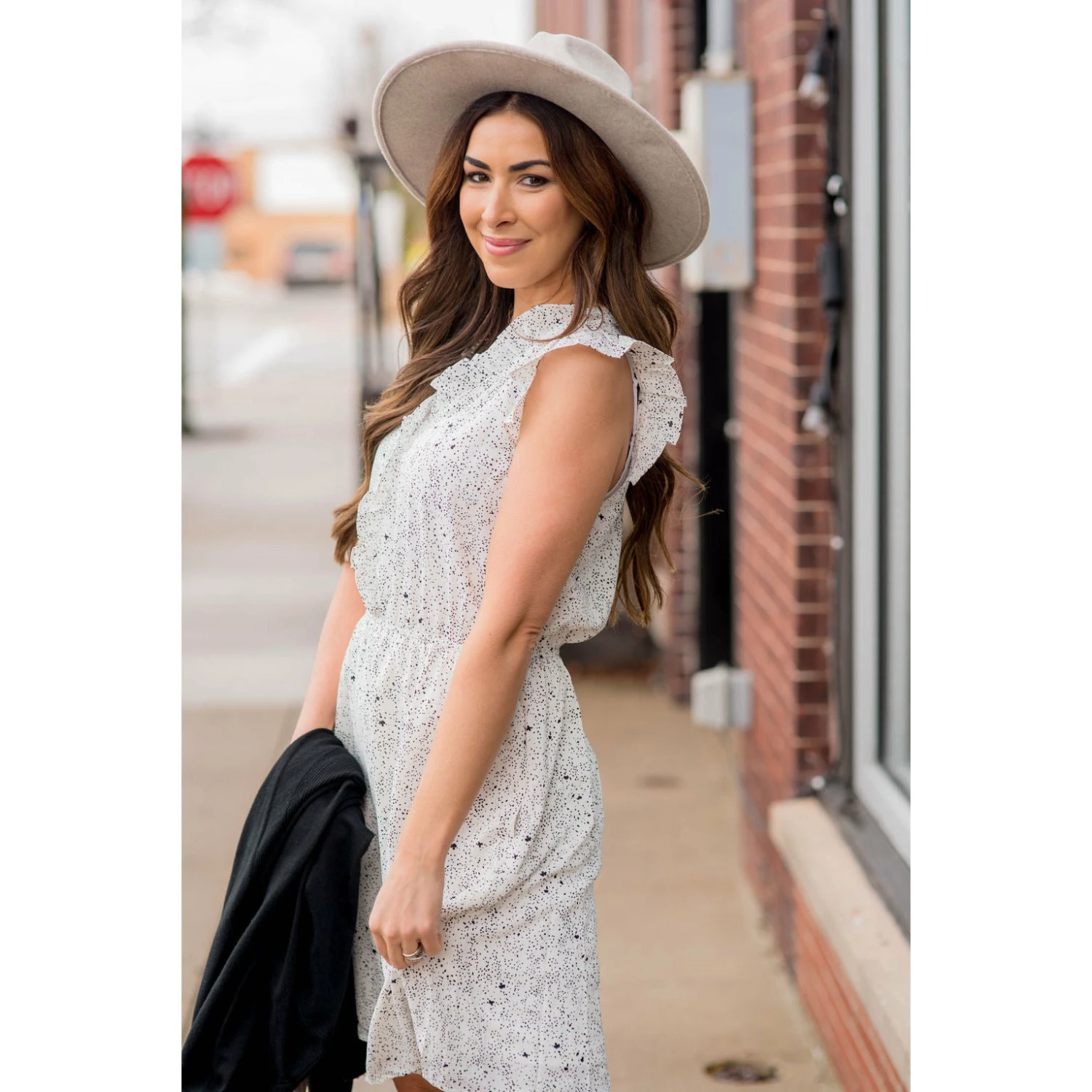 We love the simplicity of this dress. The neutral colors, ruffle accents and dotted pattern make such a simple, elegant look! Wear this dress all year round, just add a cardigan on cold days!
