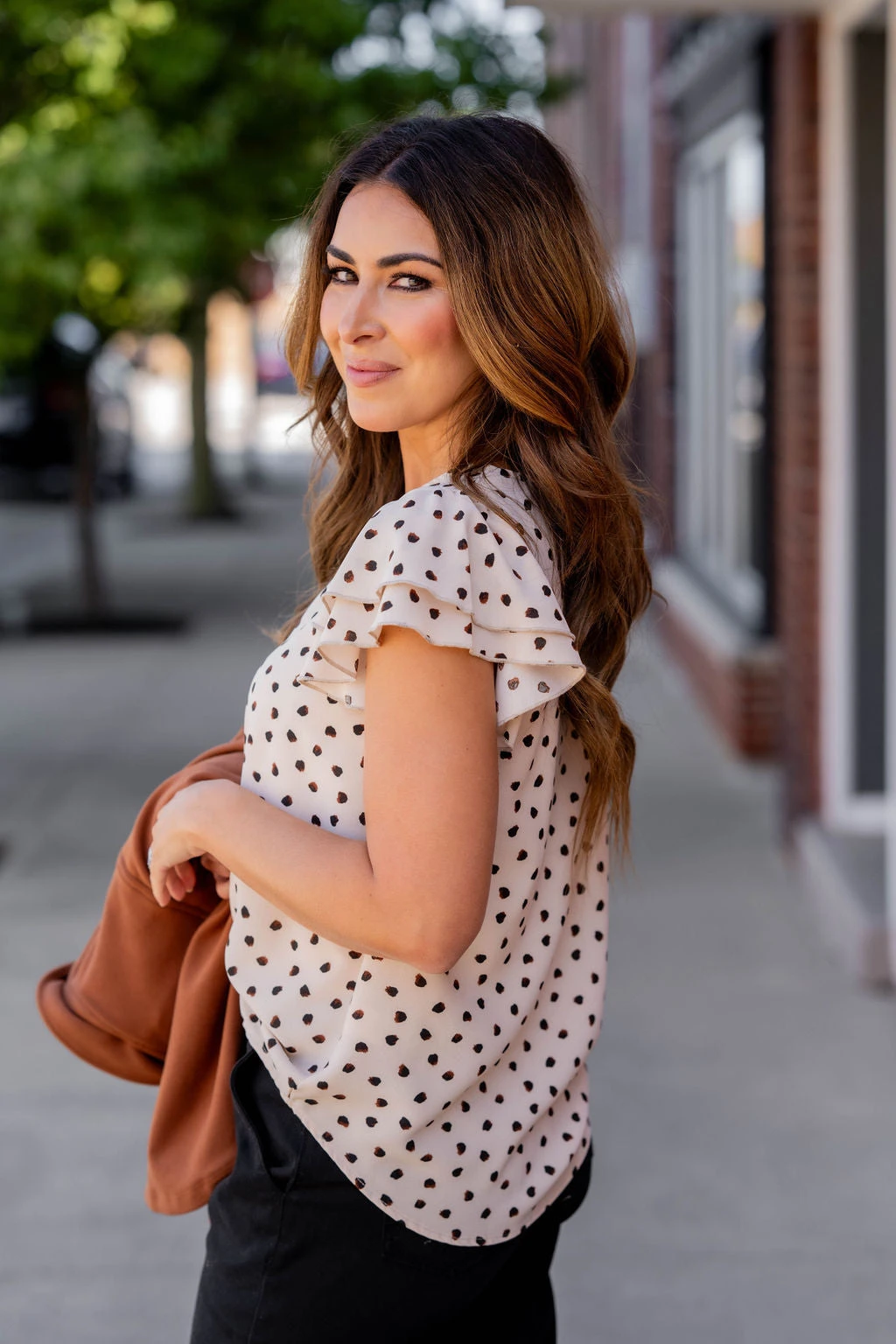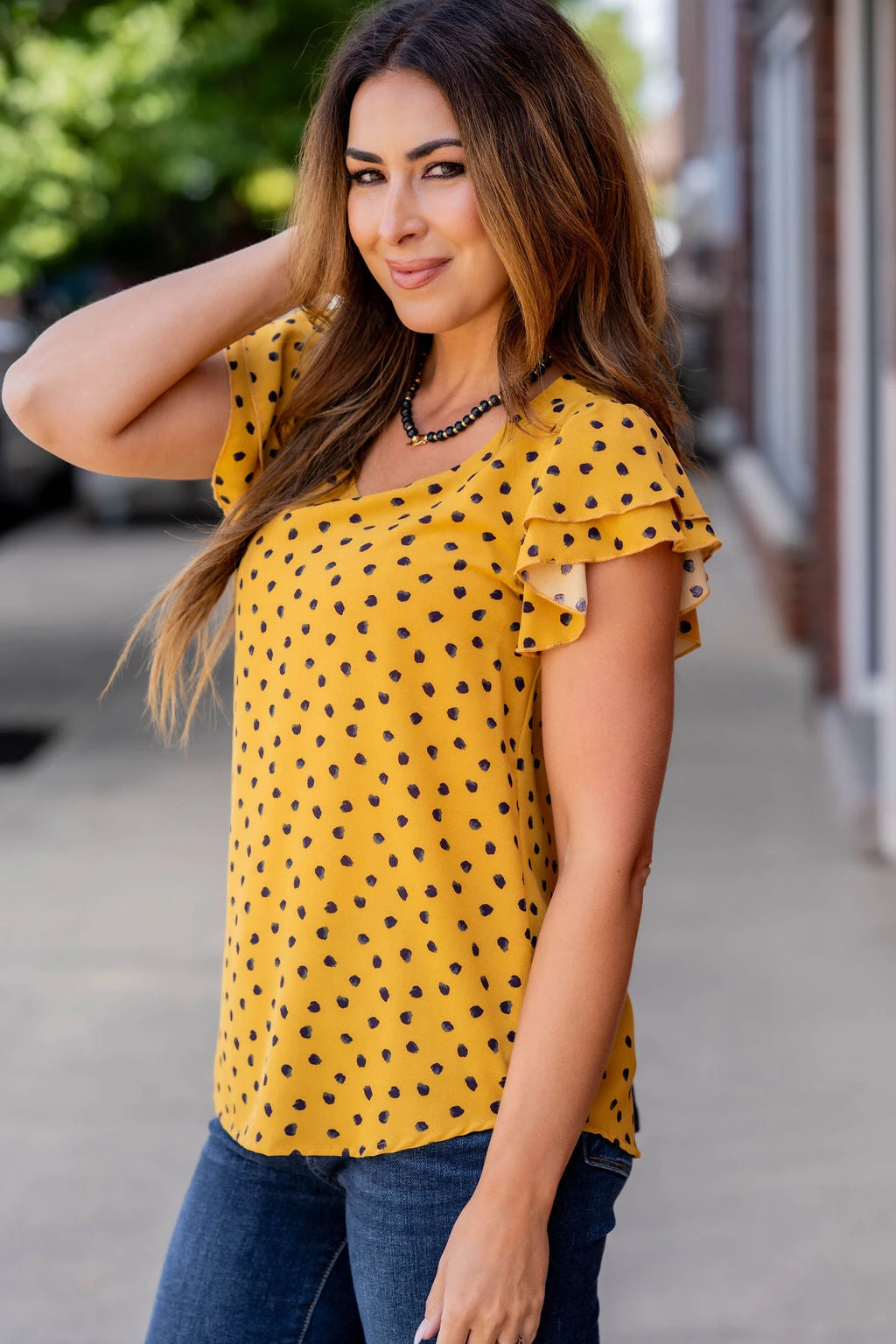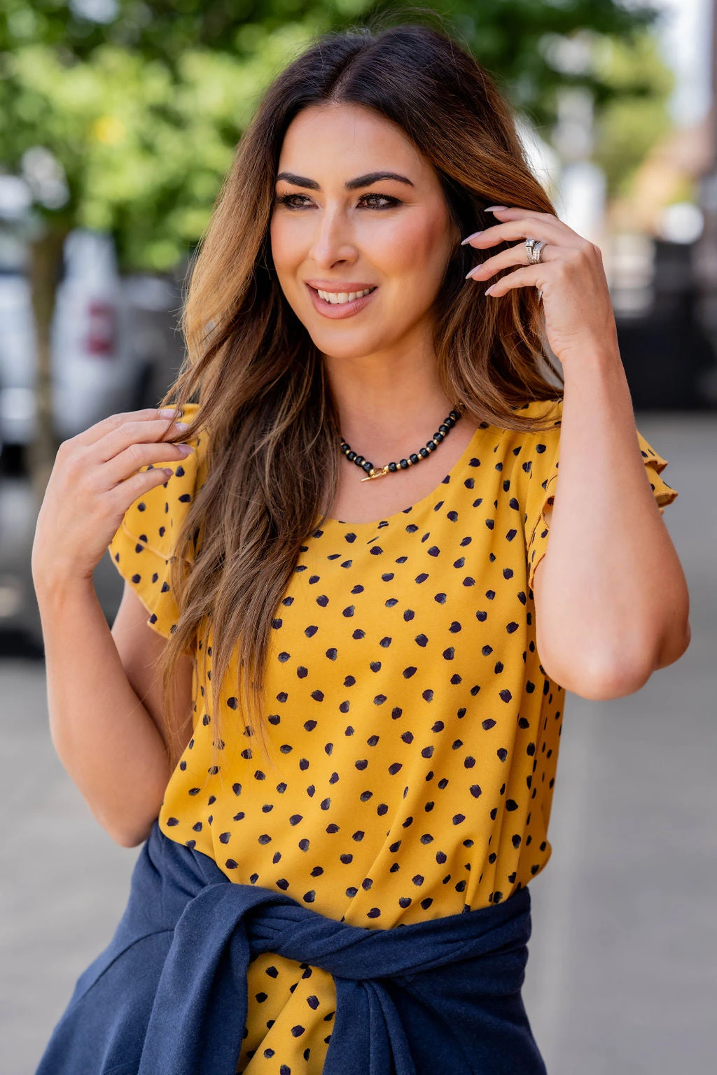 The double flutter sleeves and fun print on this blouse set it apart from the rest! The lightweight and breathable material makes this ideal for any season! Pair with your favorite denim, a bold-colored pair of our Betsey’s Jeggings, or even just some leggings for a unique look! Chilly? Add a blazer, cardigan, or vest for the cooler months!