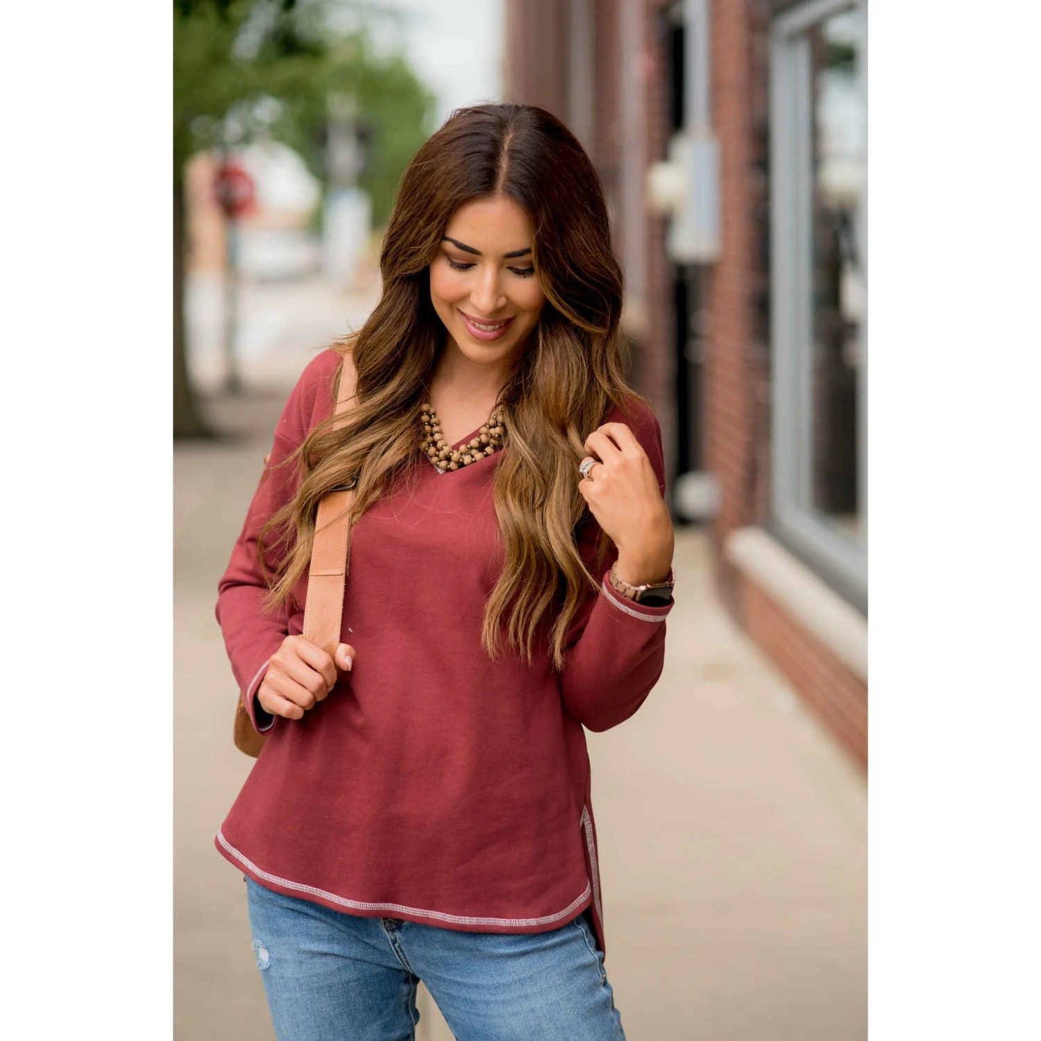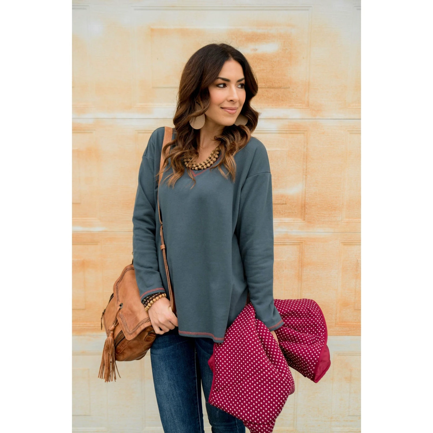This Stitched Accent Sweatshirt comes in several fabulous colors – you are going to want them all! This loose-fitting sweatshirt will be your go to top for those cold days when you just want to warm up by an open fire. Pair this with leggings and one of Betsey’s Sherpa Vests for an amazing look!
