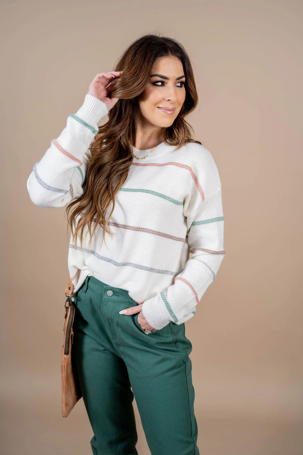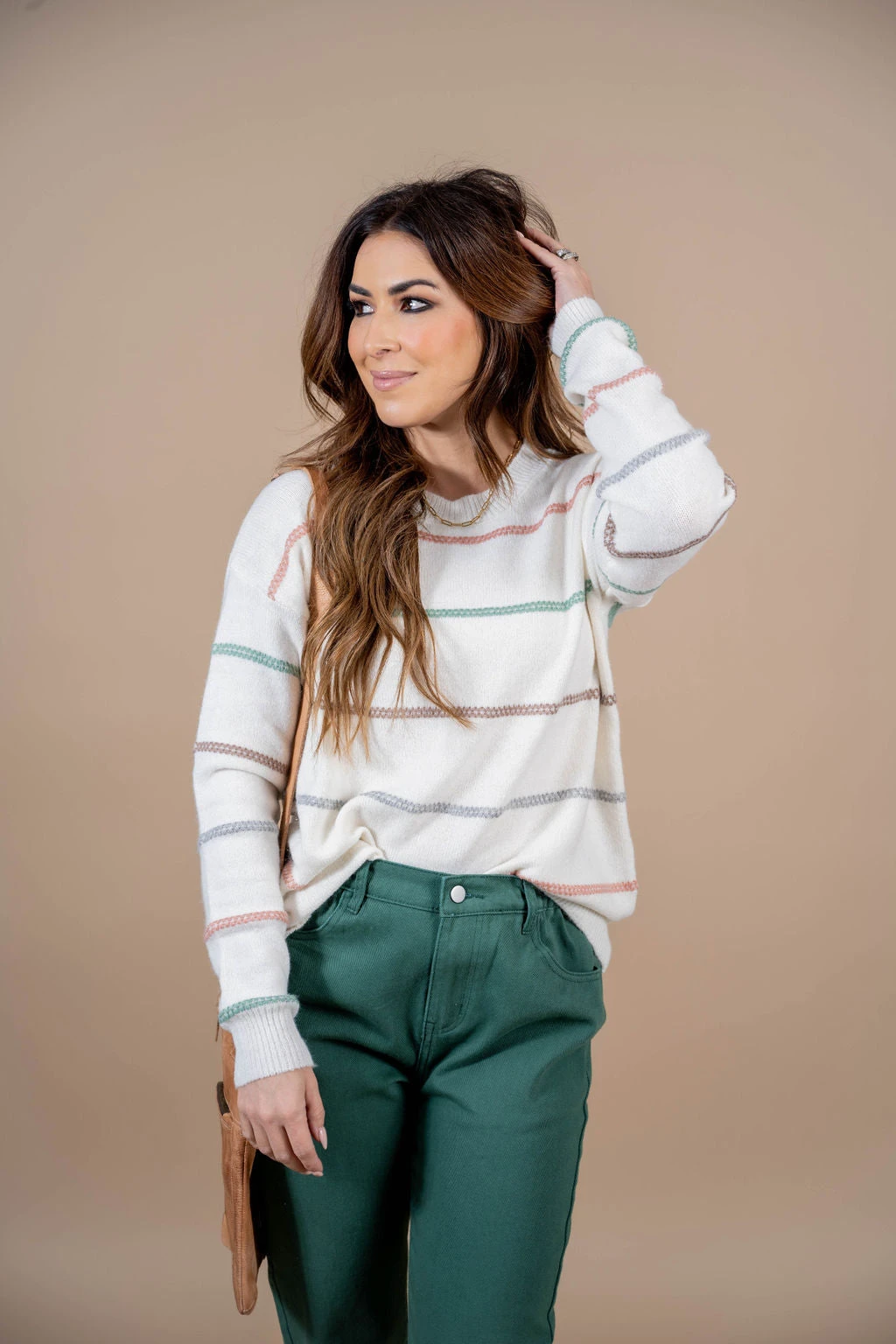Is it even possible to have too many sweaters?! We don’t think so either! This sweater is so incredibly soft and has the perfect mixture of stripes and colors that come together to create this staple piece that you NEED in your wardrobe! Dress this up or down with ease, add a pop of color with our Betsey’s Jeggings or keep it simple with your favorite denim, however you choose to style it, we know this will be one of your favorites!