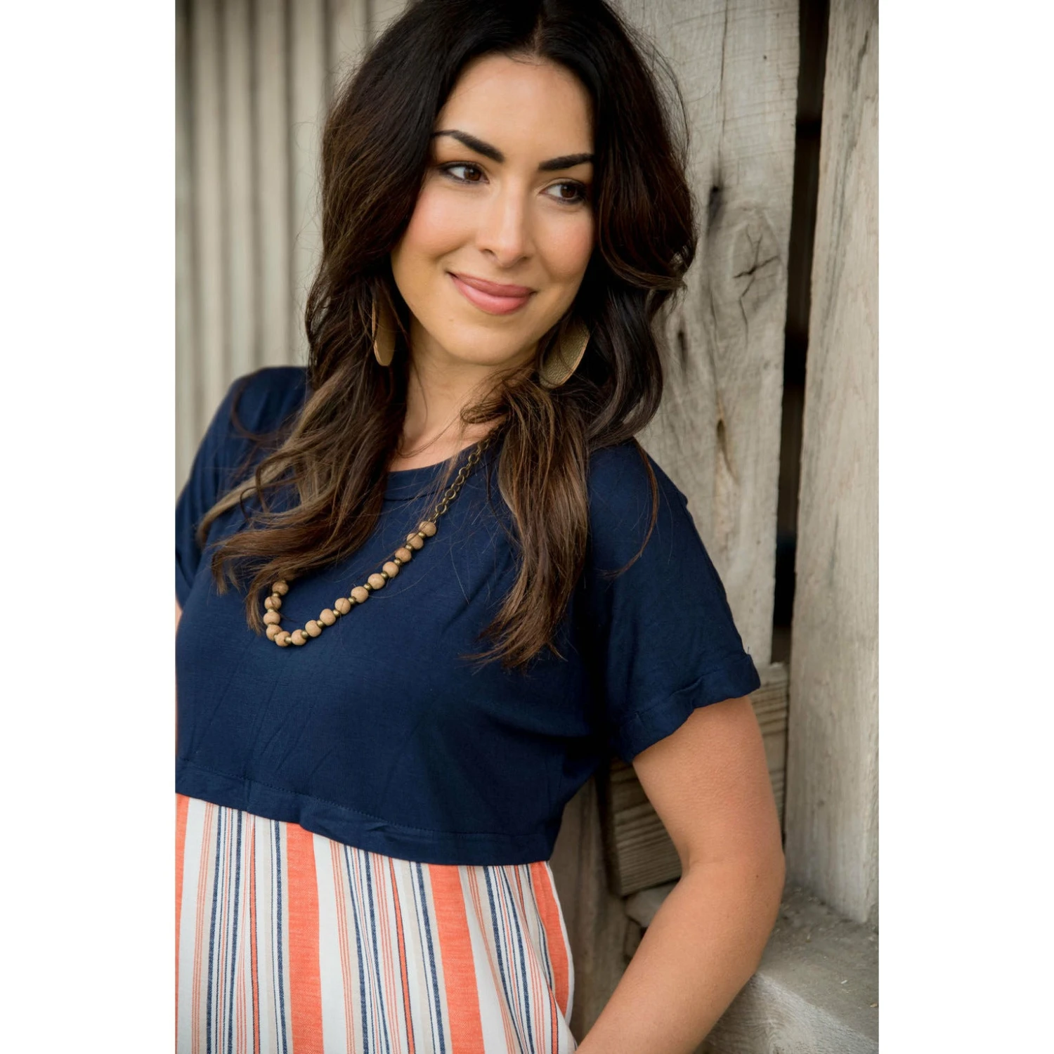 Looking for a unique tee that you can wear for work or play. We have it here in our striped bottom tee.