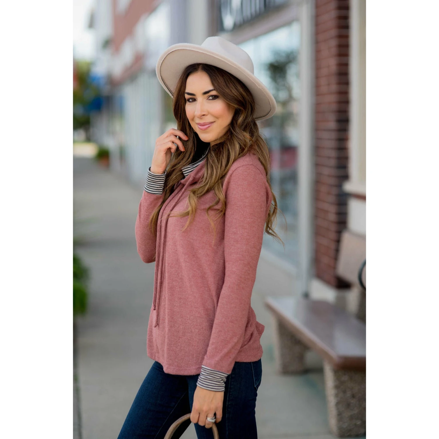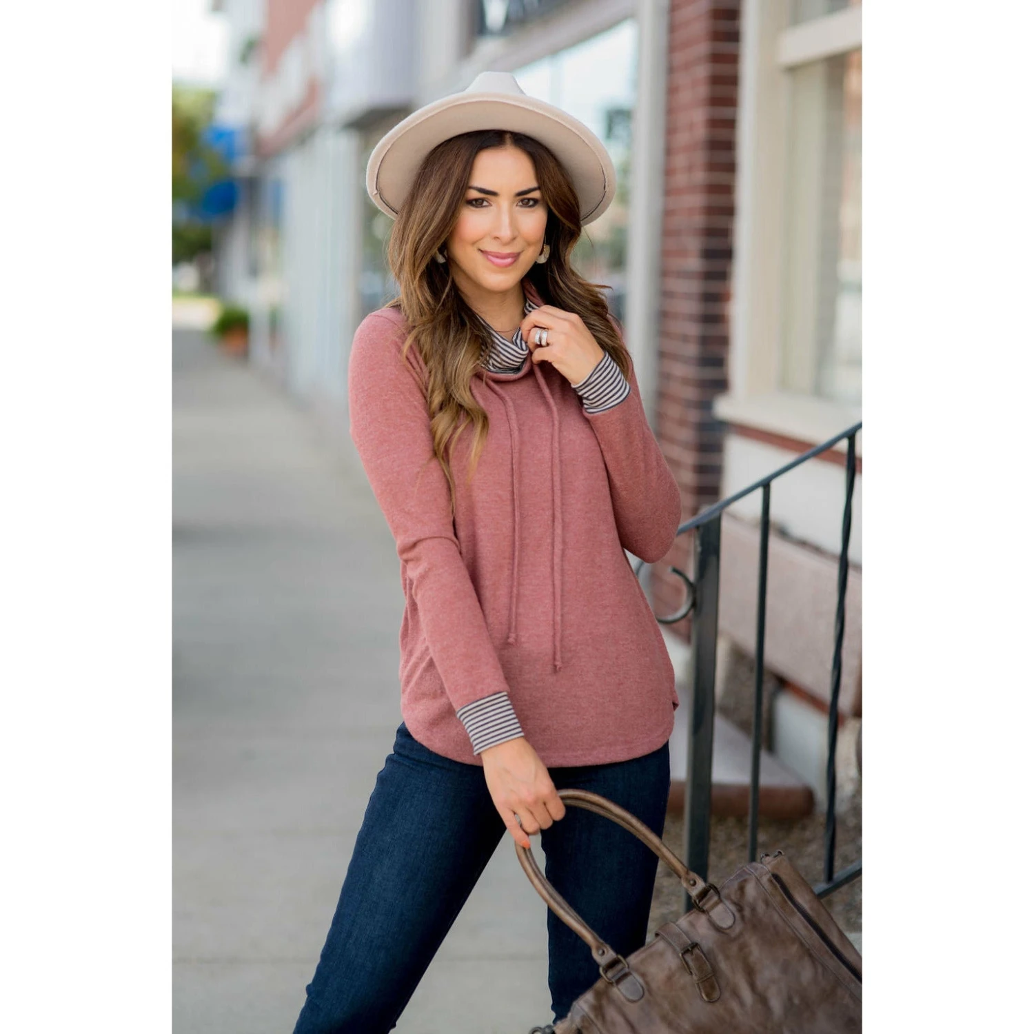 A cowl neck is a super comfy way to lounge around or around town to the shops! This is a super cute one that you will absolutely love! Wear it with jeans or jeggings!