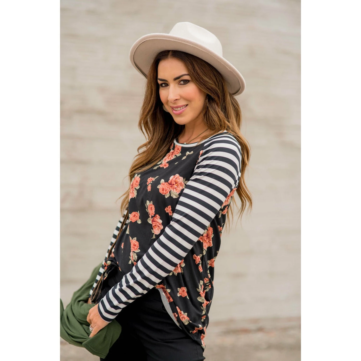 We are loving this tee! The stripes and floral matched together make for such a fun unique look!