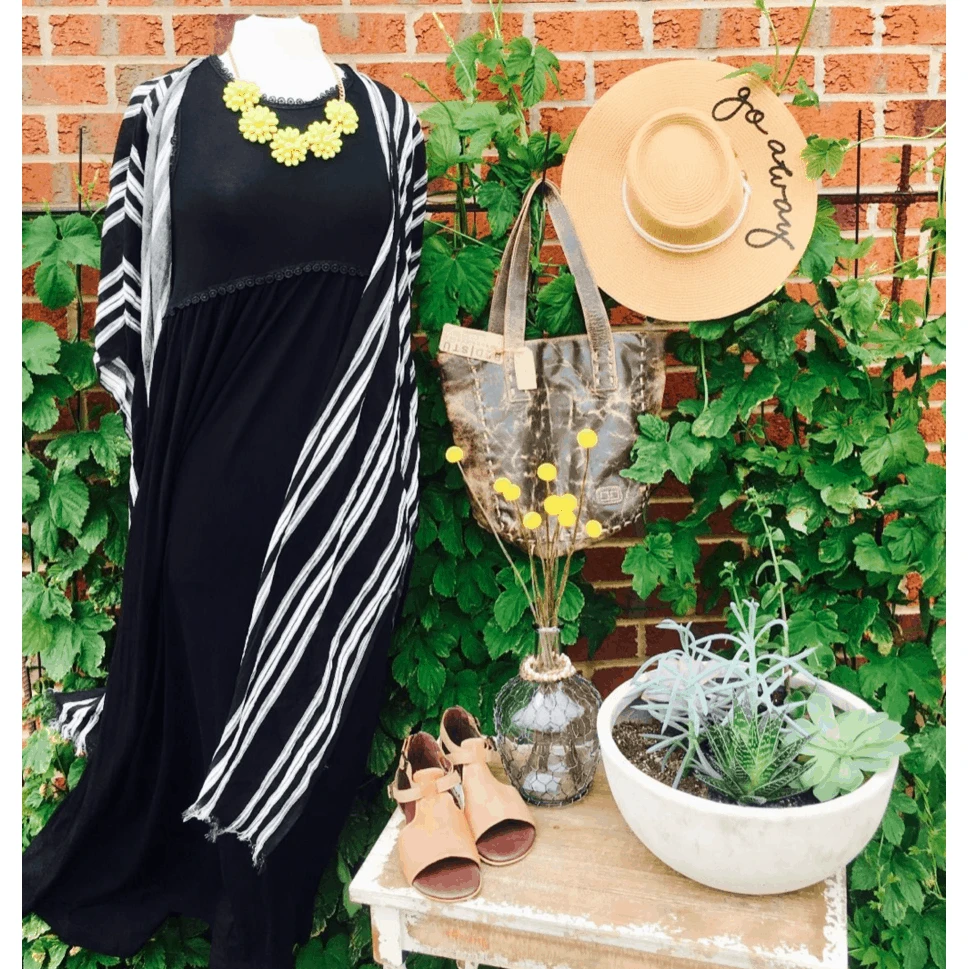 Love everything about the look of this vertical striped kimono! just add color or keep it with black for a gorgeous layer.