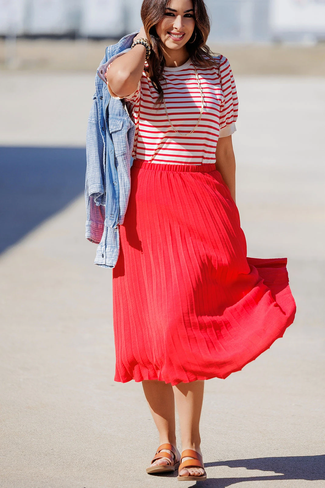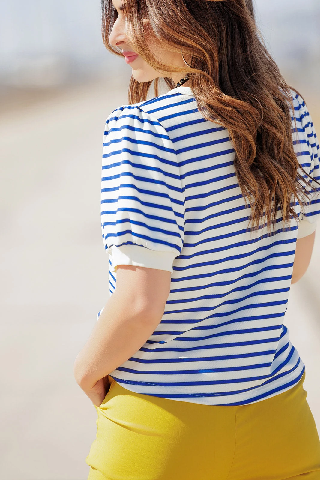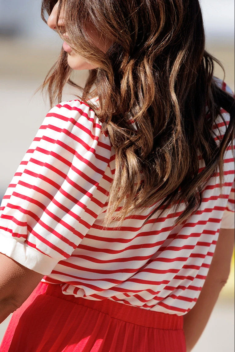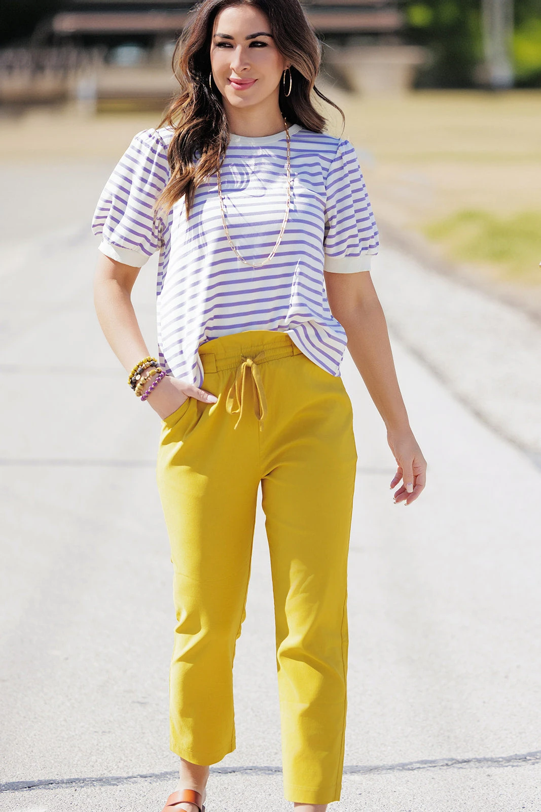 How cute is this tee?! We’re loving the puffed sleeves and the classic stripes! Pair with a bold-colored Betsey’s Jegging and a statement necklace for the office or the classroom, or with your favorite denim for a cute on-the-go look! Chilly? Add a cardigan, blazer, or jacket!Â