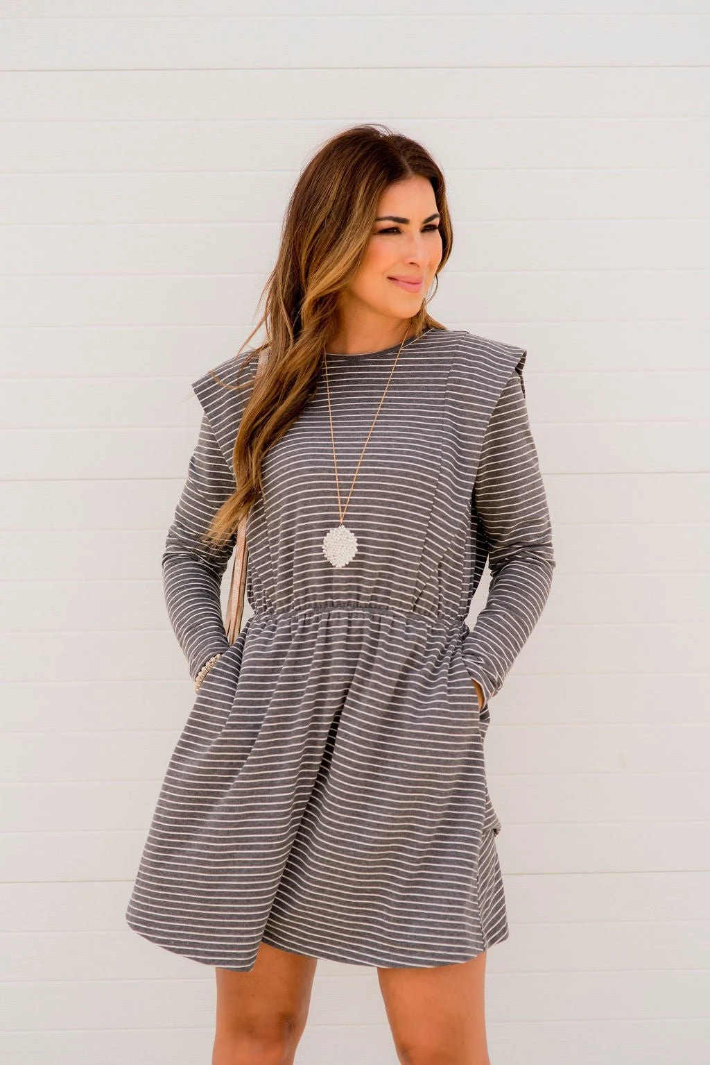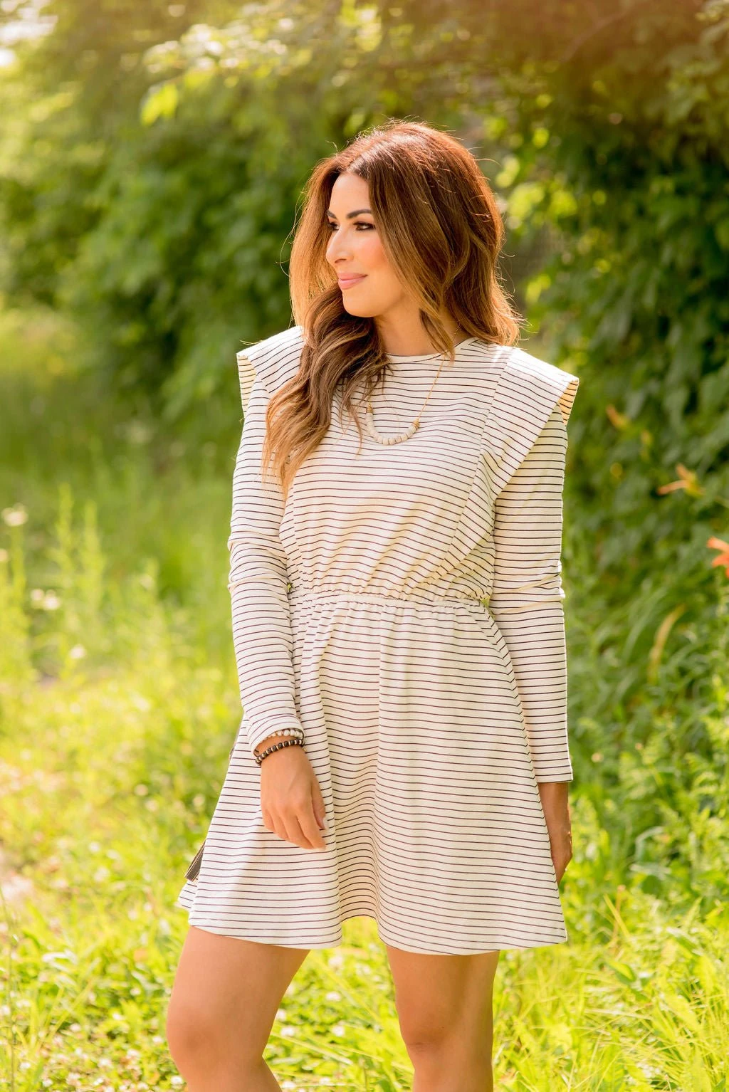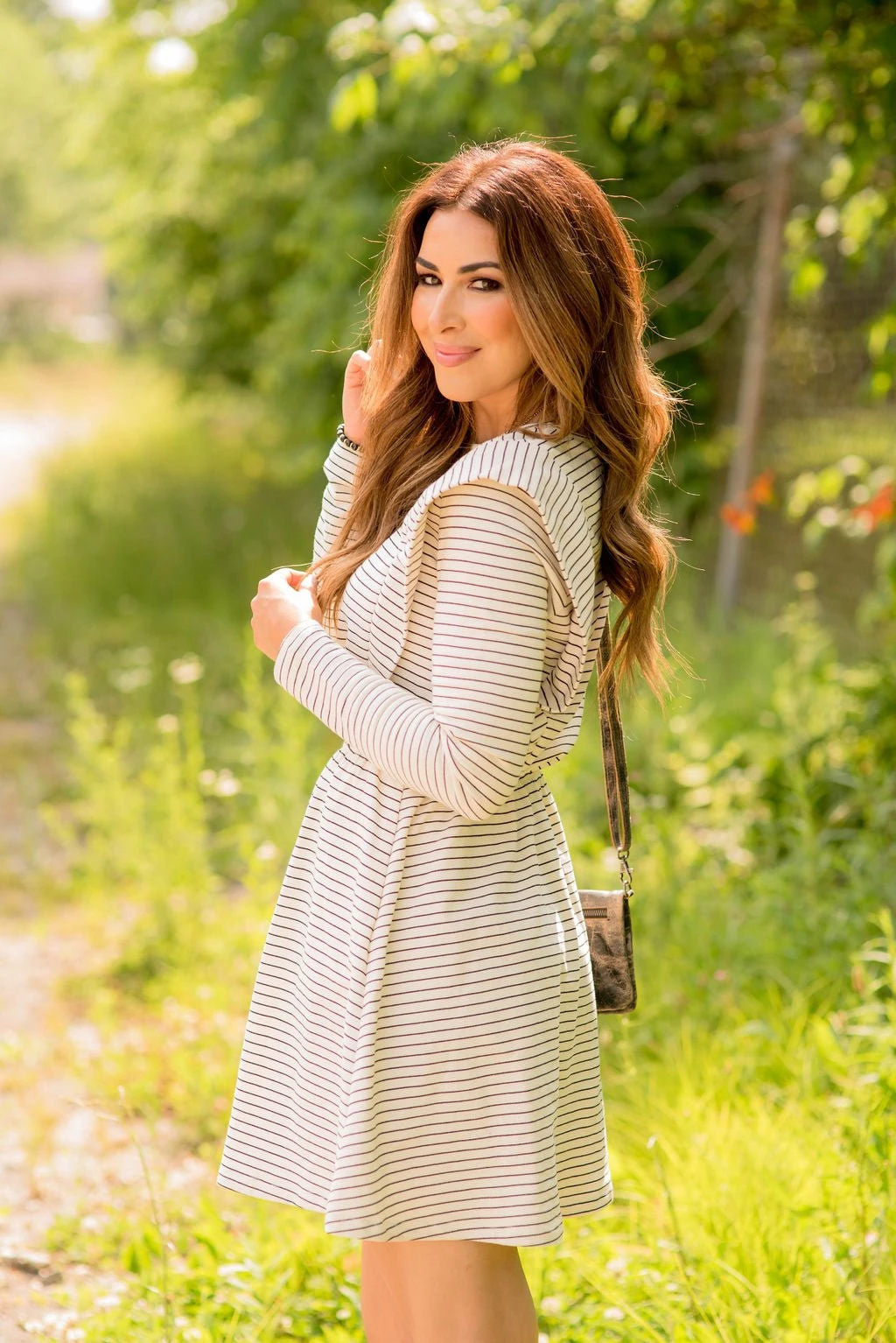Stripes are always in style! This dress features stripes, a ruffle accent, and long sleeves! This can easily transition you through seasons and can be dressed up or down to match your style!