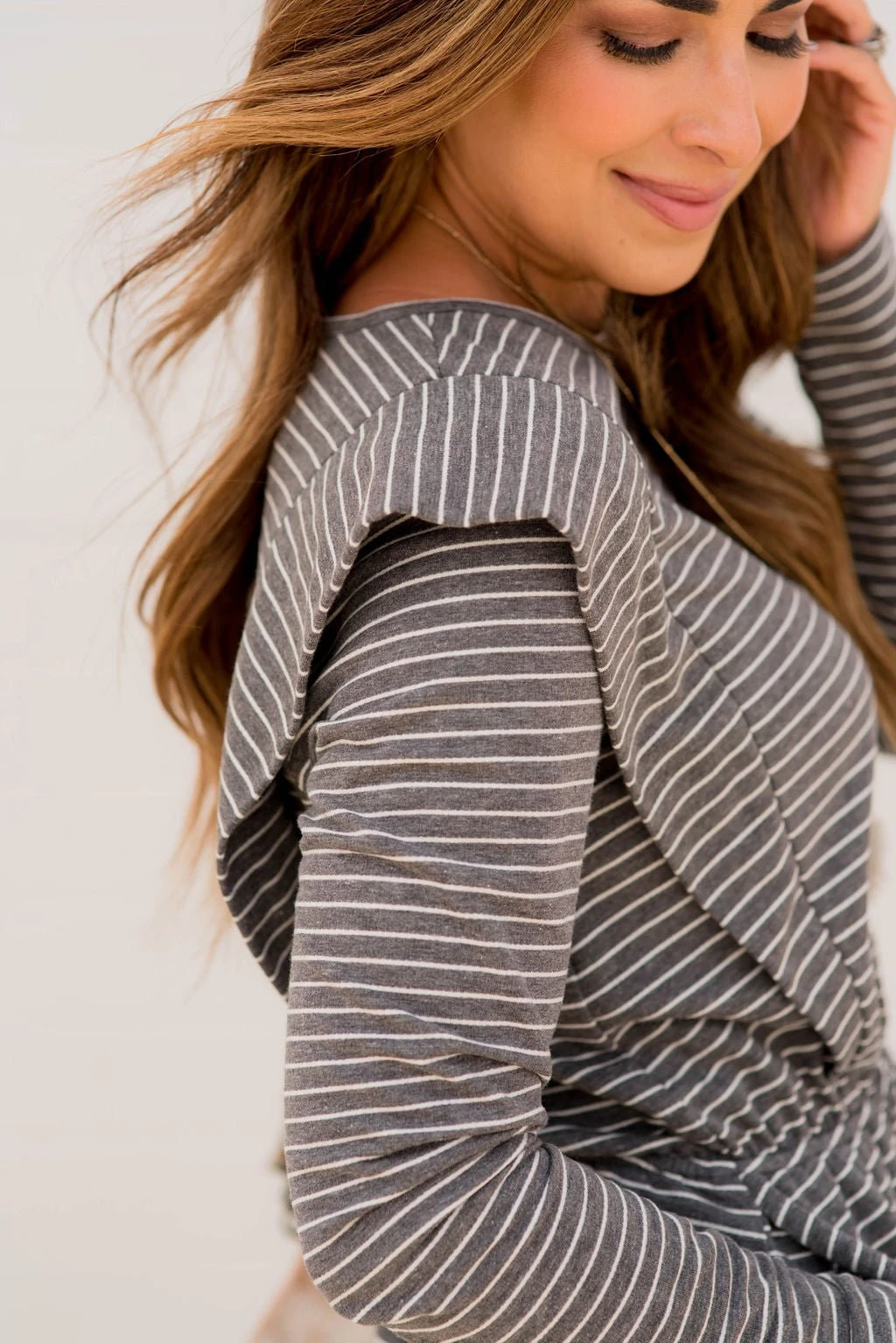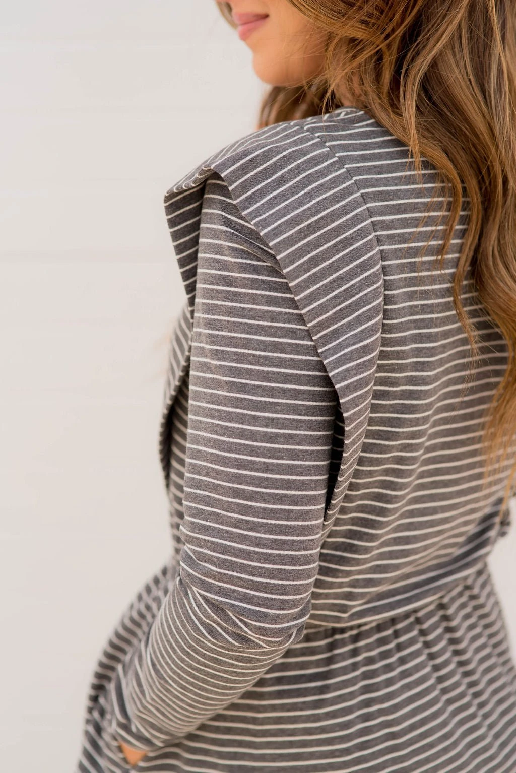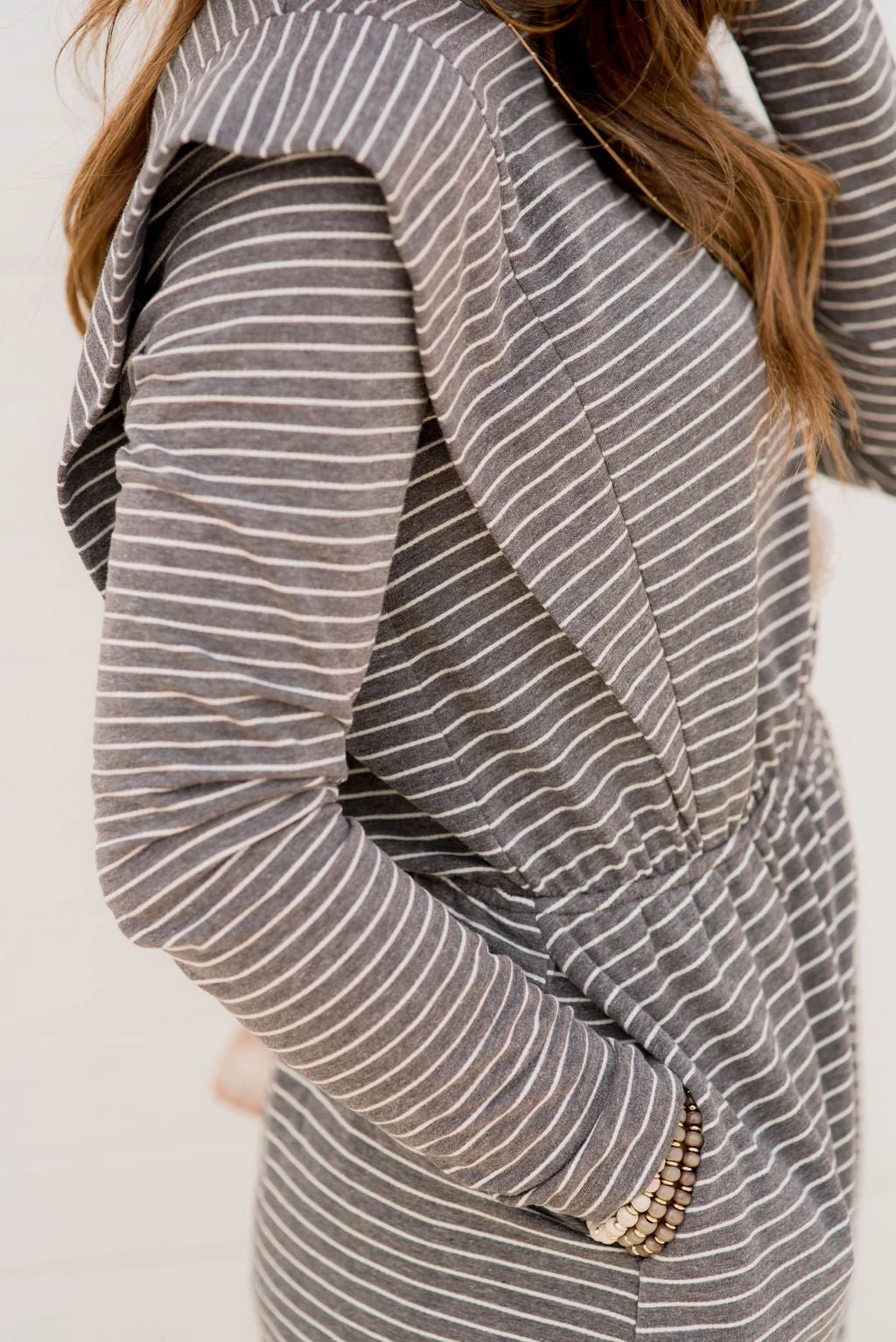 Stripes are always in style! This dress features stripes, a ruffle accent, and long sleeves! This can easily transition you through seasons and can be dressed up or down to match your style!