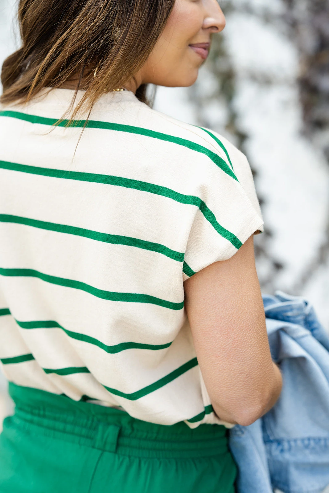 A simple soft tee with classic stripes to give it a chic vibe! The knit feel can be either dressed up or down to match your style! We love that this can be worn with shorts for the warmer months or denim, joggers, or our Betsey’s Jeggings for the cooler ones. Chilly? Add a blazer, cardigan, or jacket with ease! Simply add your favorite accessories to elevate this piece.
