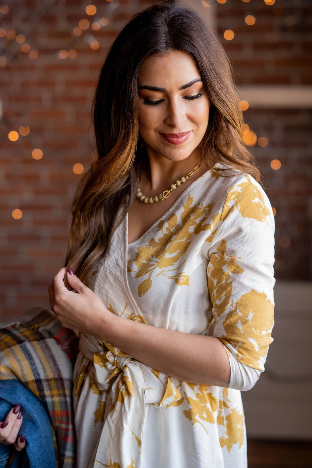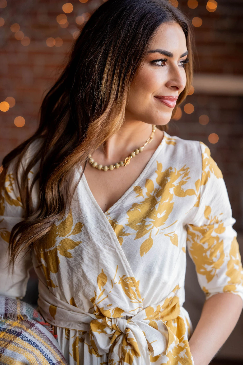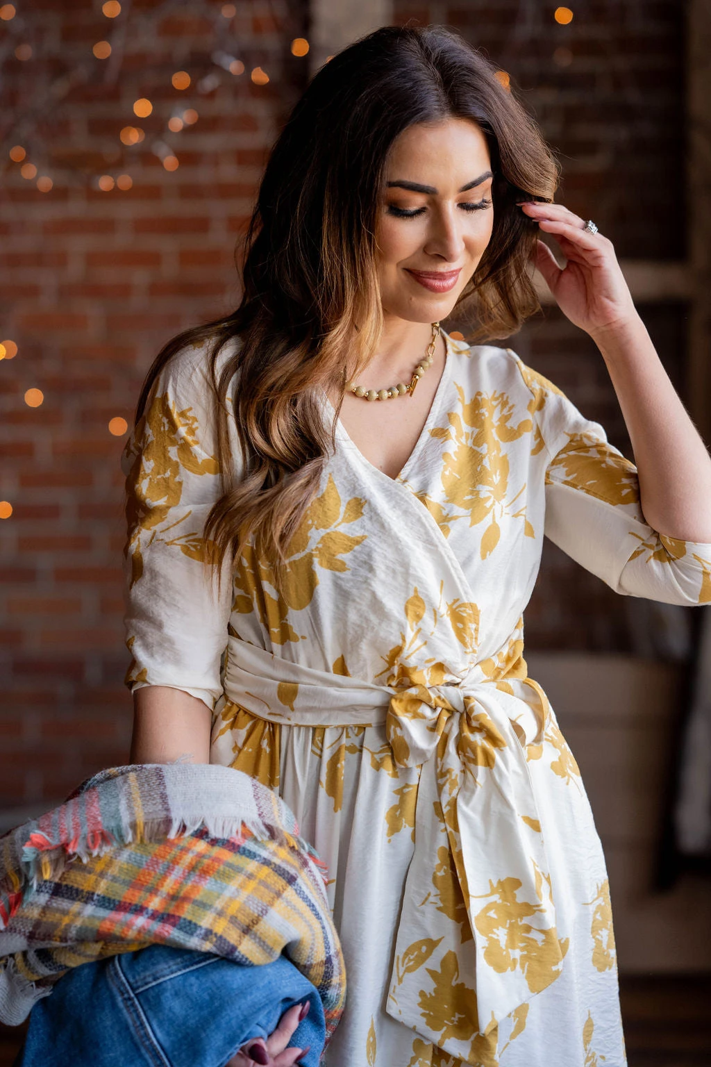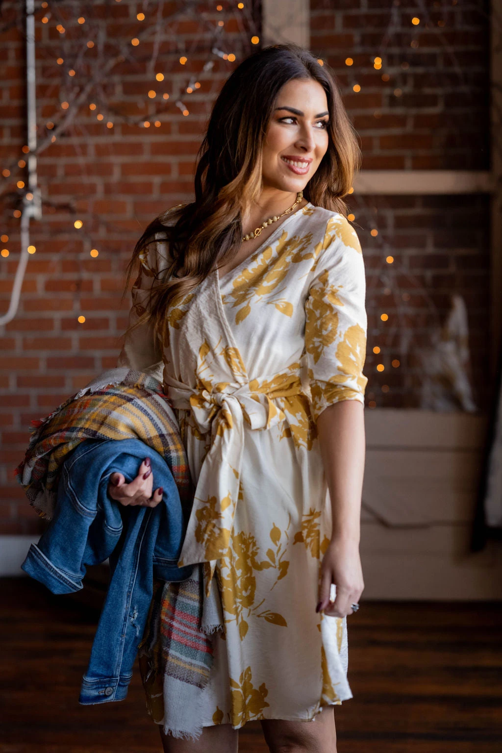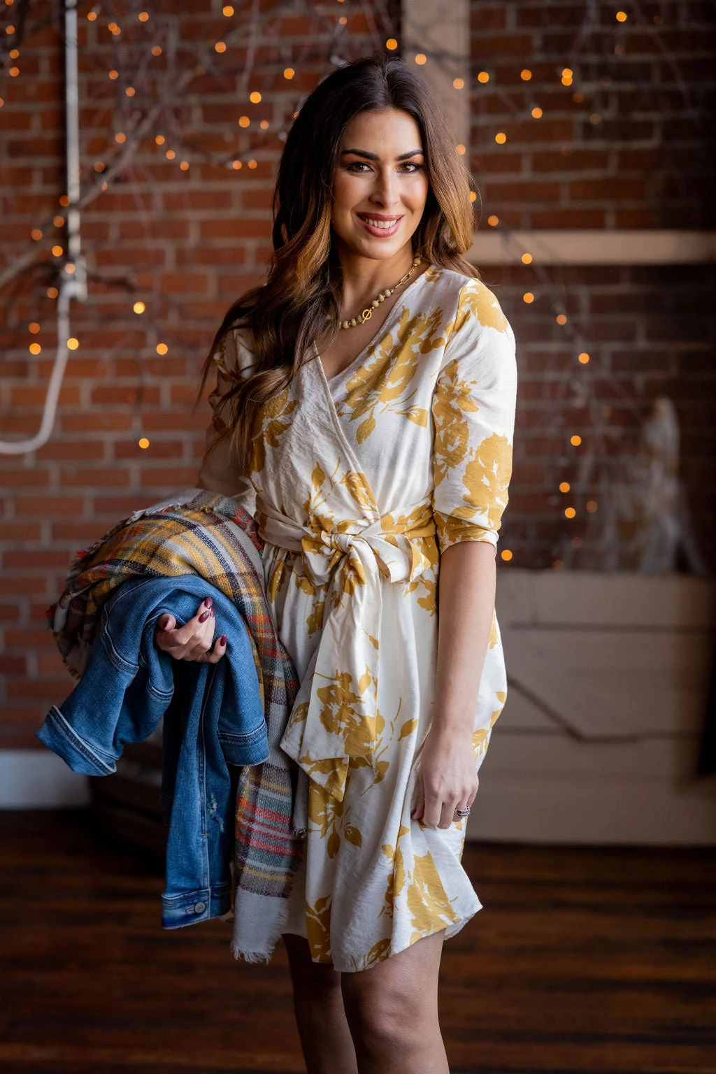 How cute is this dress?! The fun floral print pops with the faux wrap top and slimming tie waist! Wear this in the warmer months with sandals or in the cooler ones with boots! This can easily be layered with a blazer, cardigan, or jacket for extra warmth!