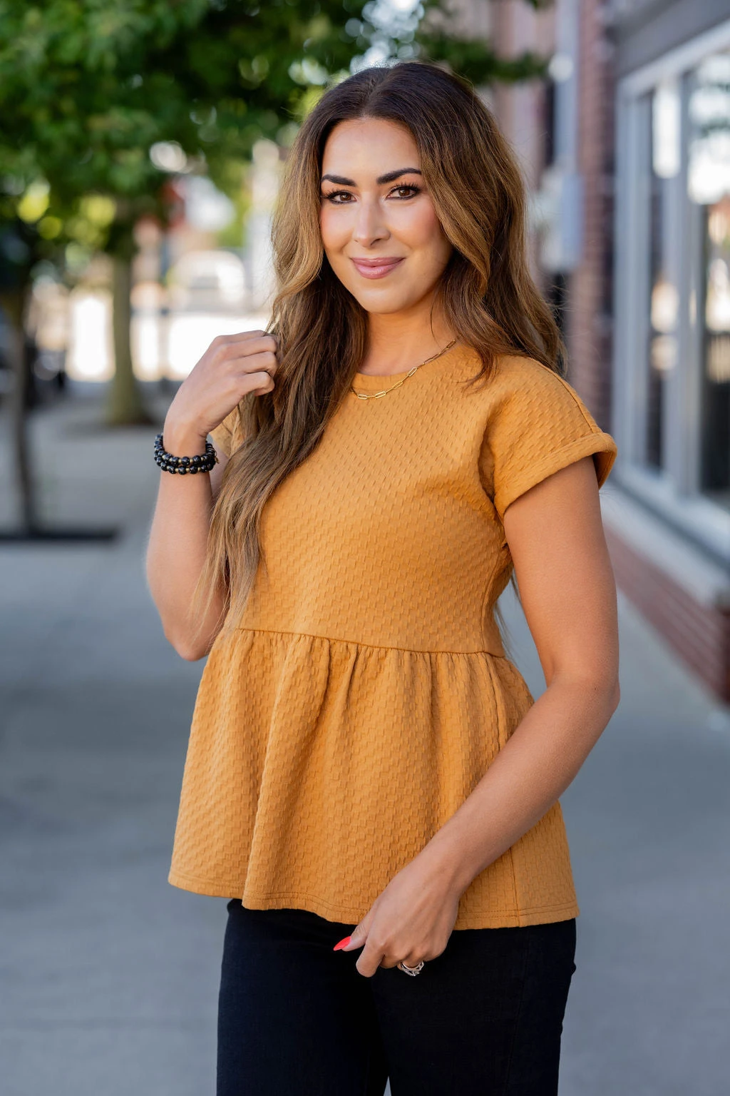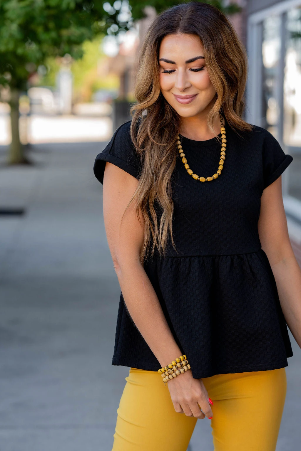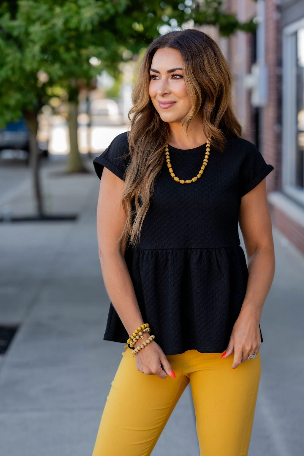 A tee that’s perfect for all body shapes and sizes! The peplum style fit looks great on everyone and the subtle checkered print gives this that little bit of extra pizzaz! Pair this with shorts in the warmer months or with denim, joggers, leggings, or our Betsey’s Jeggings in the cooler ones! Chilly? Layer this with a blazer, cardigan, or jacket with ease! This can be worn more casually for an everyday look or elevated with your favorite accessories for work, church, or date night!
