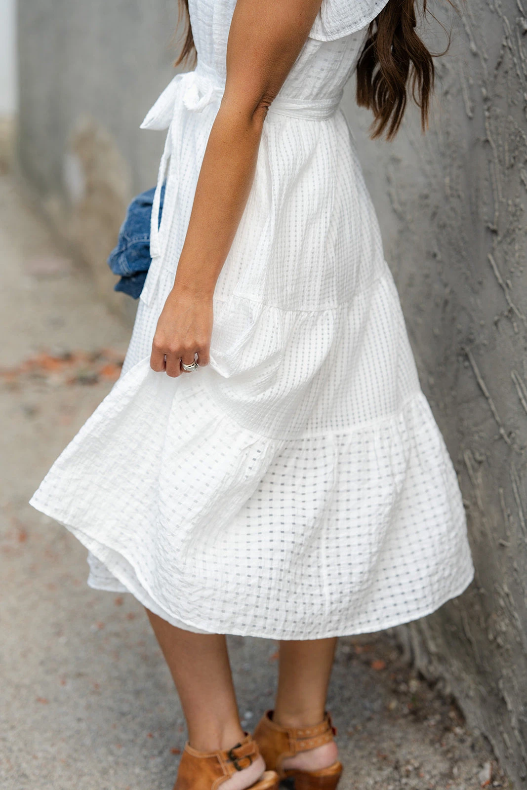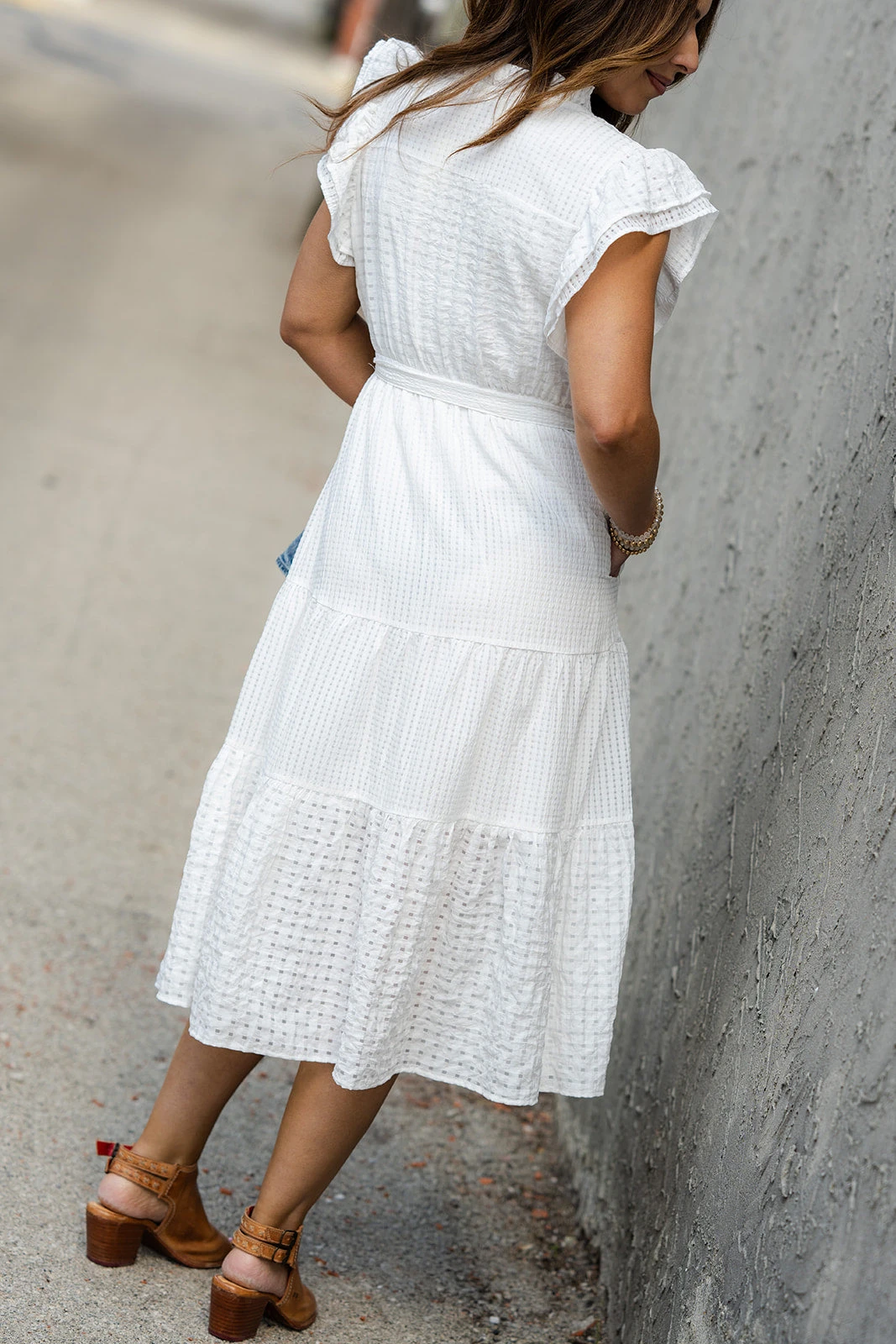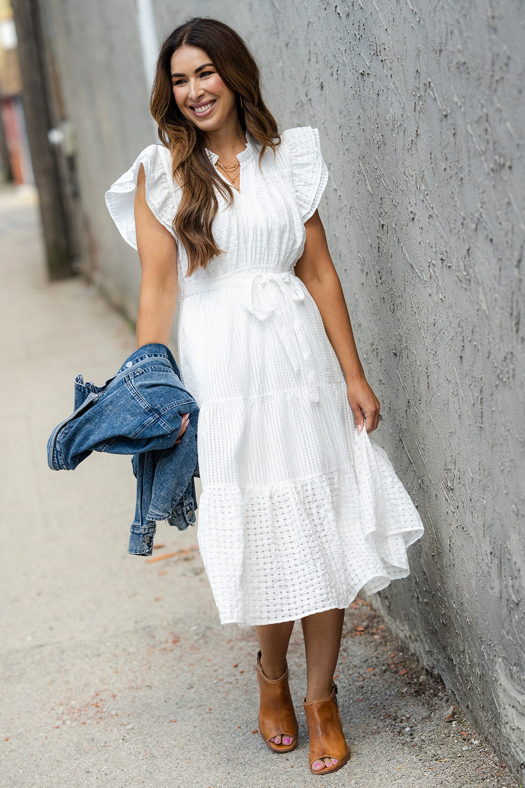 This is the perfect dress for any occasion. The midi length is appropriate for any event, and the lightweight material and flowy fit is great for any season. Wear on its own with the cute ruffle trim for the warmer months, or pair with a colored cardigan and a pair of booties for the cooler ones. We know how matter you wear this, you will make it fit your style!