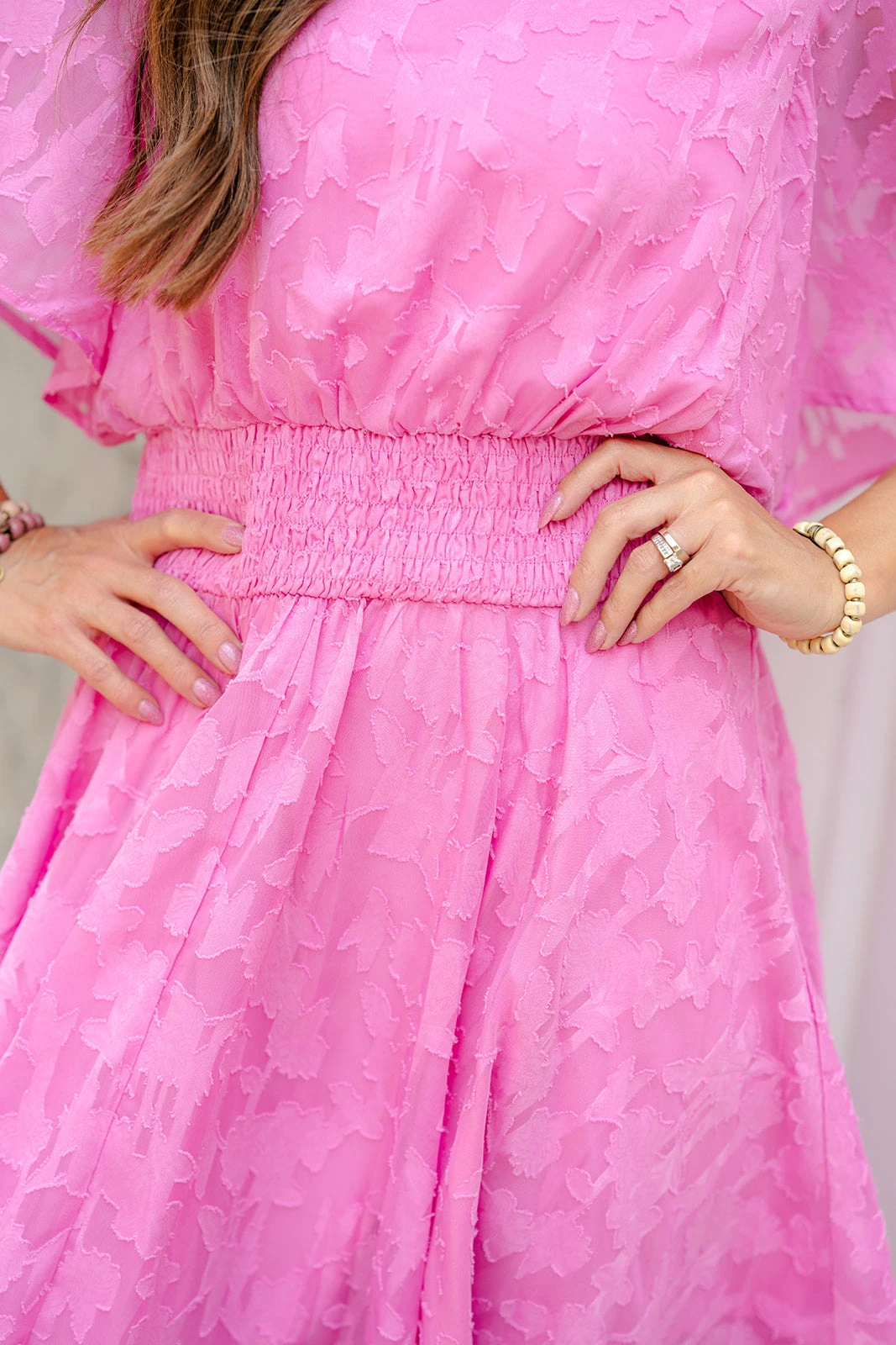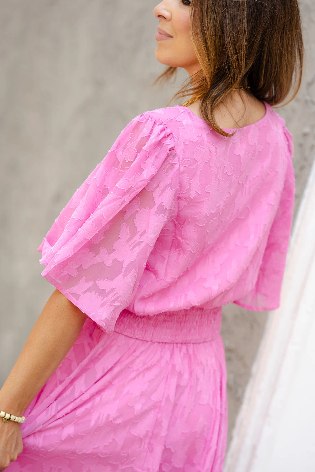 This is the perfect dress for any occasion. The midi length is appropriate for any event, and the lightweight material, side slit, and flowy fit is great for any season. Wear on its own with the cute fluttery sleeves for the warmer months, or pair with a colored cardigan and a pair of booties for the cooler ones. We know how matter you wear this, you will make it fit your style!