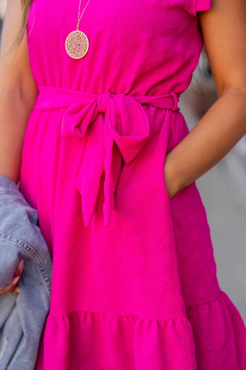 Basic but stunning and perfect for every event or occasion! The subtle plaid gives this a unique and chic feel. The flowy fit and tie waist make it flattering on any body shape or size! Wear it alone with a statement necklace for the summer, or pair with a denim jacket or cardigan and boots for the cooler months! We just know this one will become a staple piece in your wardrobe!