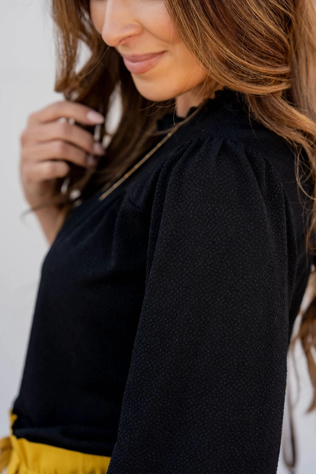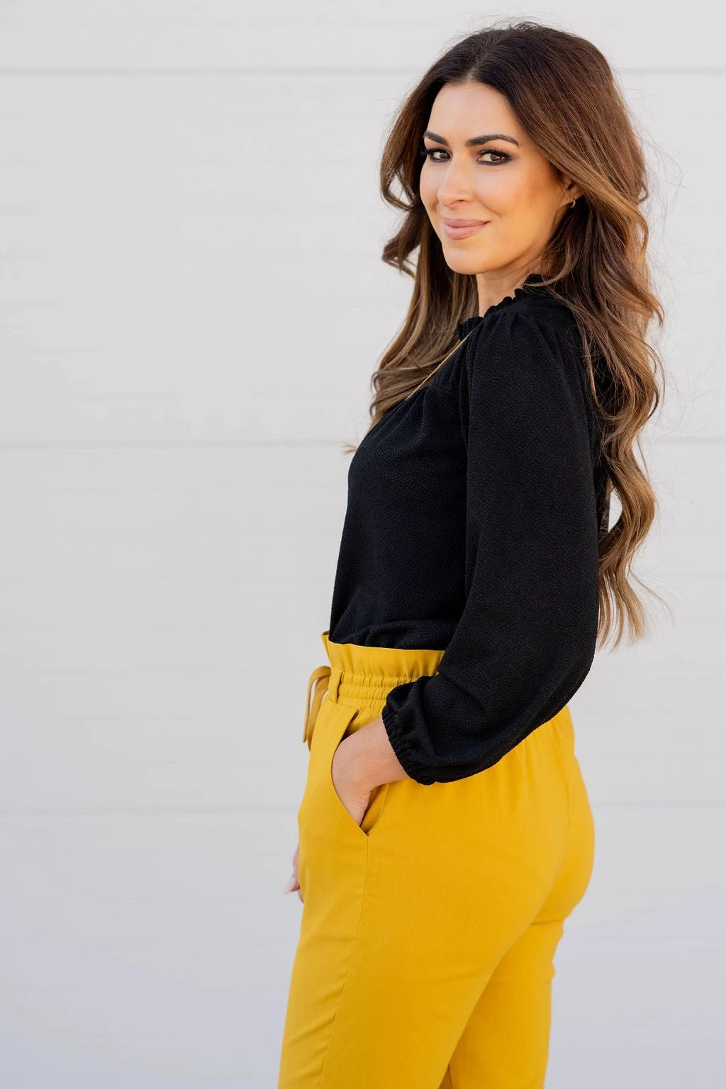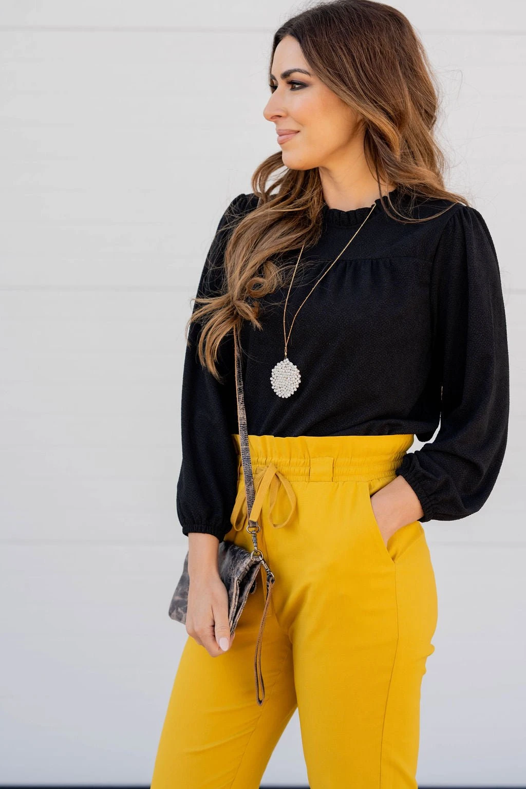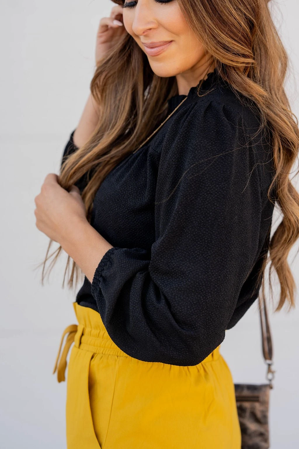 The subtle texture and cinched trim elevate this blouse! The lightweight and soft material allows you to wear this year-round. Dress this up or down for wherever the day takes you!