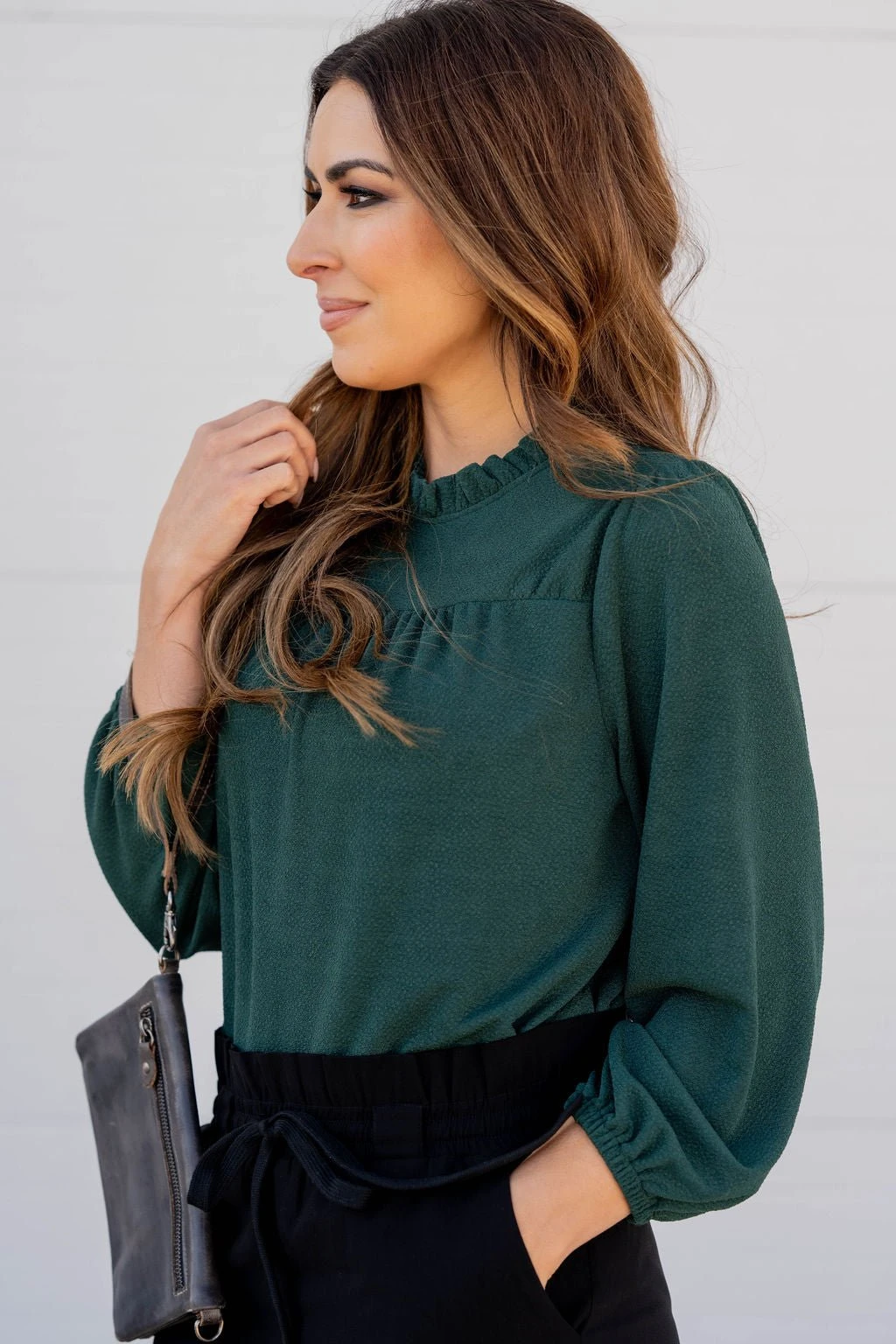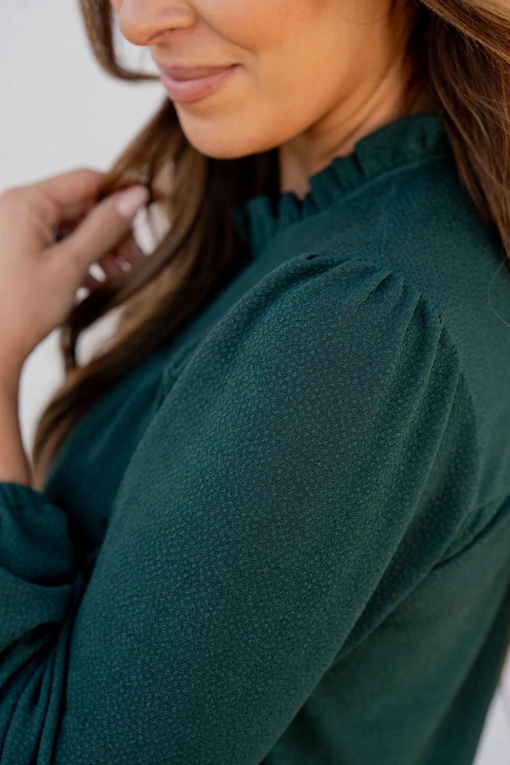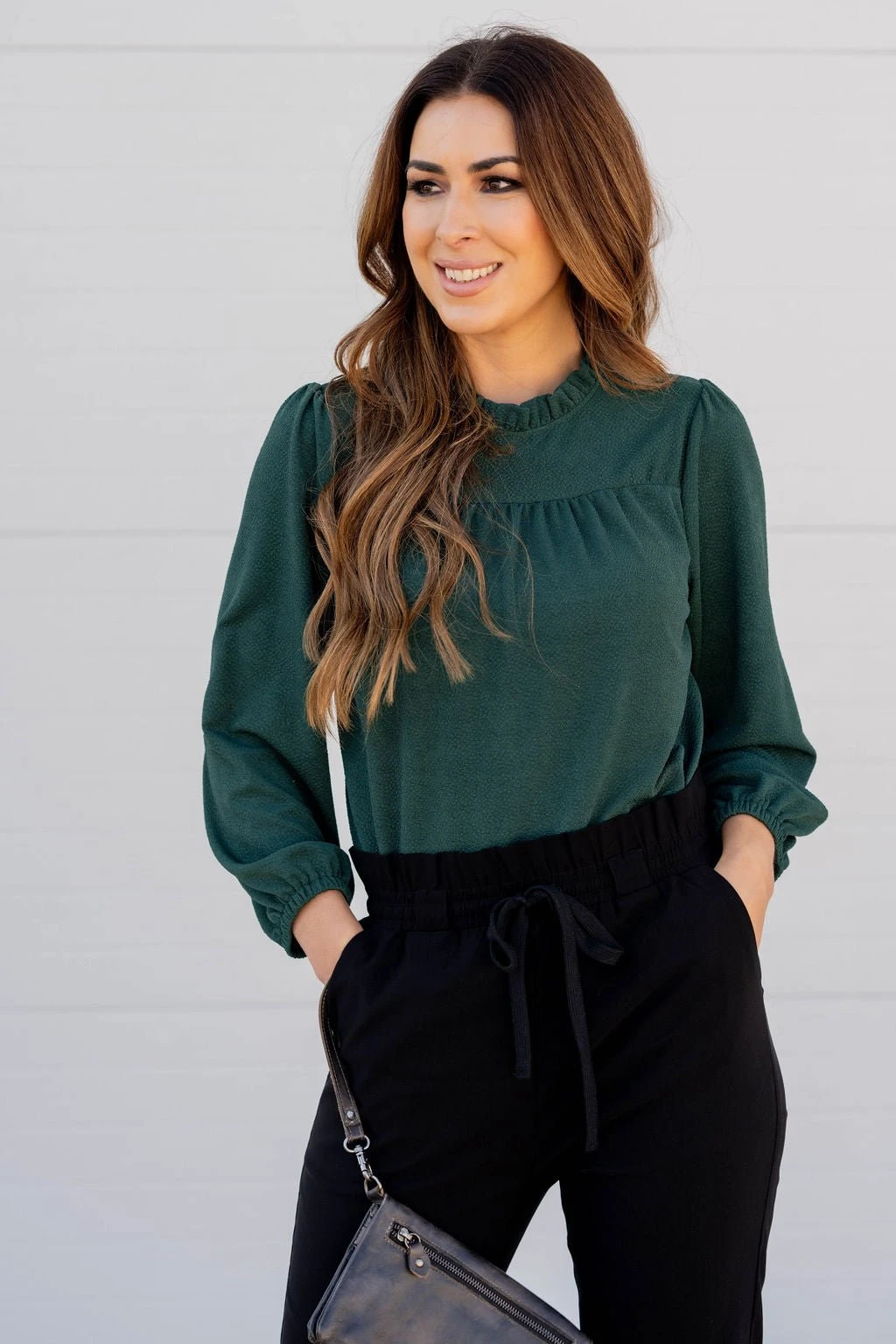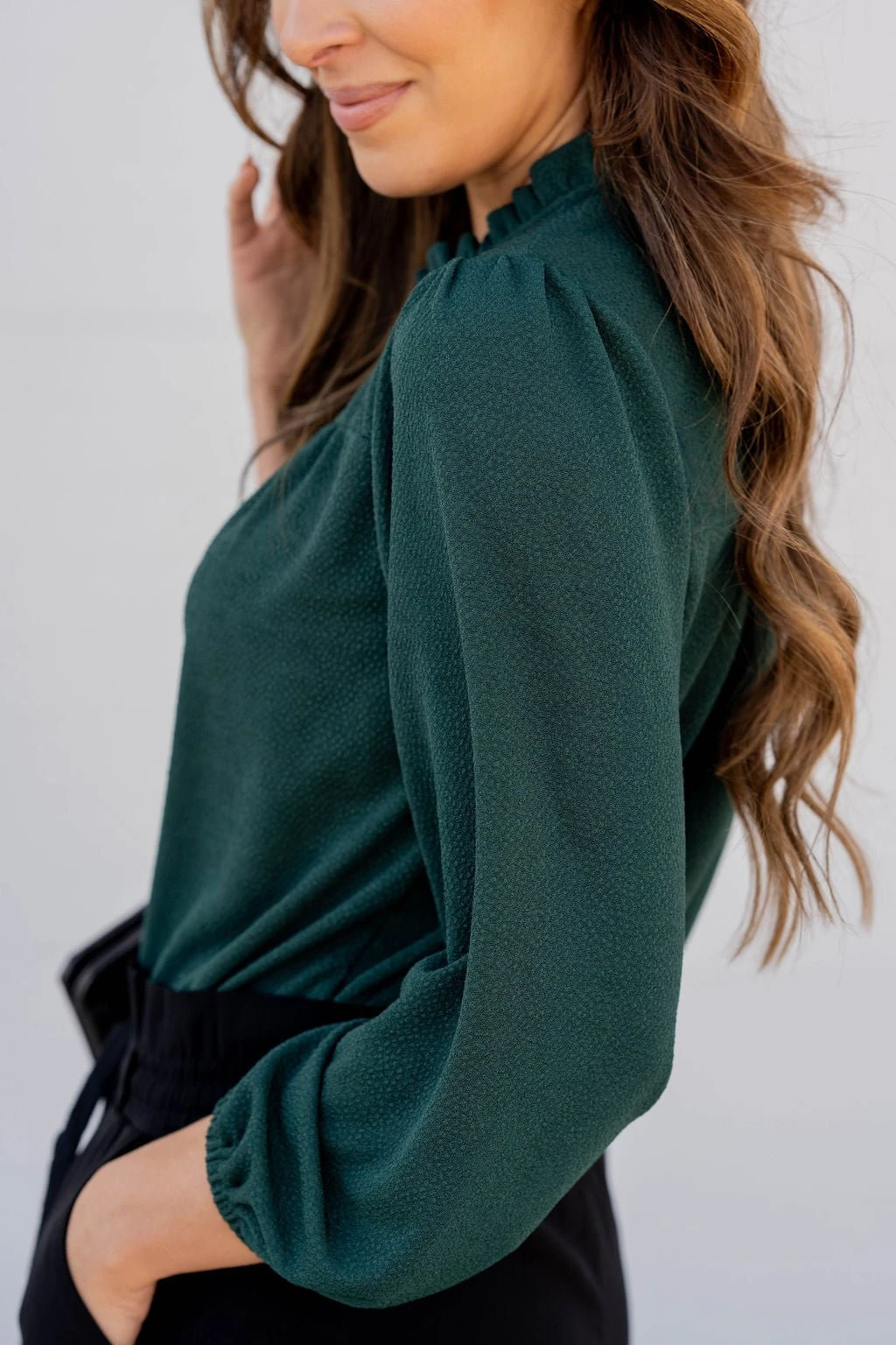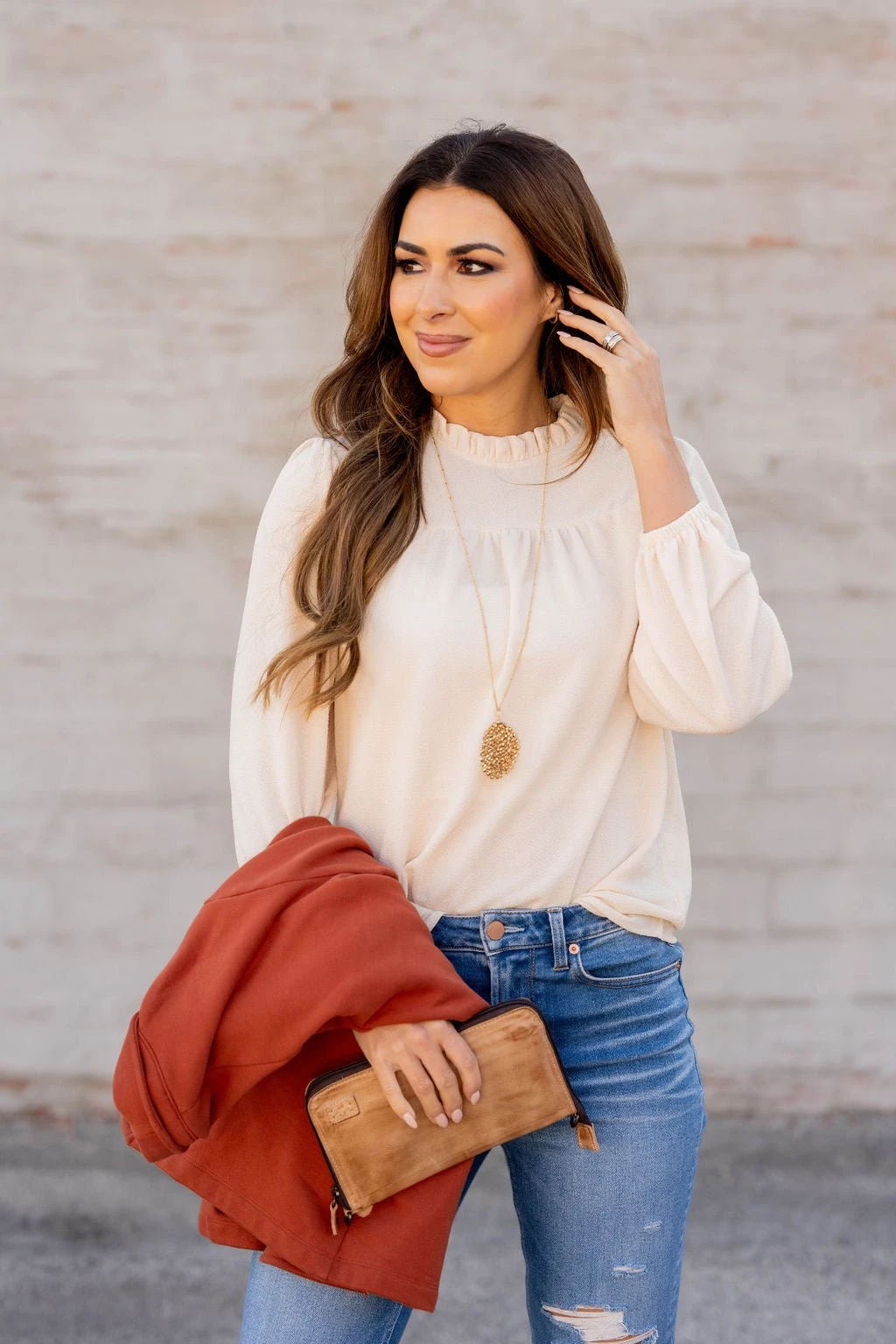 The subtle texture and cinched trim elevate this blouse! The lightweight and soft material allows you to wear this year-round. Dress this up or down for wherever the day takes you!