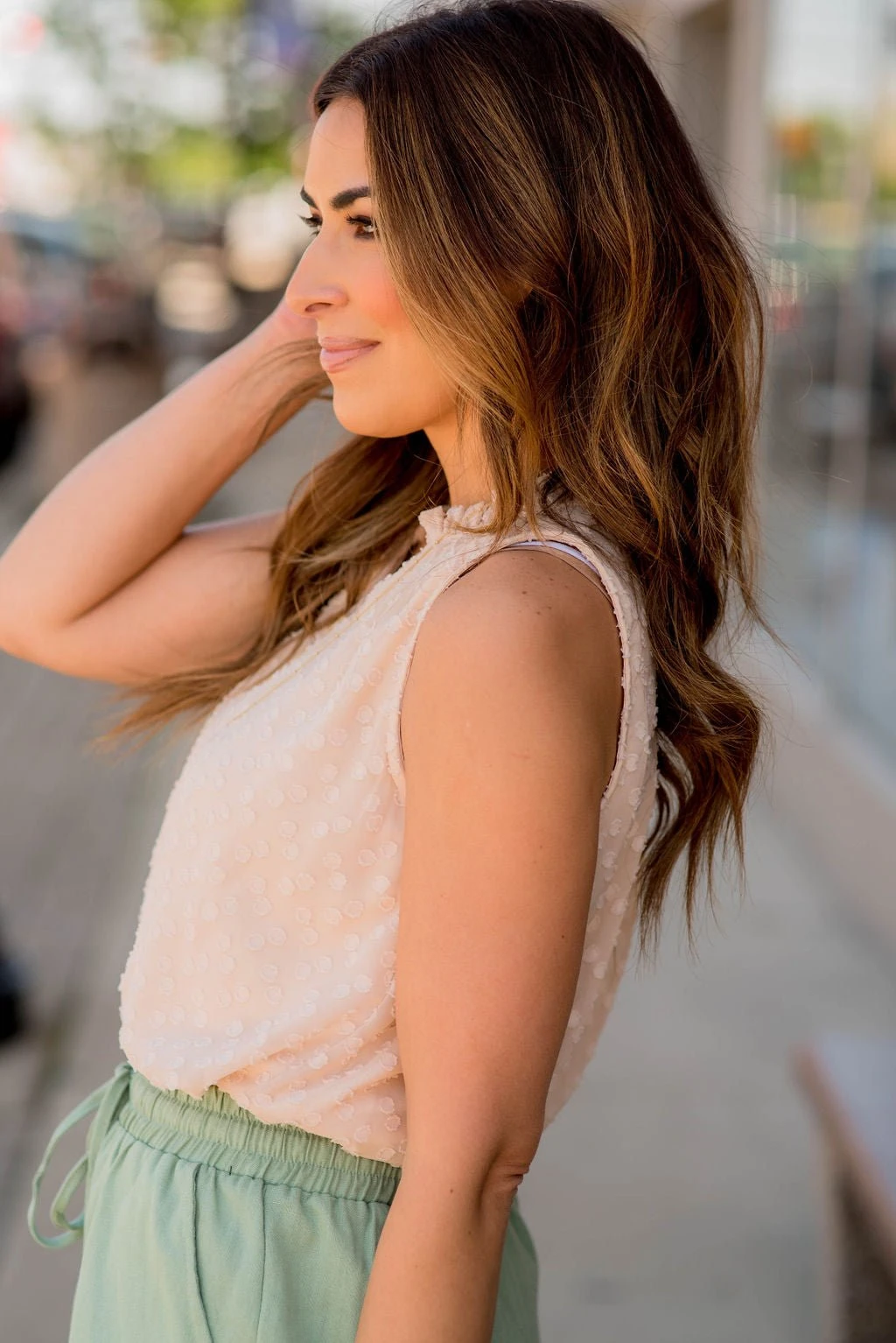 A little texture takes this tank to the next level and we’re loving the ruffle trimmed v-neck style! This tank is lightweight and breathable making it ideal for those hot summer days but can just as easily be layered for any other season! We love how it can be dressed up or down for wherever the day takes you!