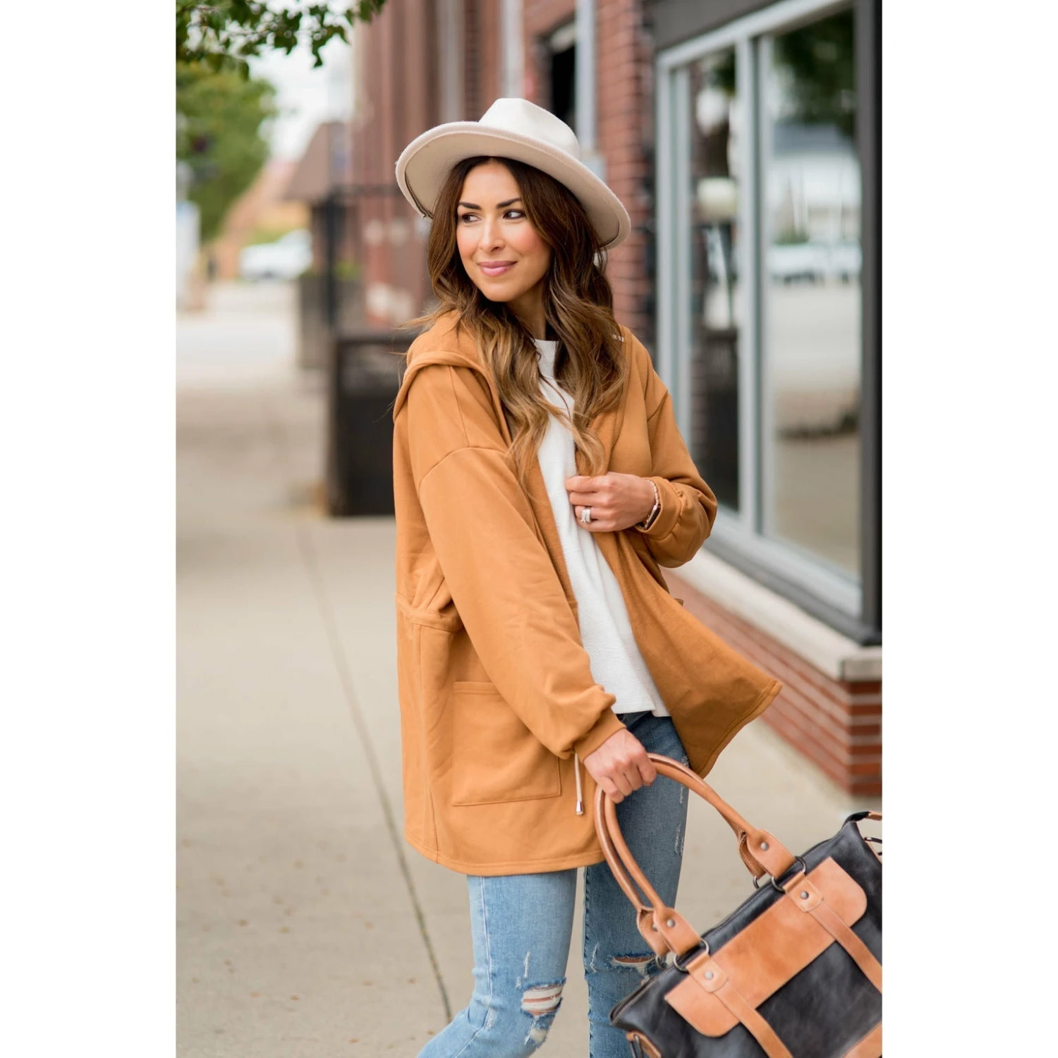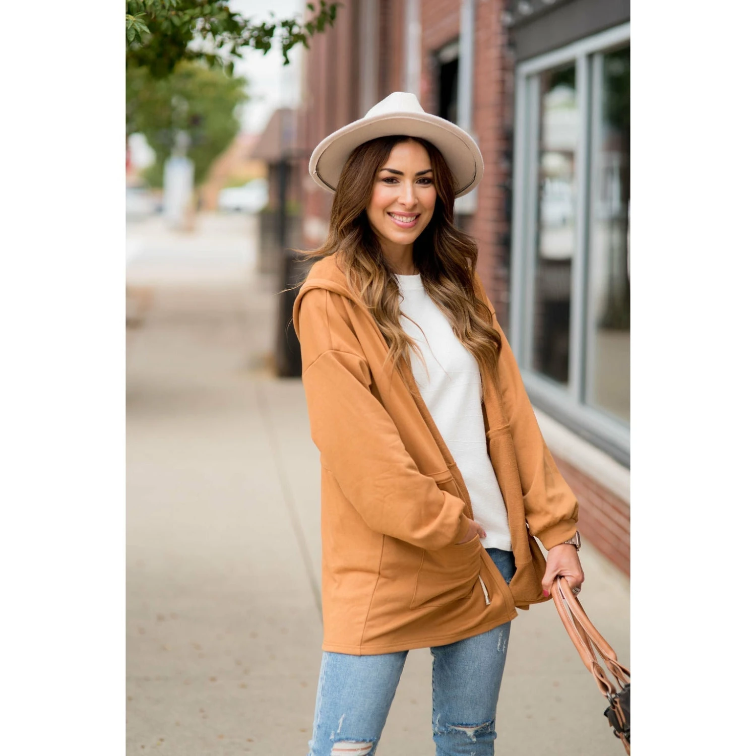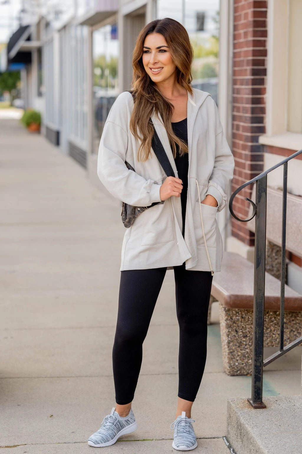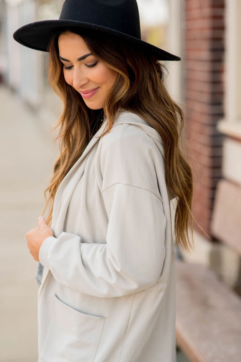 Need that extra comfy jacket that looks cute over everything? Here is one for you! Our Sweatshirt Hooded Open Tie Jacket is a great piece to wear over a sweater or basic tee! The possibilities really are endless with this one!