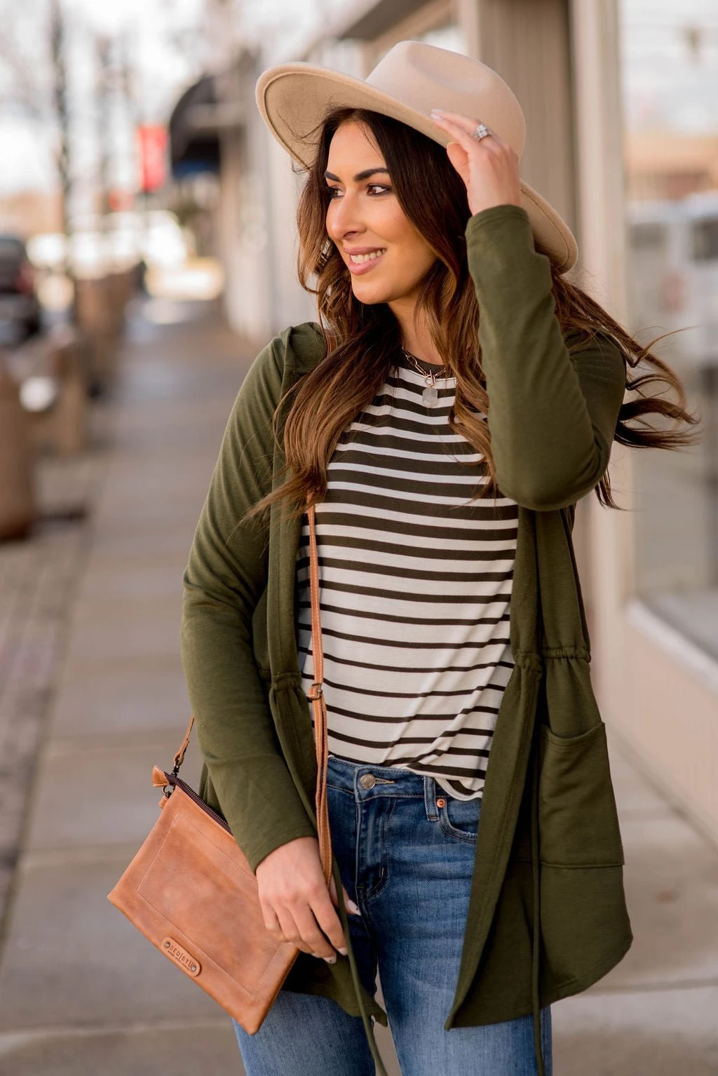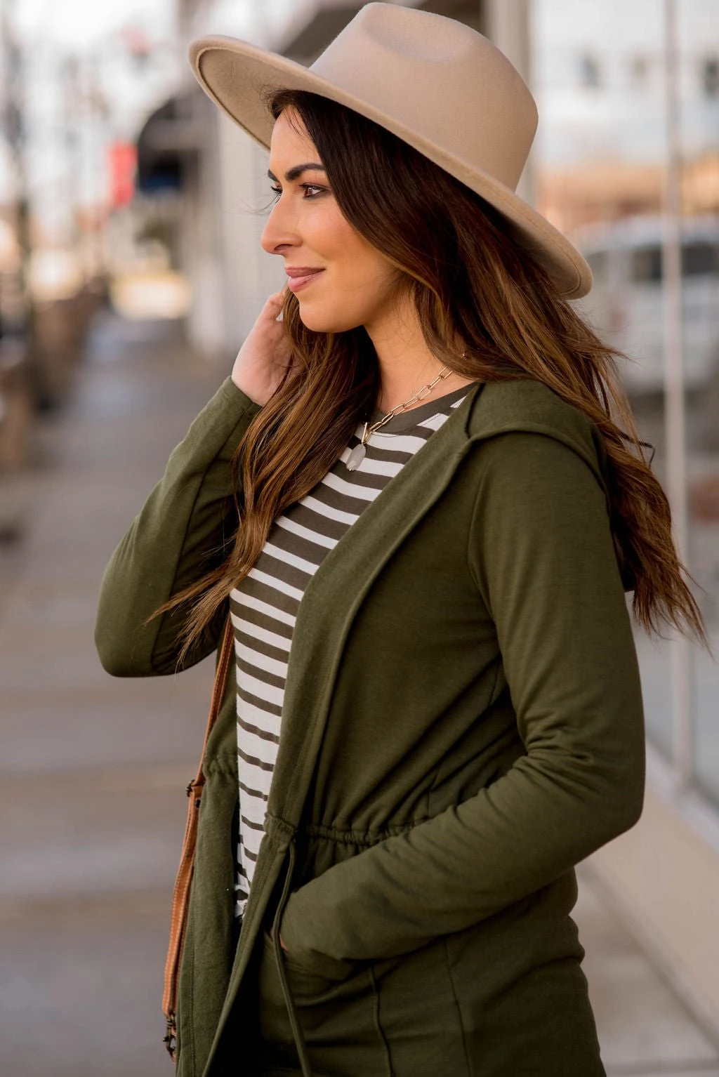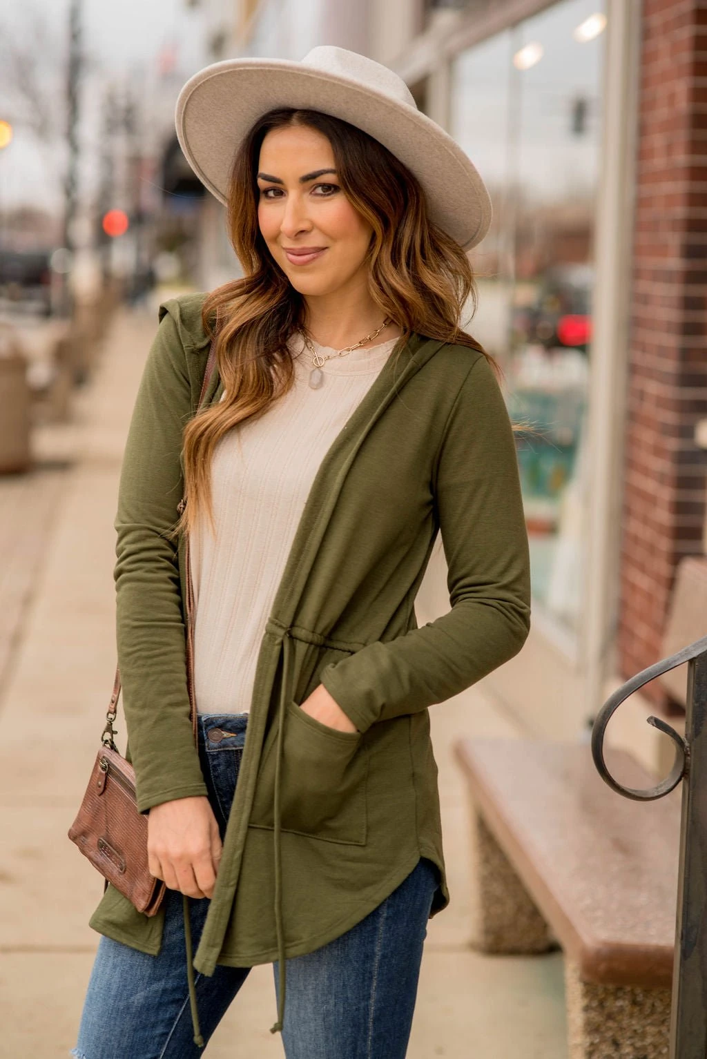 You can layer up this sweatshirt tie jacket to complete any look! It is so soft and lightweight which makes it so easy to layer up and grab on the go, plus it has a hood and pockets. It comes in multiple rich but neutral colors, like cognac, olive, and grey, which makes it easy to add over bold patterns or to add pops of color with accessories. However you decide to wear it, we know you’re going to want it in every color!