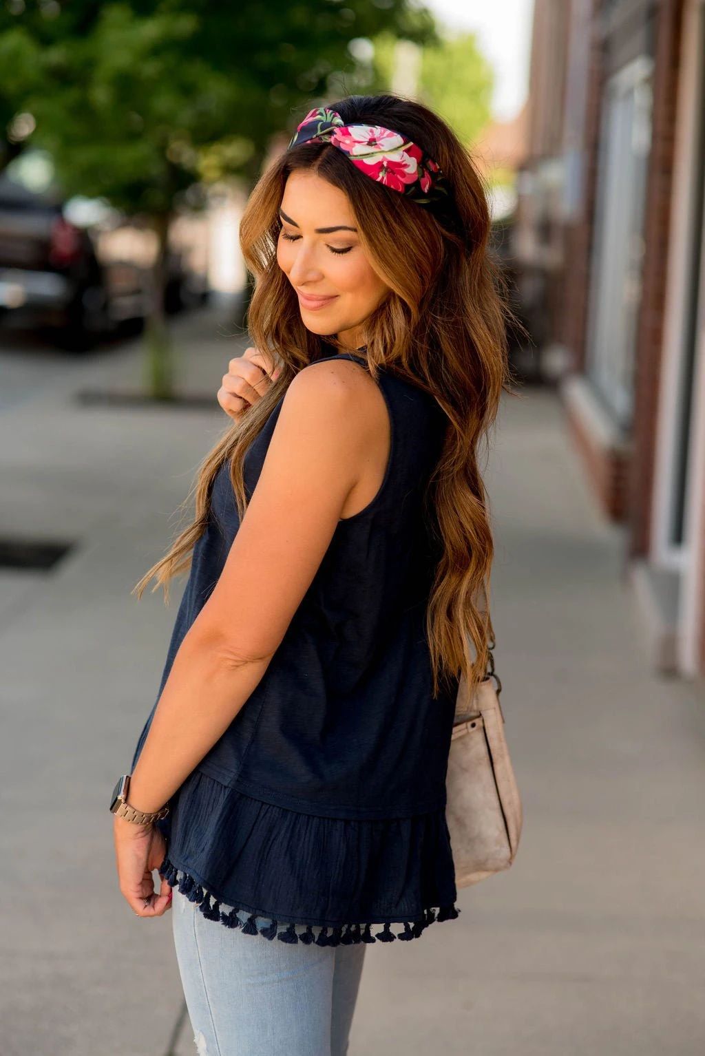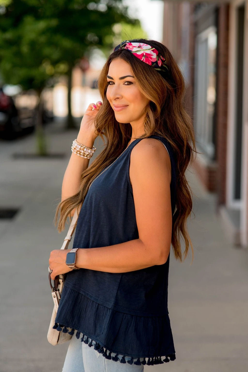A tank that stands out from the rest with the tassels around the trim and the addition of the gauze material on the bottom! This tank is super lightweight, making it ideal for any season, and has a flowy fit making it perfect for any body shape or size! Wear it alone in the warmer months or pair it with a cardigan or denim jacket in the cooler ones!
