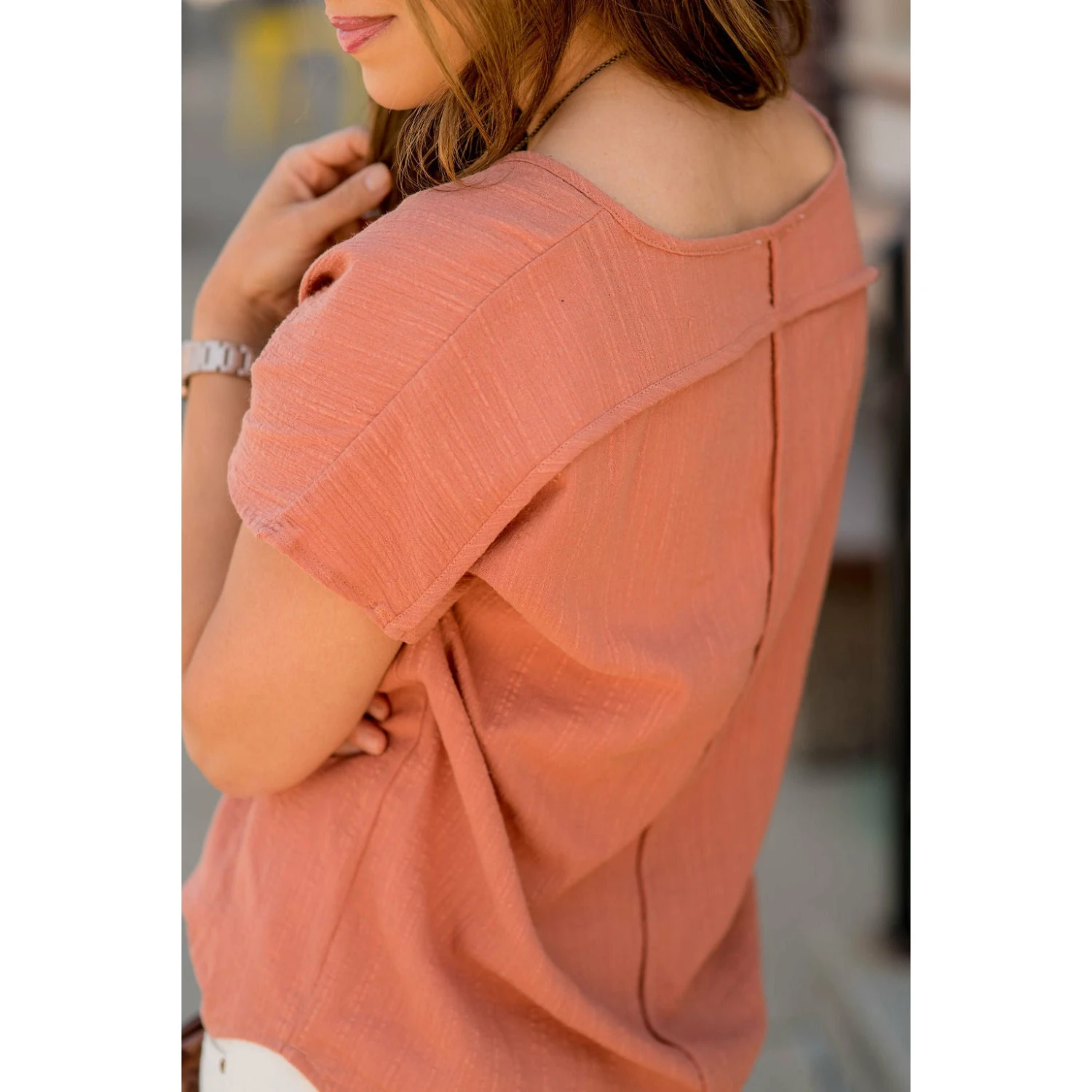 The subtle textured and detailed back of this tee takes it to the next level! Wear this alone with a cute pair of high-waisted shorts or your favorite denim as the star of the show, or use it as a layering piece with your favorite cardigan or shacket! The possibilities are endless!
