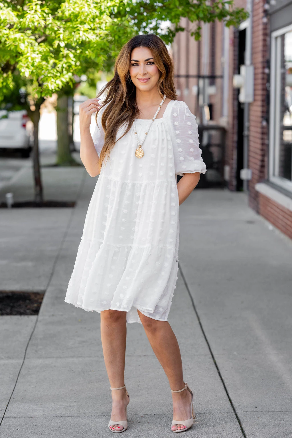Looking for a dress that is a bit different? Look no further because this unique and effortless dress is here for you! Wear this beautiful dress with leggings and a cardigan, but don’t forget the boots! Warm weather? Wear it as is and throw on a pair of sandals or flats with it! This is sure to meet all of your dress needs!