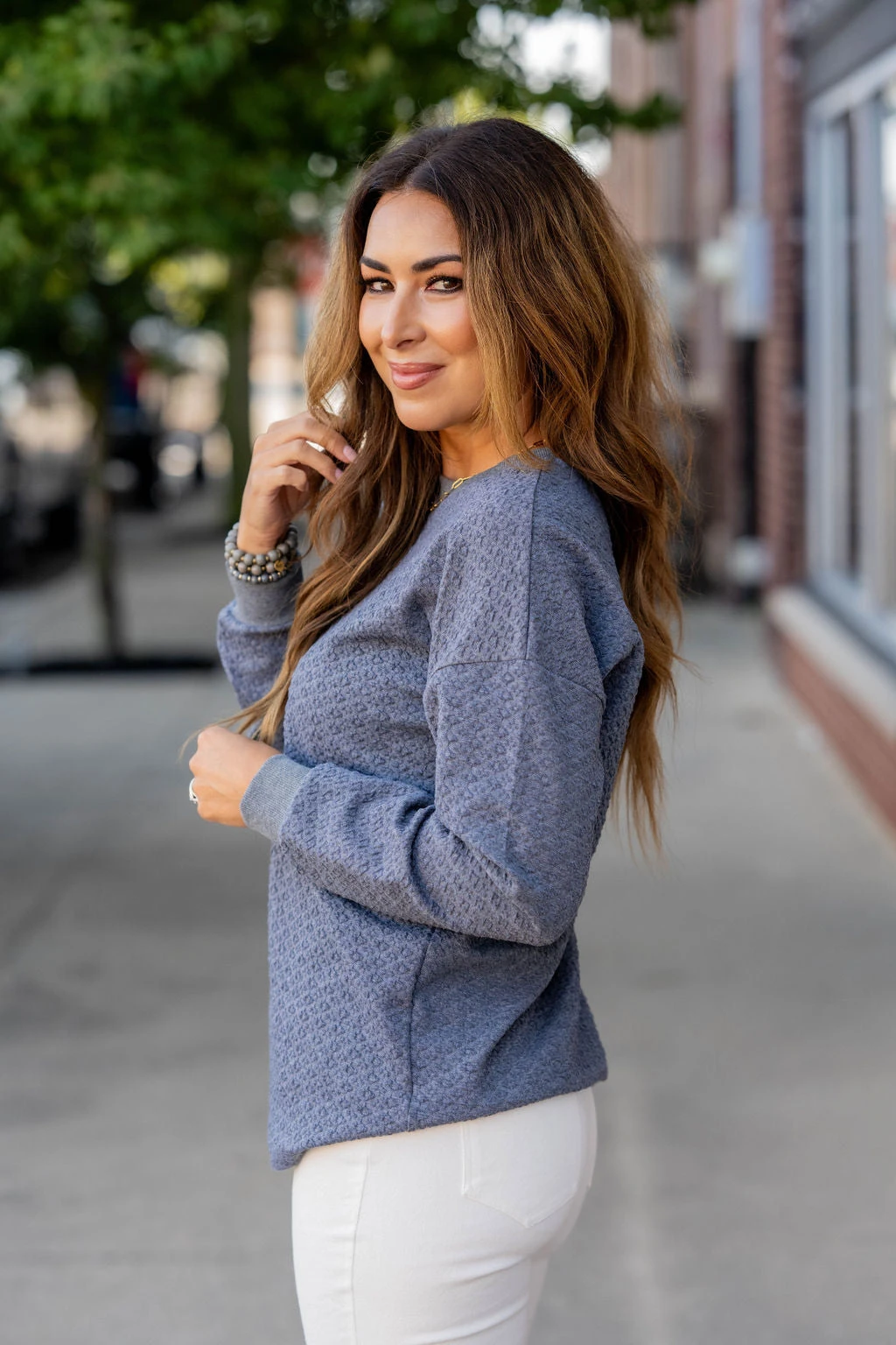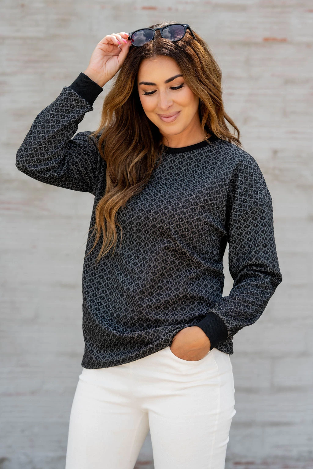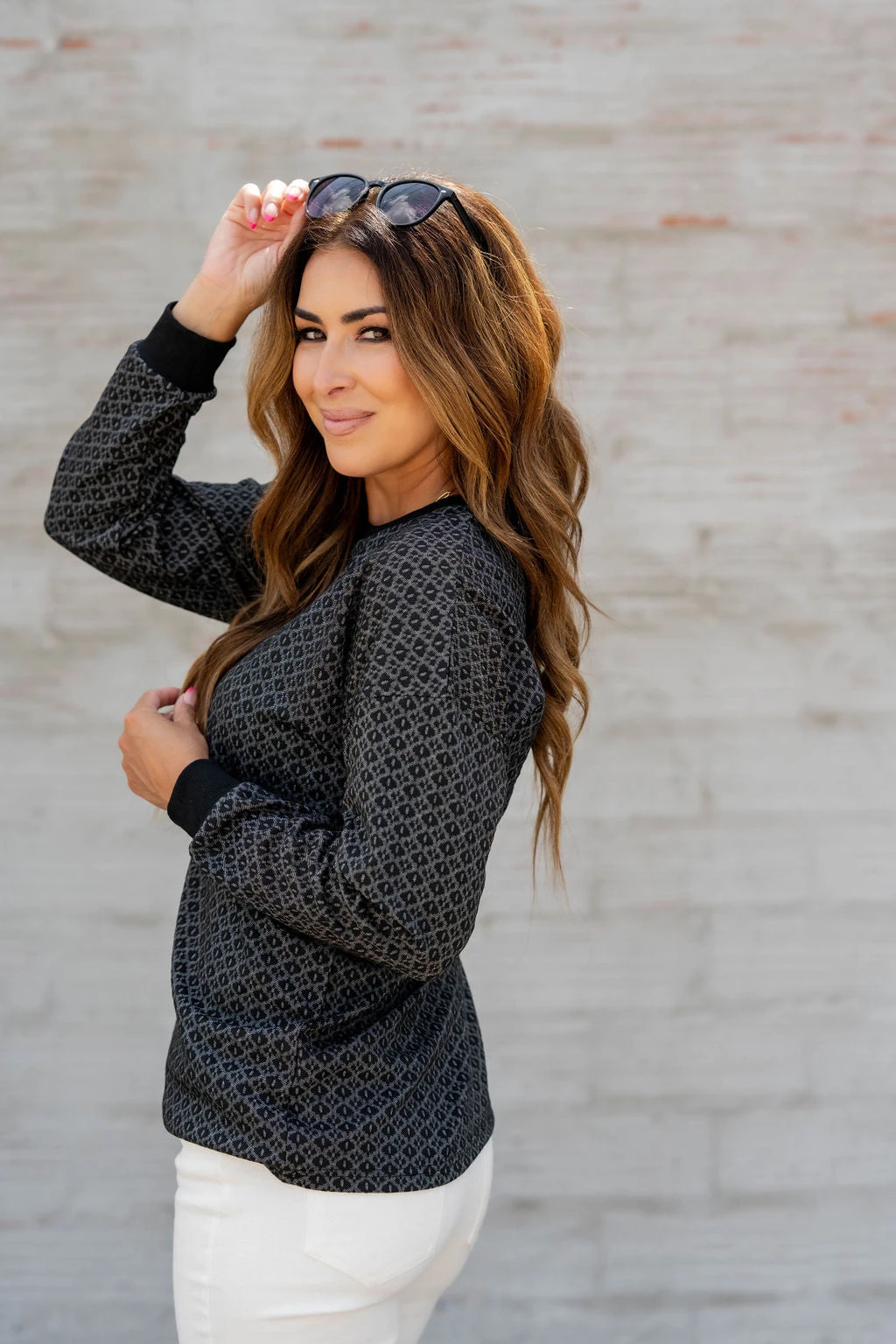 We just don’t think you can ever have too many sweatshirts! This sweatshirt features a solid trim that pops against the textured geo print! Pair with shorts or a skirt for the warmer months or with your favorite denim, joggers, leggings, or our Betsey’s Jeggings for the cooler ones. Chilly? Add a vest or shacket with ease!