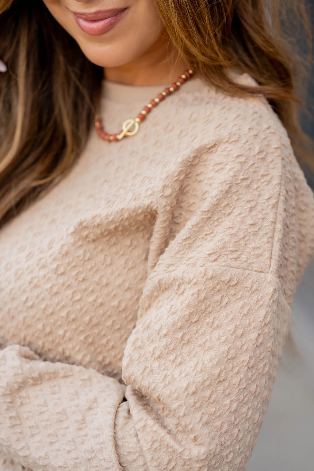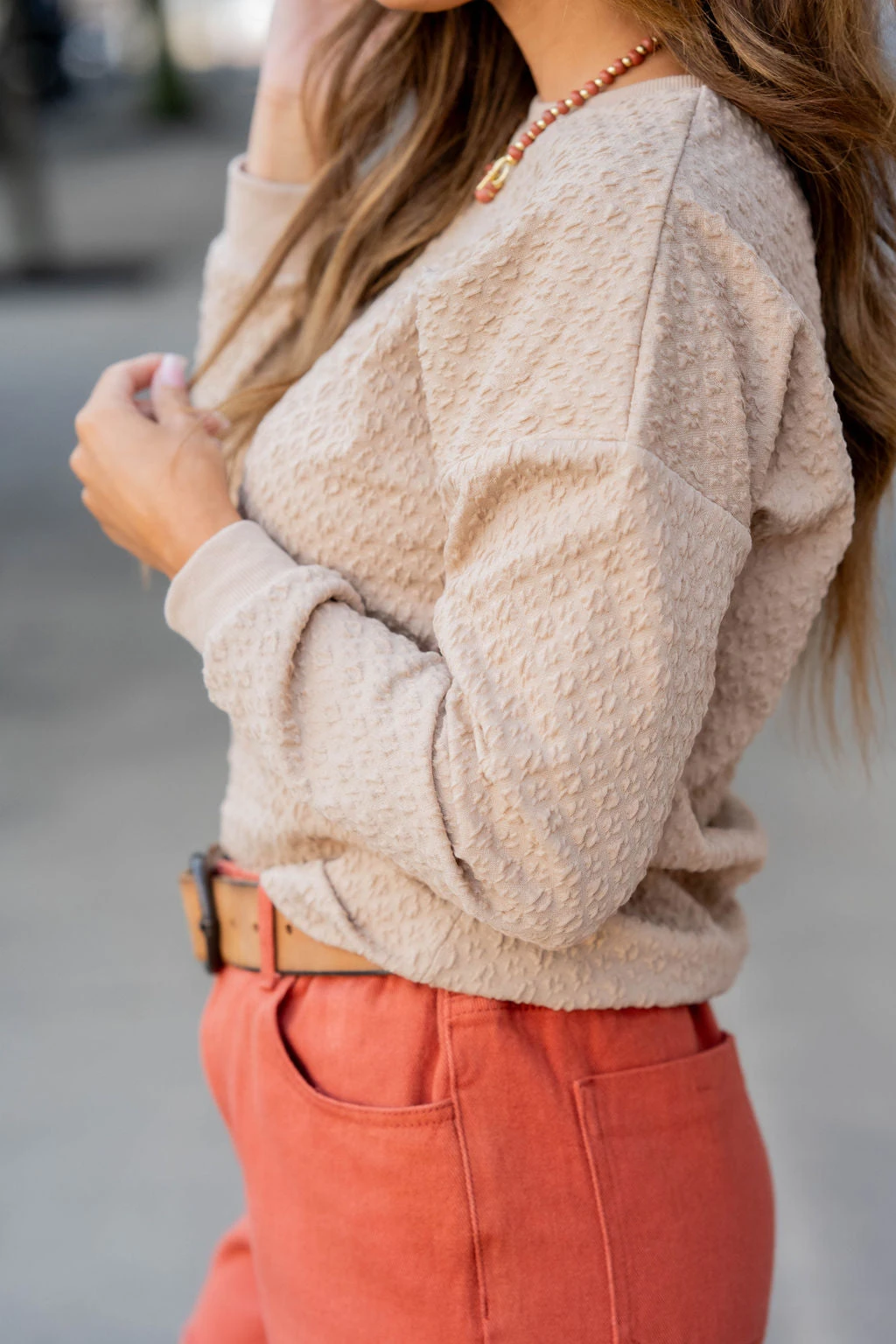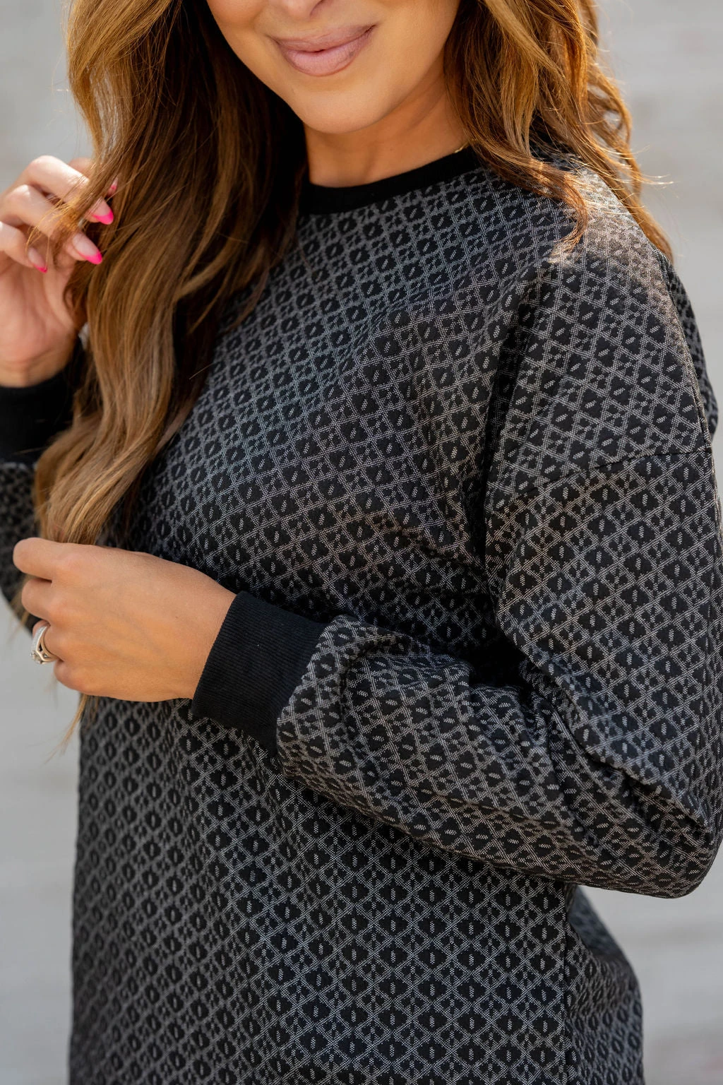 We just don’t think you can ever have too many sweatshirts! This sweatshirt features a solid trim that pops against the textured geo print! Pair with shorts or a skirt for the warmer months or with your favorite denim, joggers, leggings, or our Betsey’s Jeggings for the cooler ones. Chilly? Add a vest or shacket with ease!