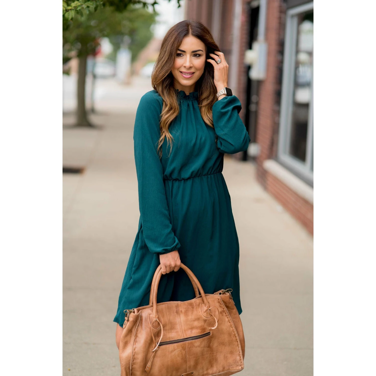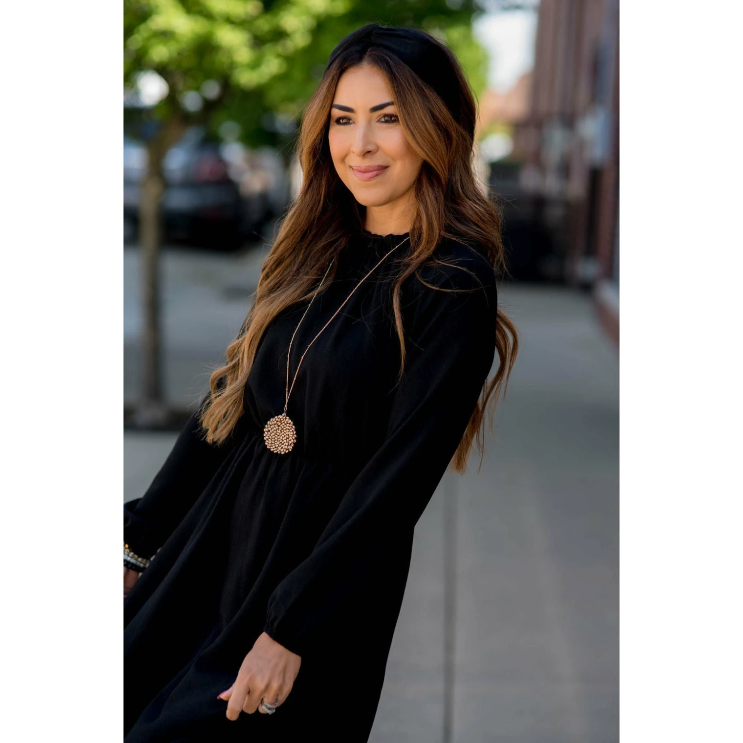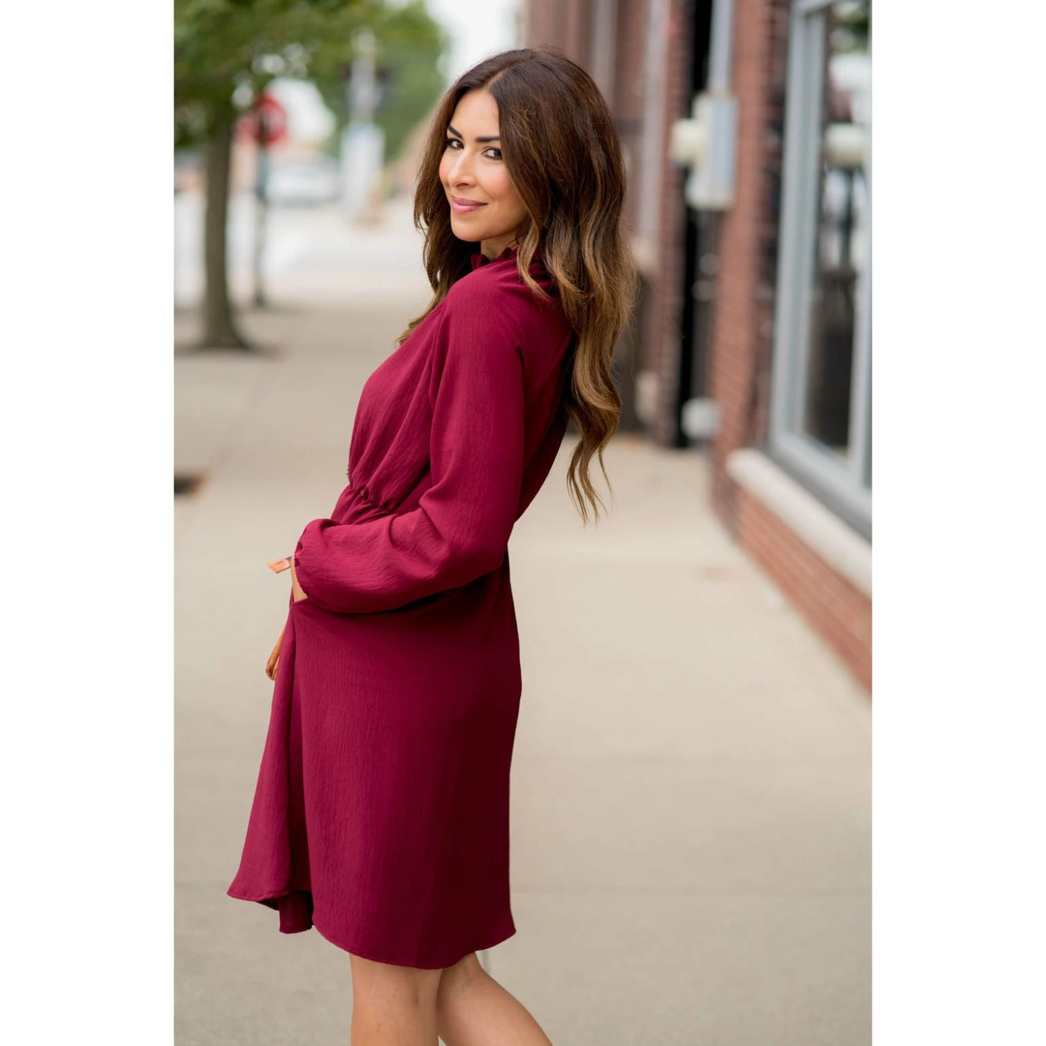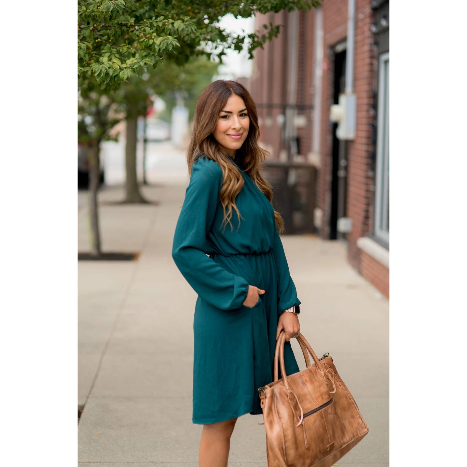 Everyone loves a good cinch neck dress, and this long sleeve one is perfect! Cute and sassy, this will be a go to dress for you! It is easy to layer this dress up, and throw on a pair of leggings and boots for those colder months!