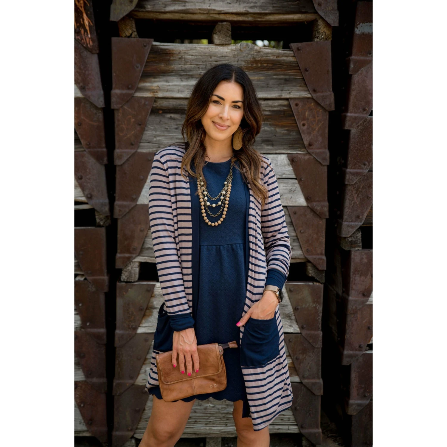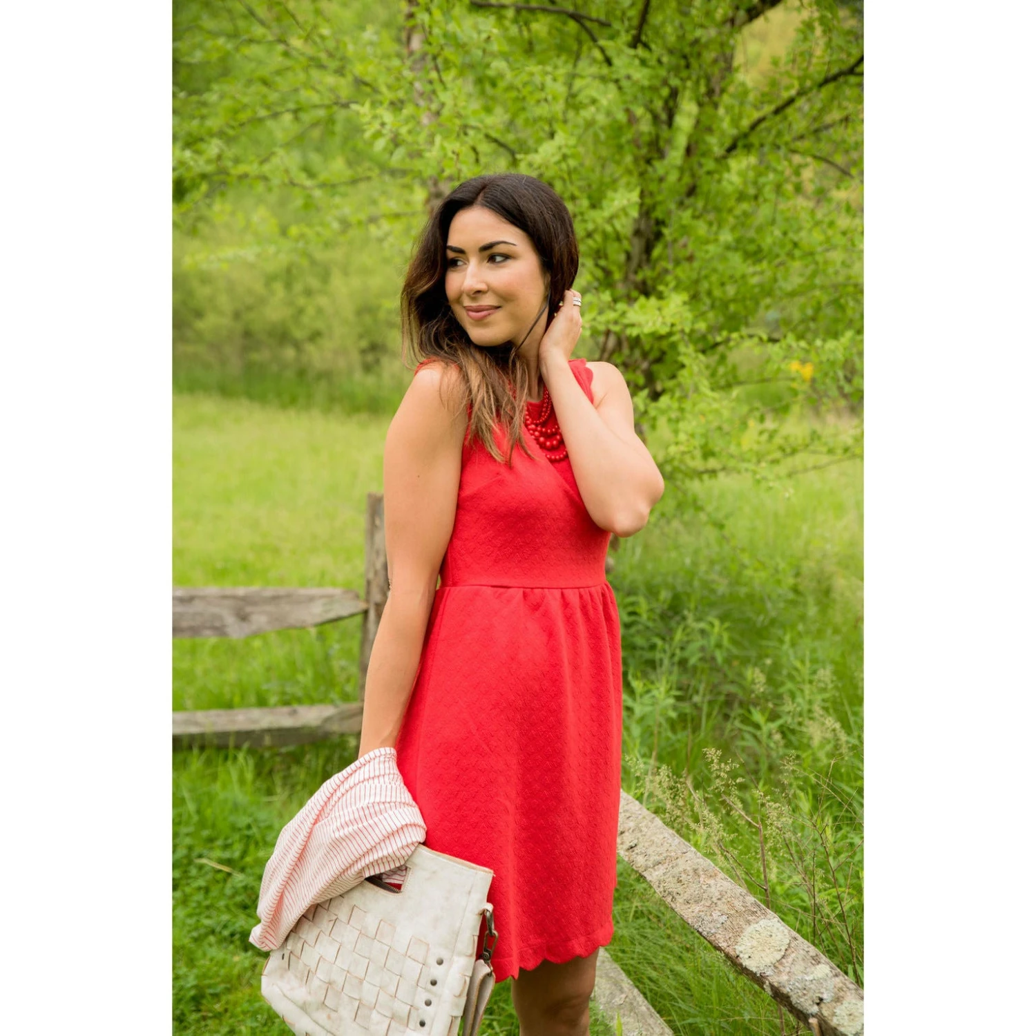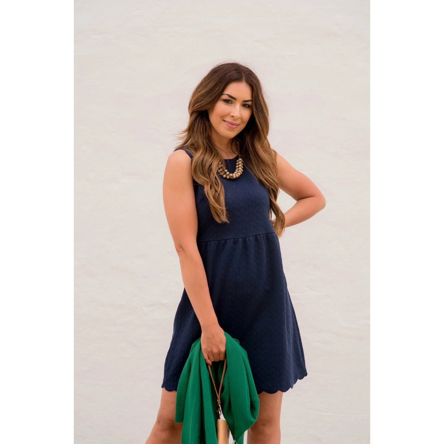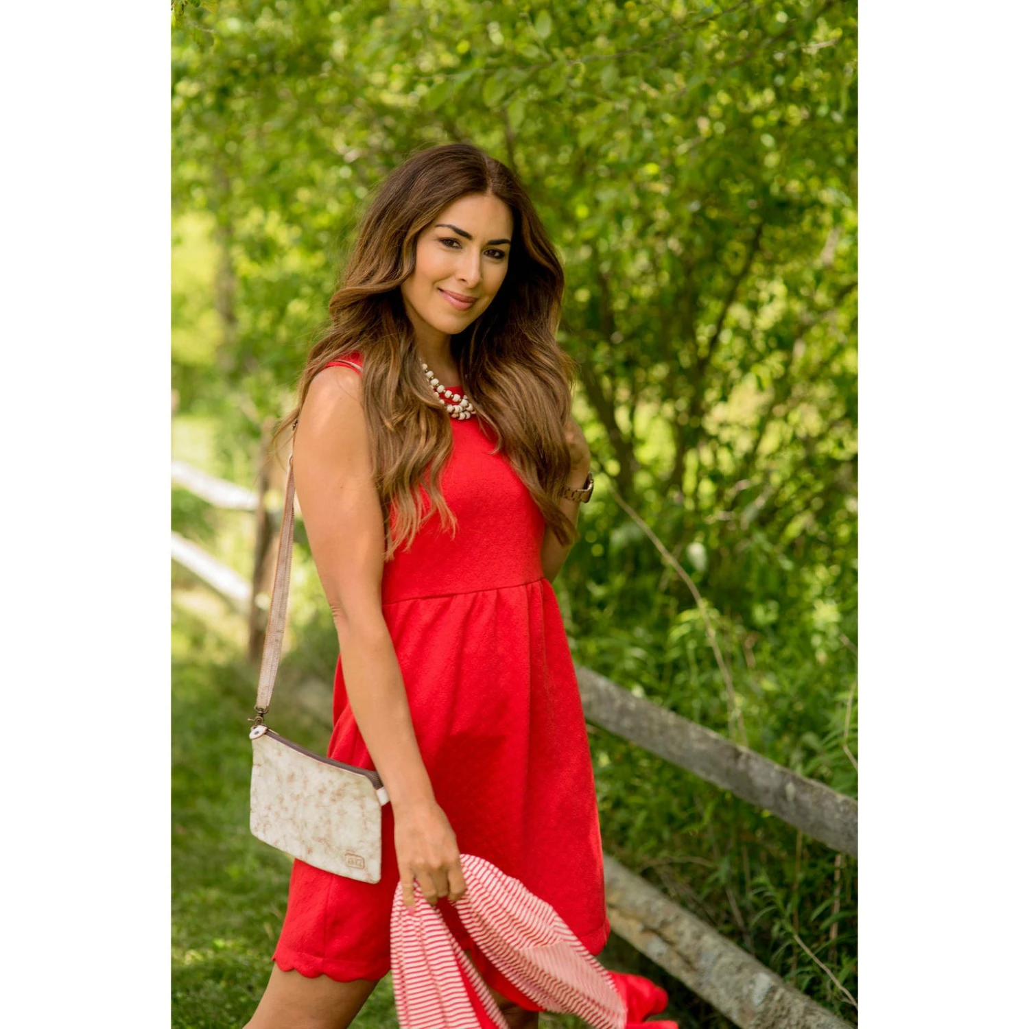 This dress has all the details! It features a cute textured material, is lined with scallop detailing and has an adorable lace cut out in the back! It even has a zipper on the side for your convenience!
